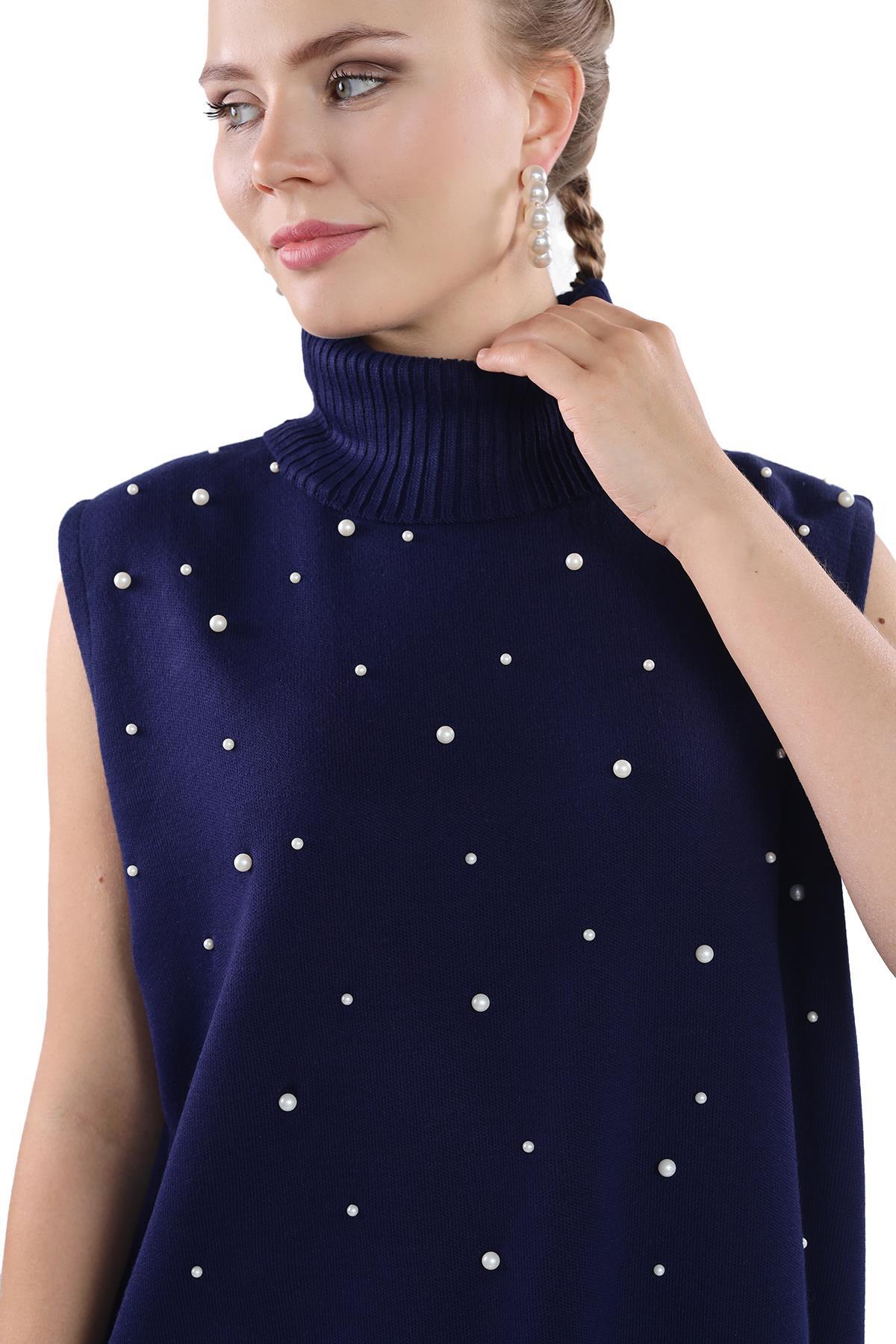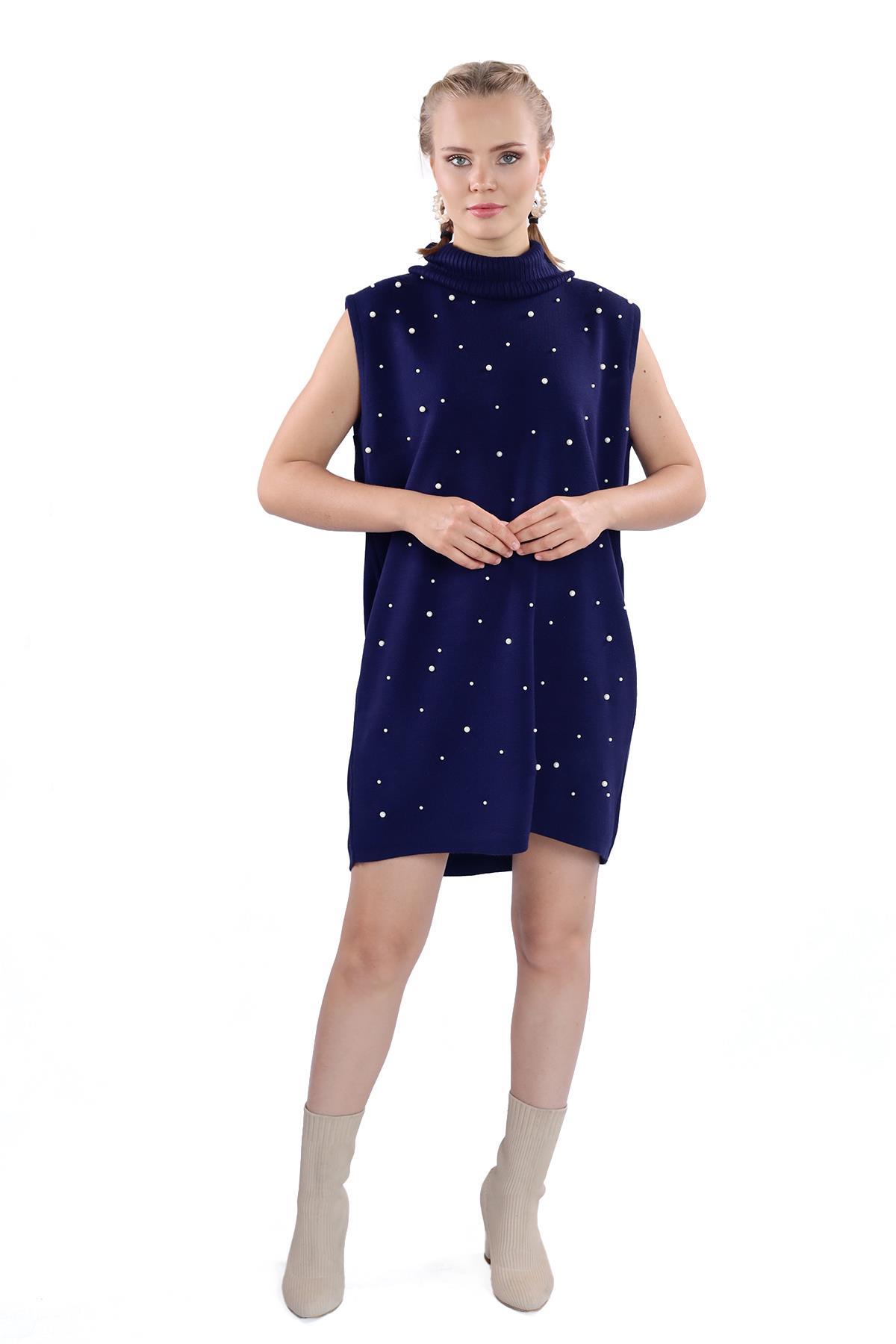 24202 İnci Detay Balıkçı Yaka Elbise Laci