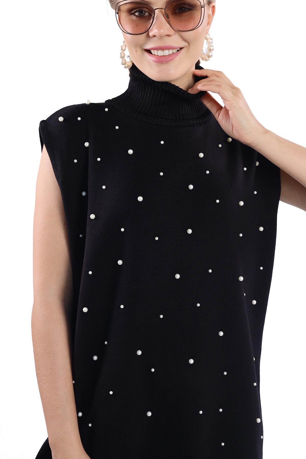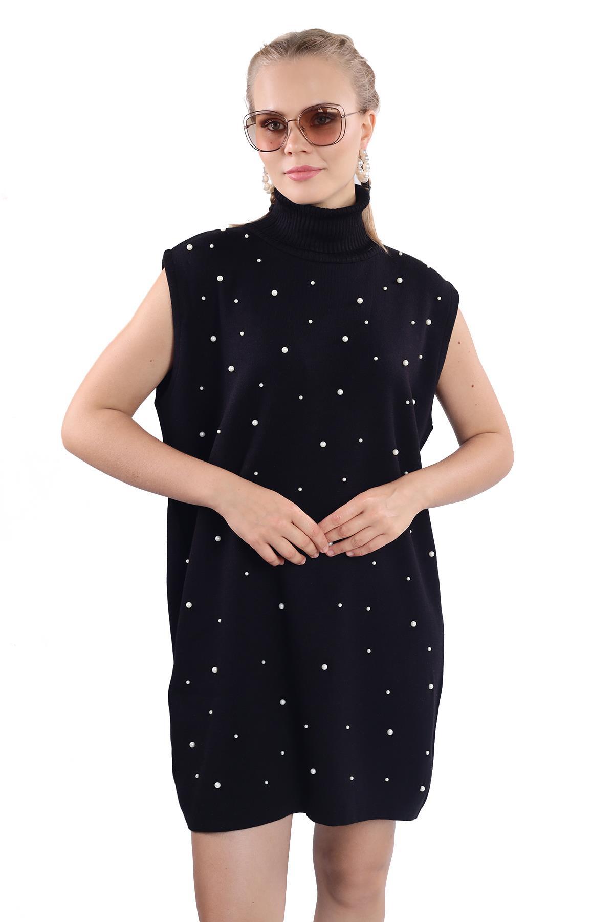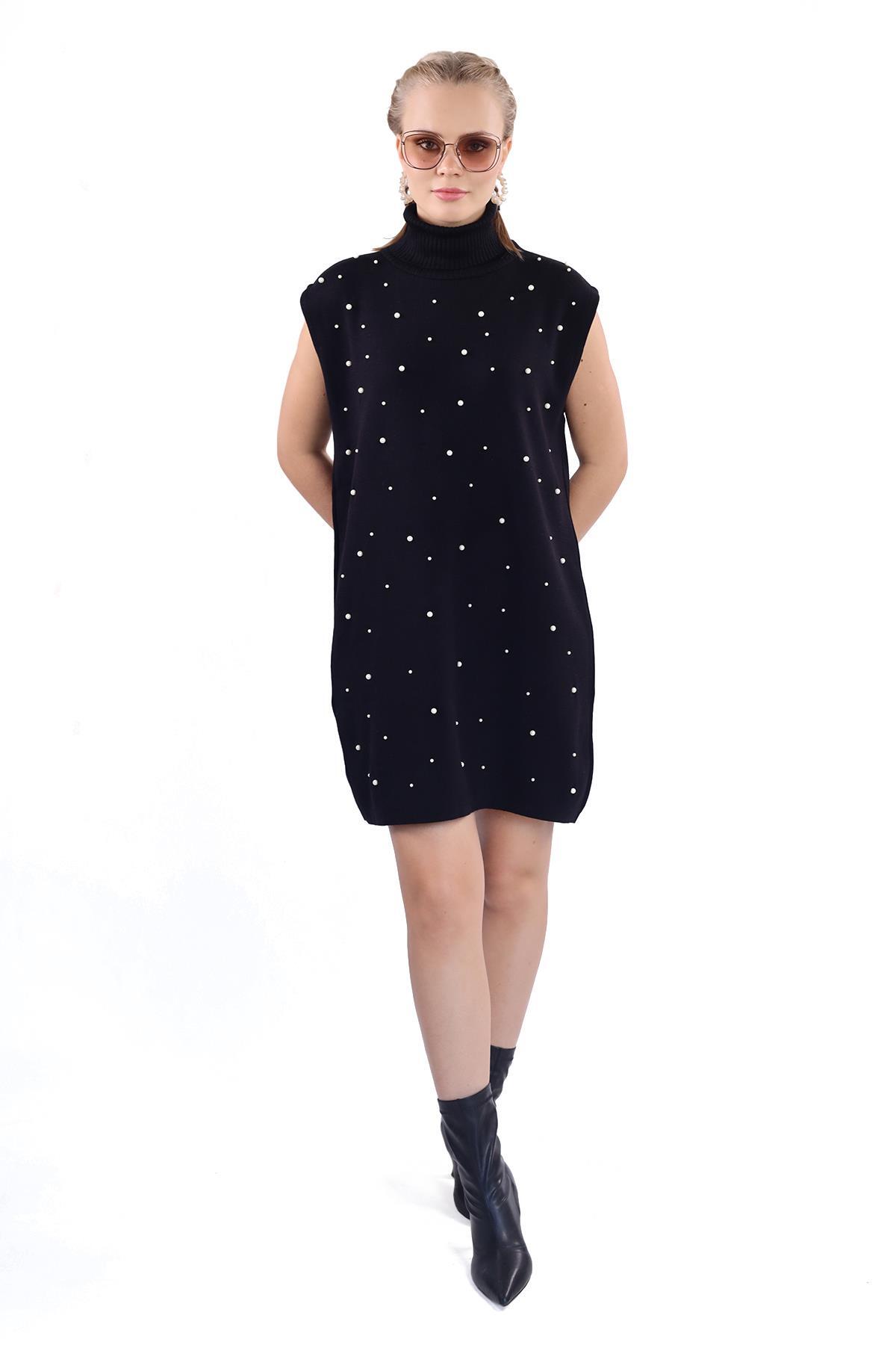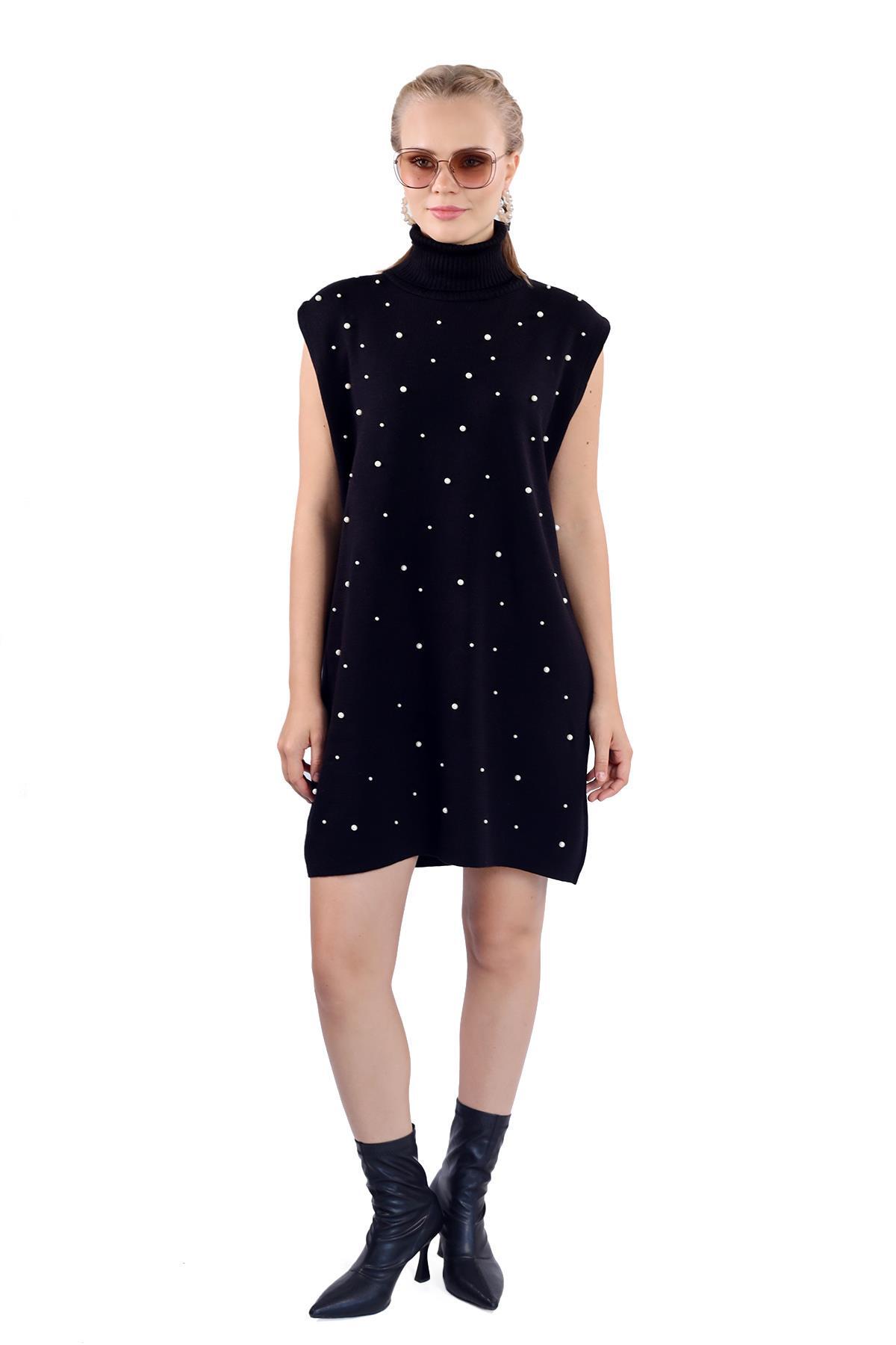 Siyah İnci Detay Balıkçı Yaka Elbise 24202