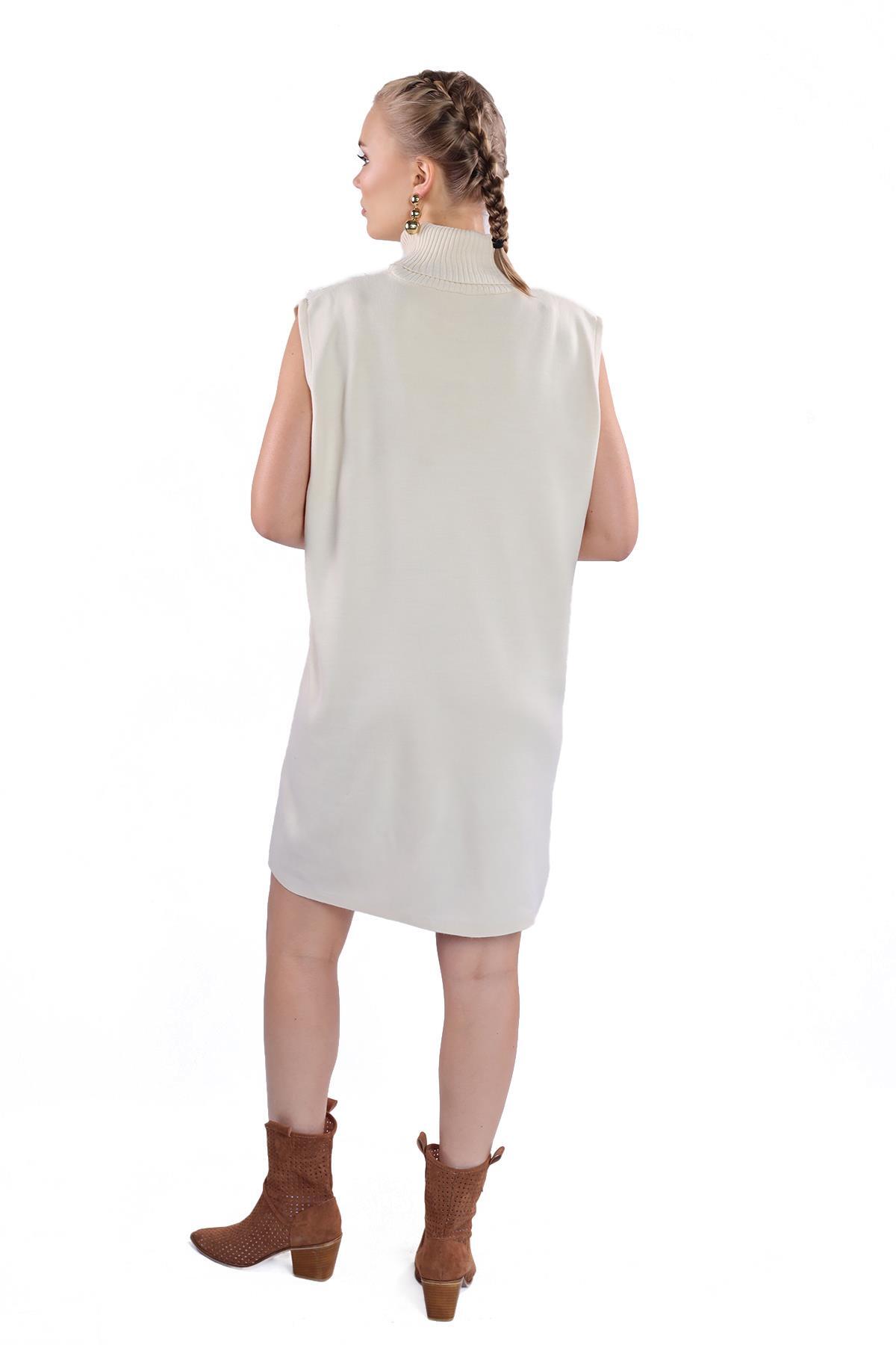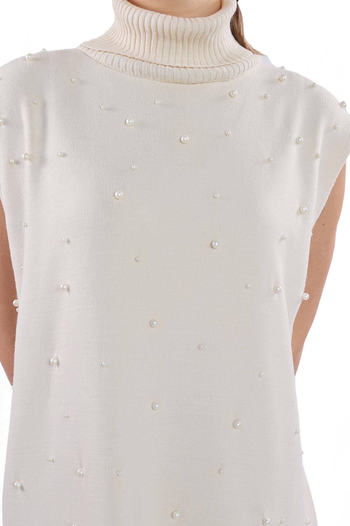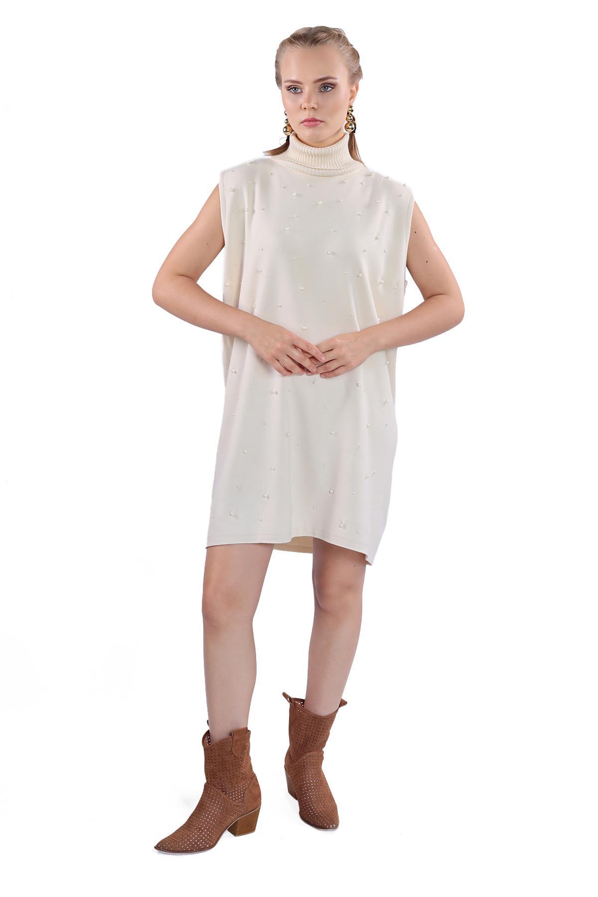 24202 İnci Detay Balıkçı Yaka Elbise Taş