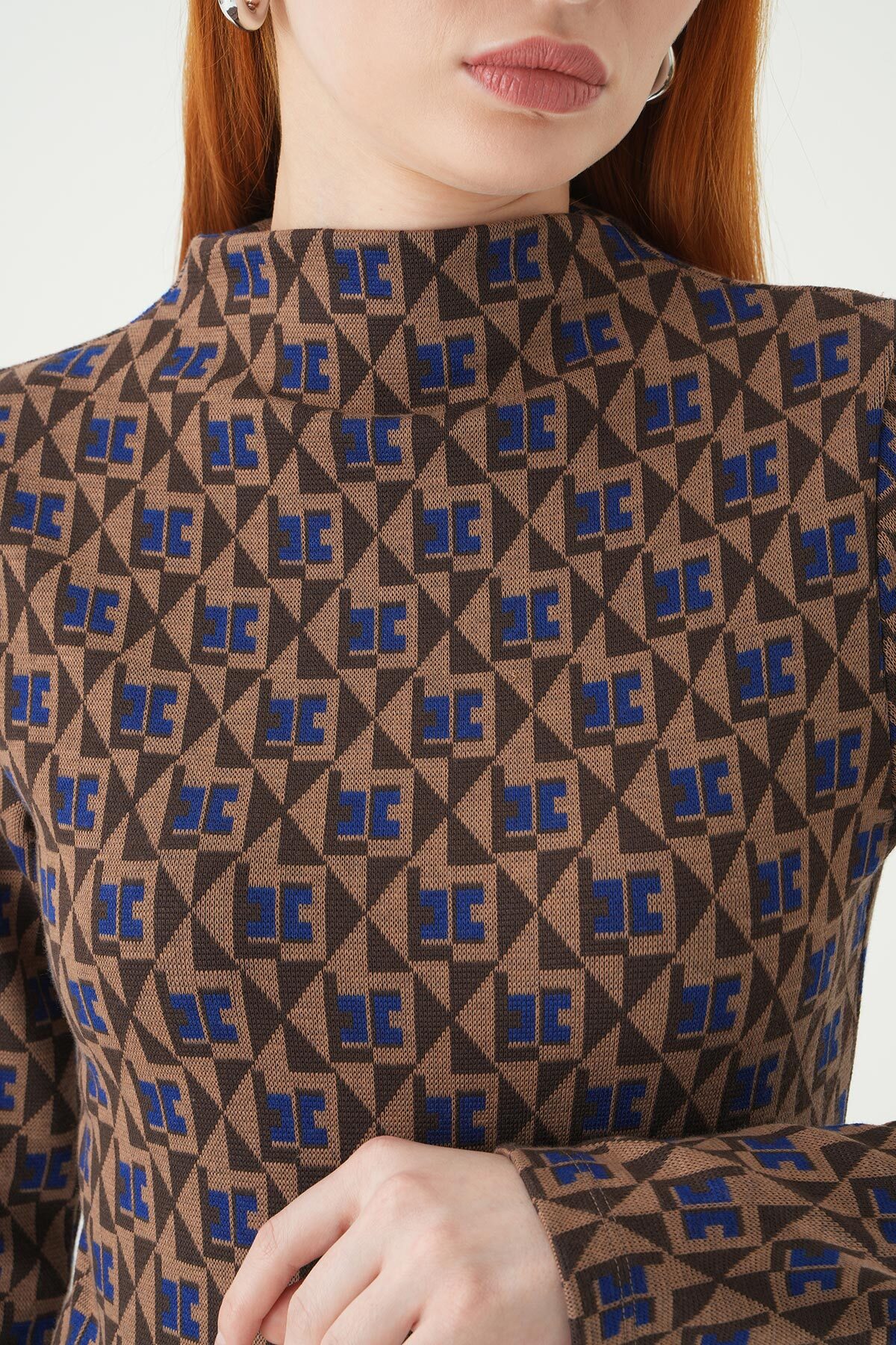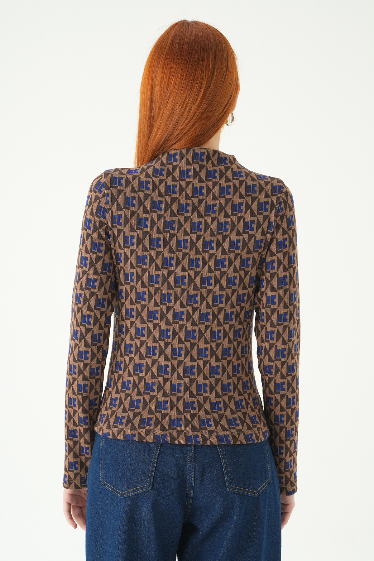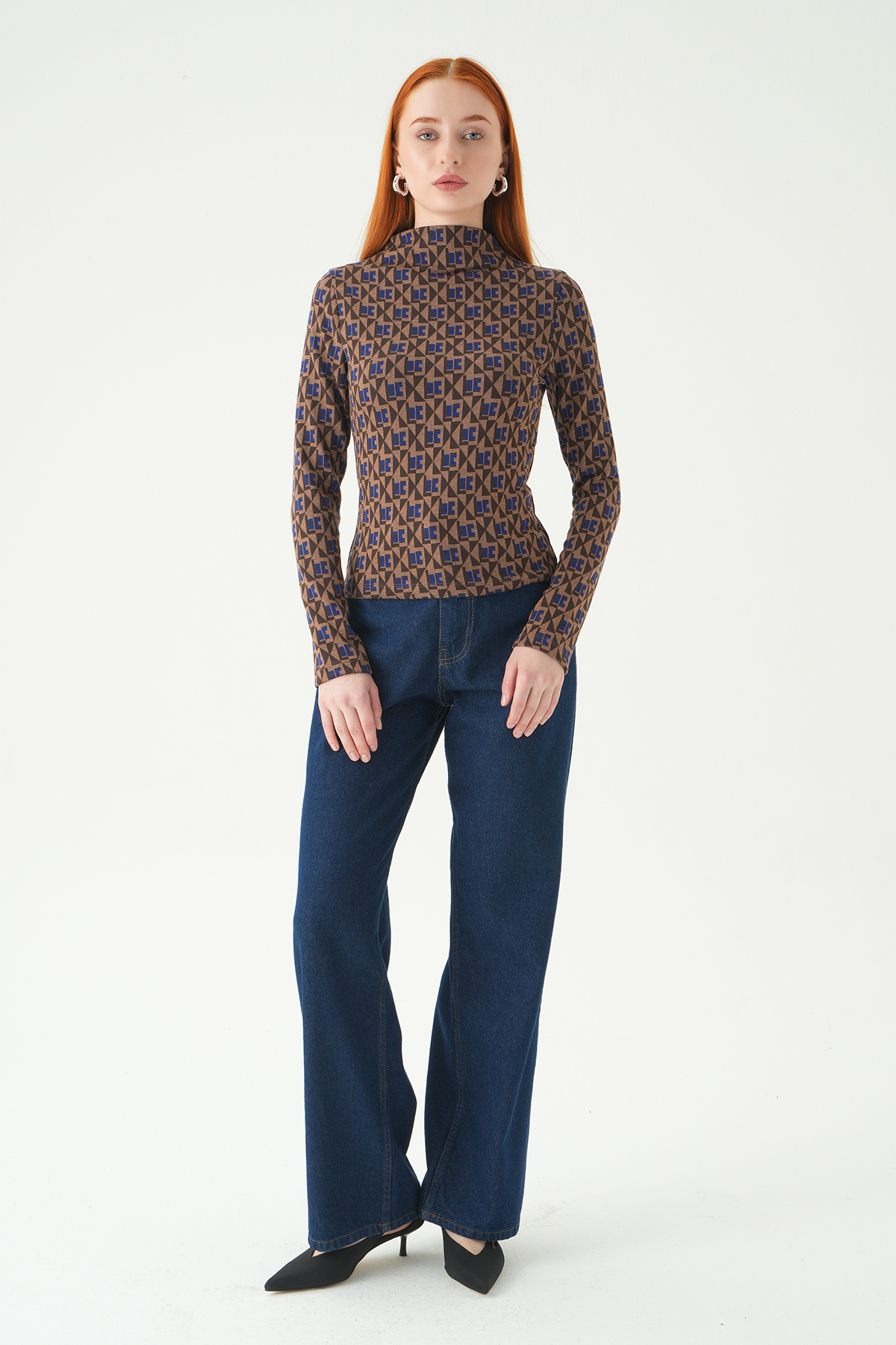 242143 Desenli Dik yaka Bluz