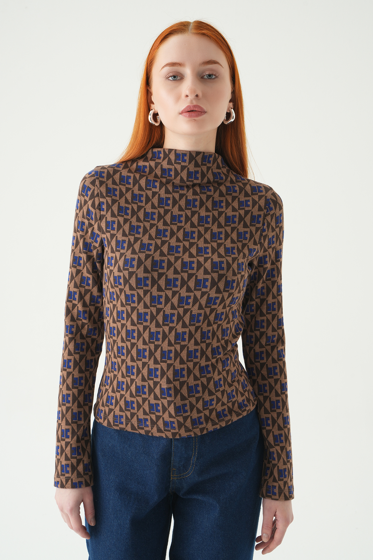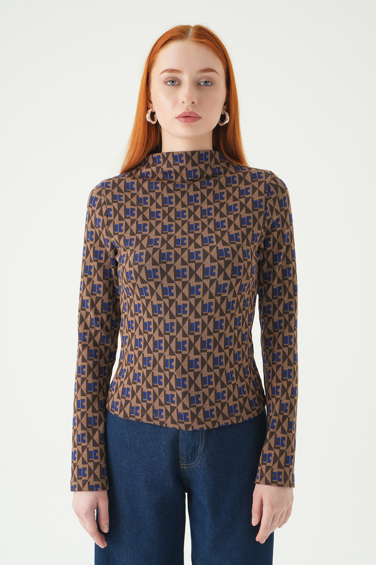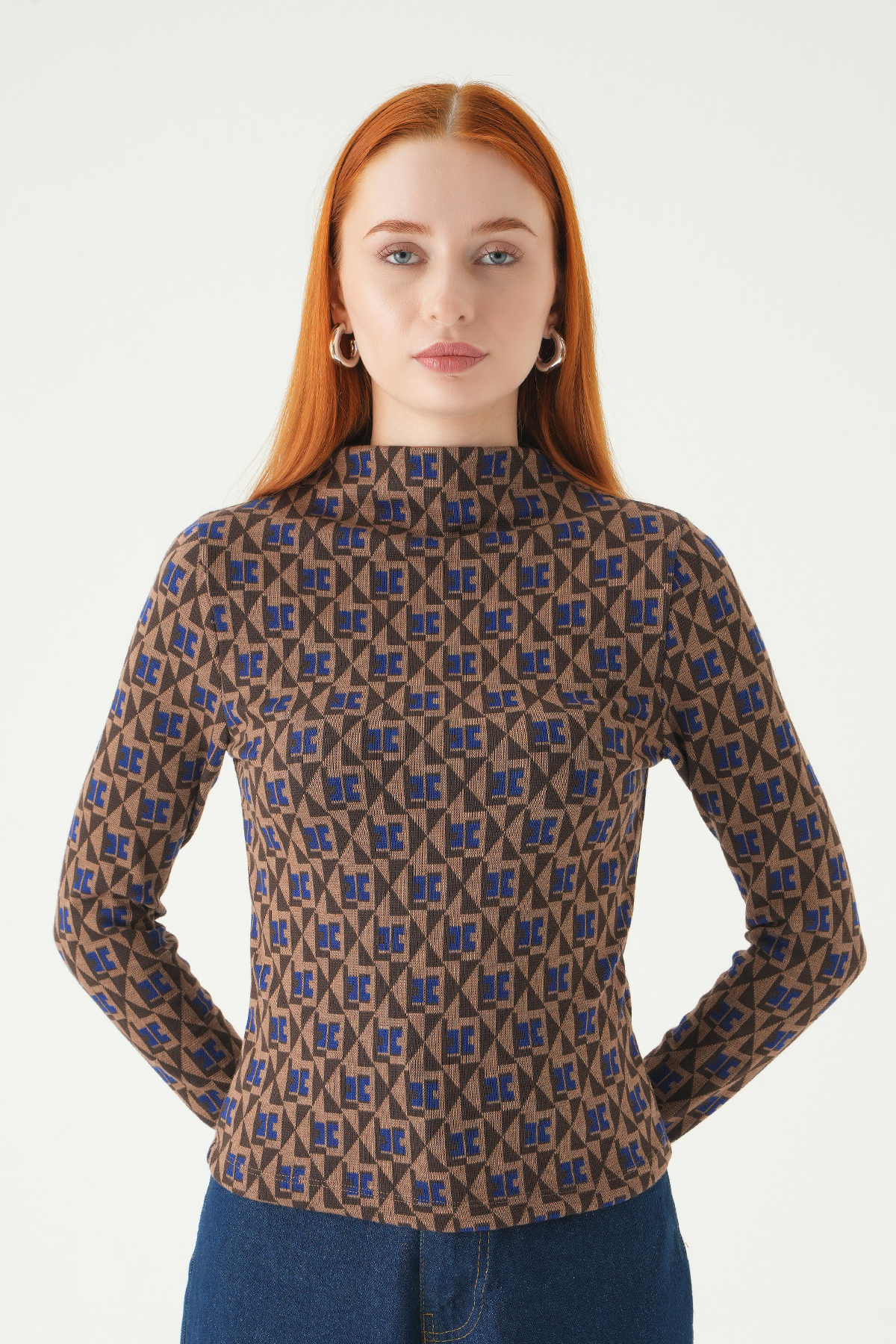 242143 Desenli Dik yaka Bluz