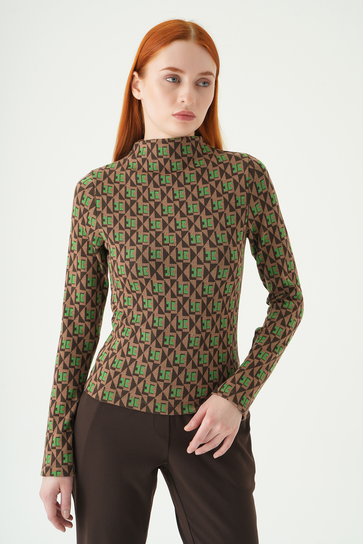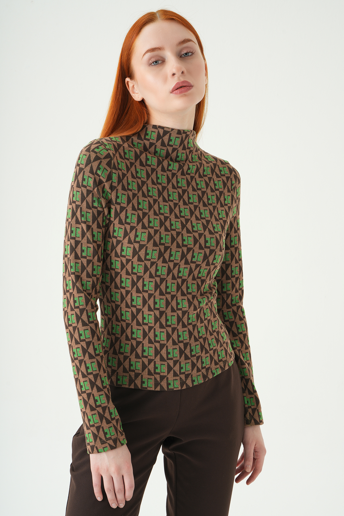 Yeşil Desenli Dik Yaka Bluz 242143