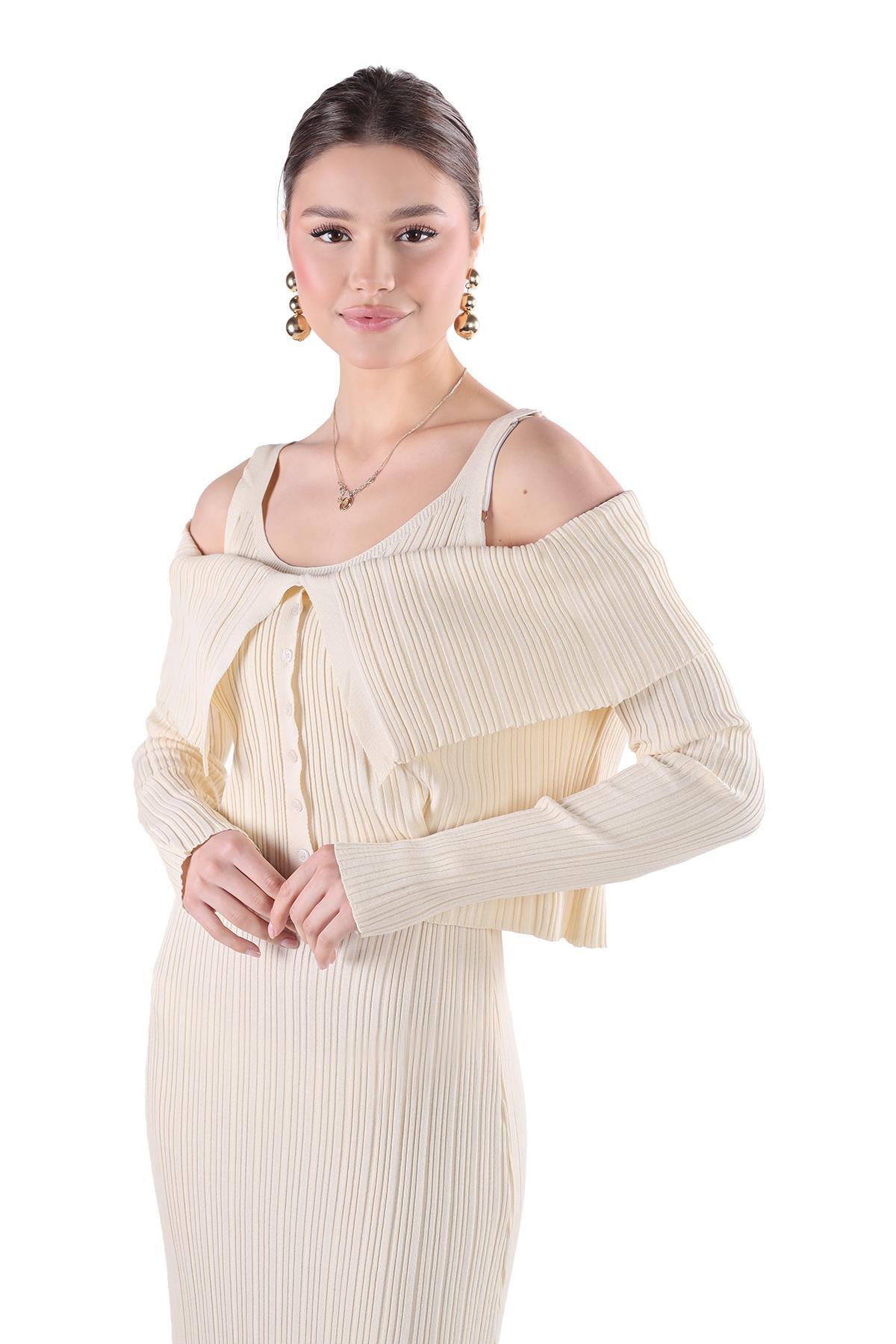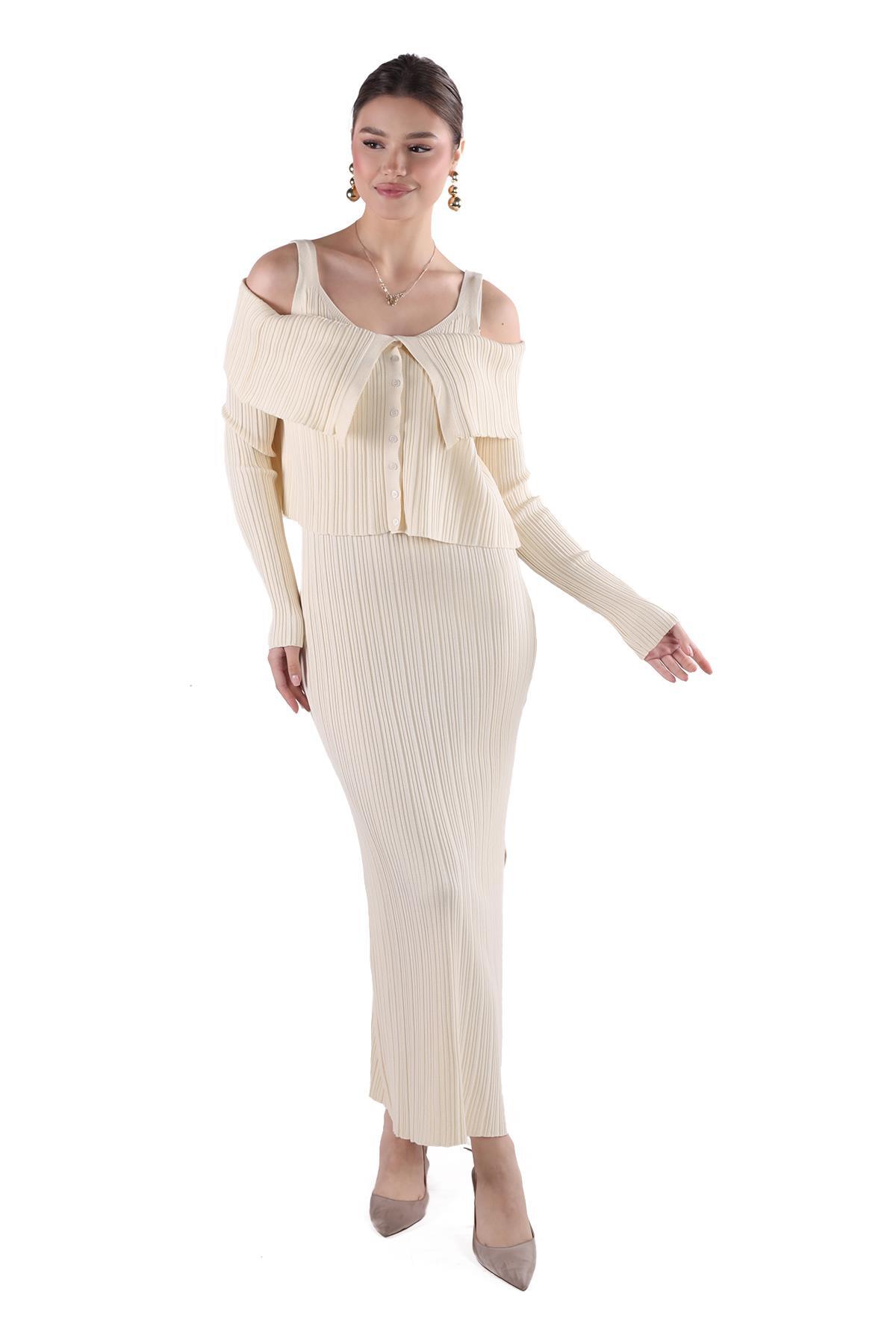 Taş Madonna Yaka Elbise Takım 24216