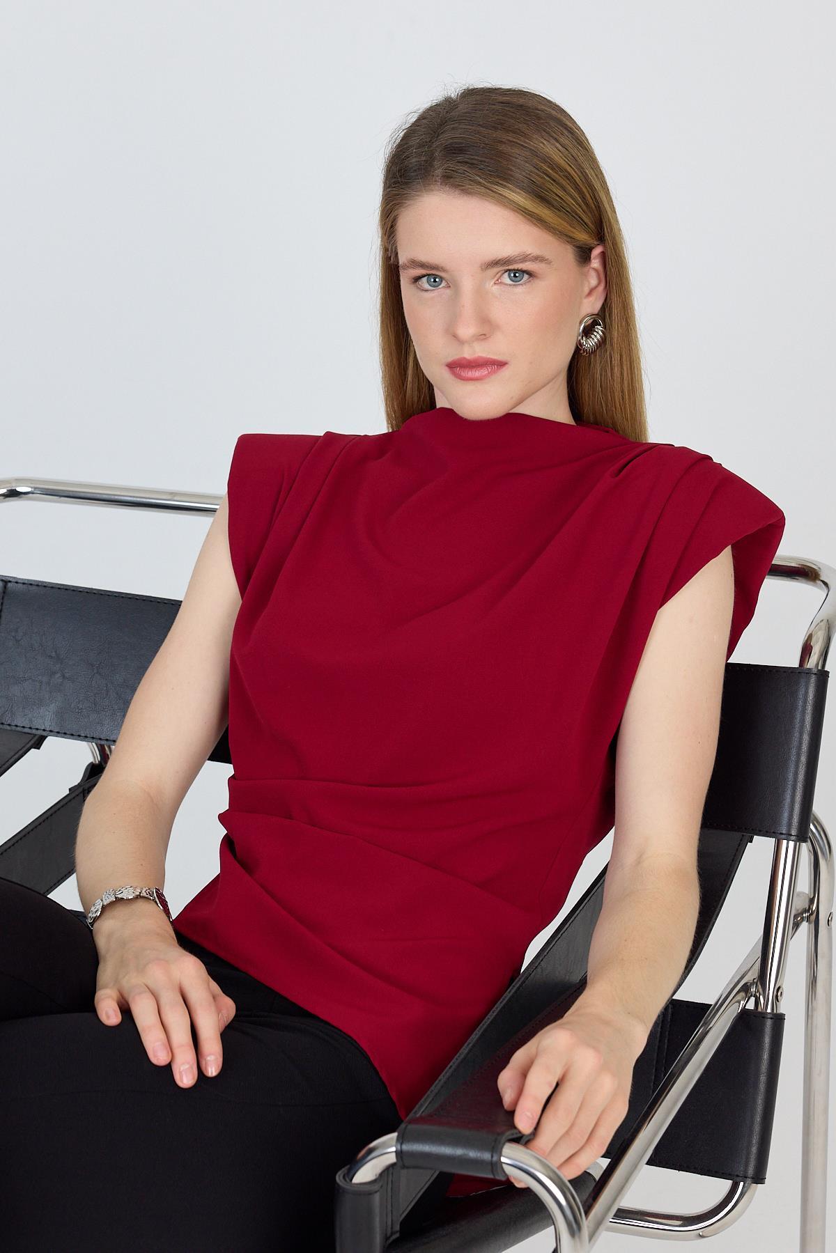 Bordo Vatkalı Asimetrik Kesim Kolsuz Bluz 242185