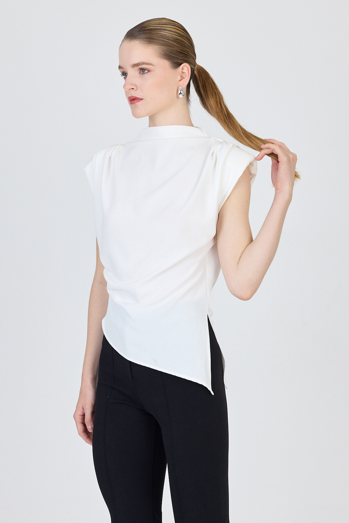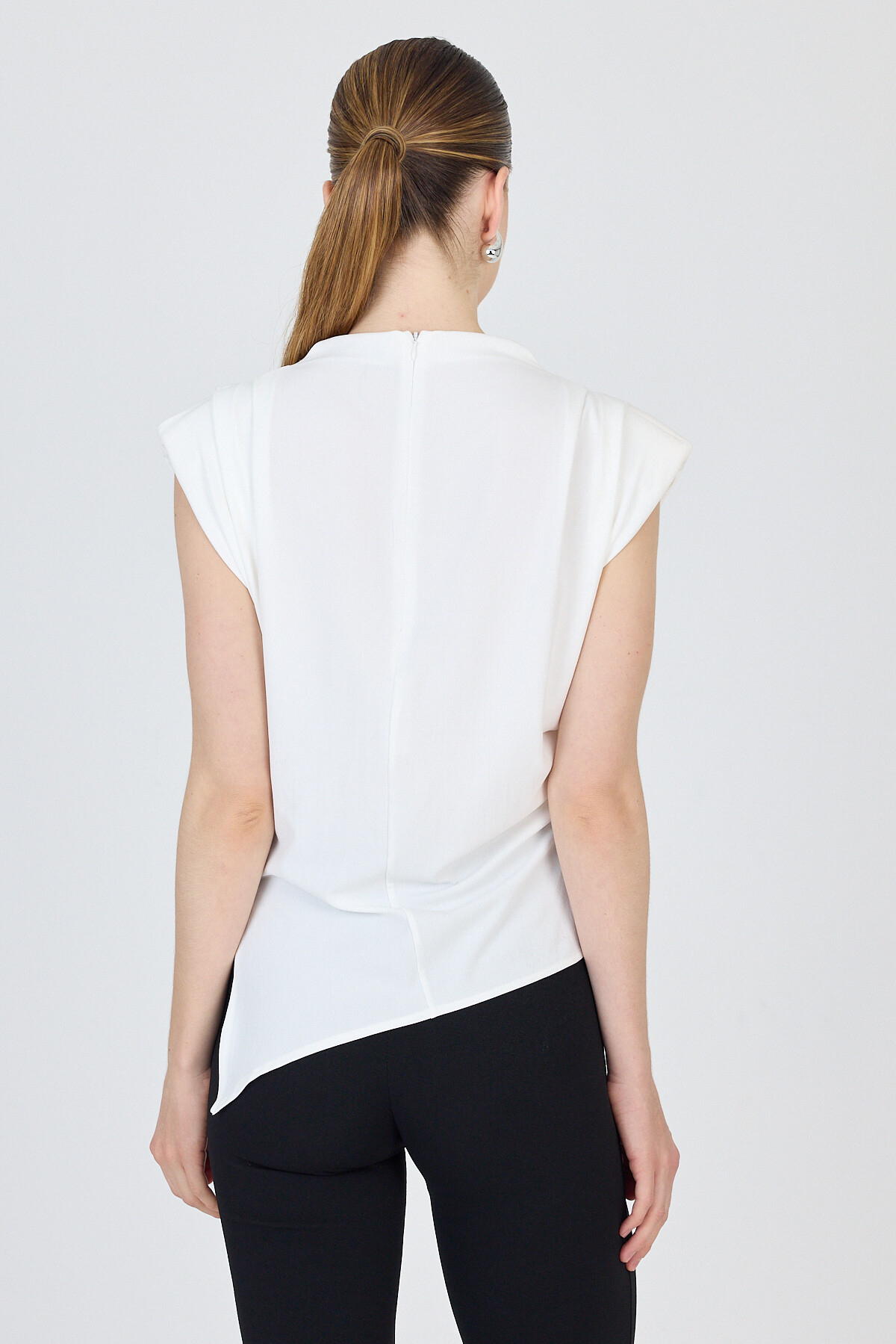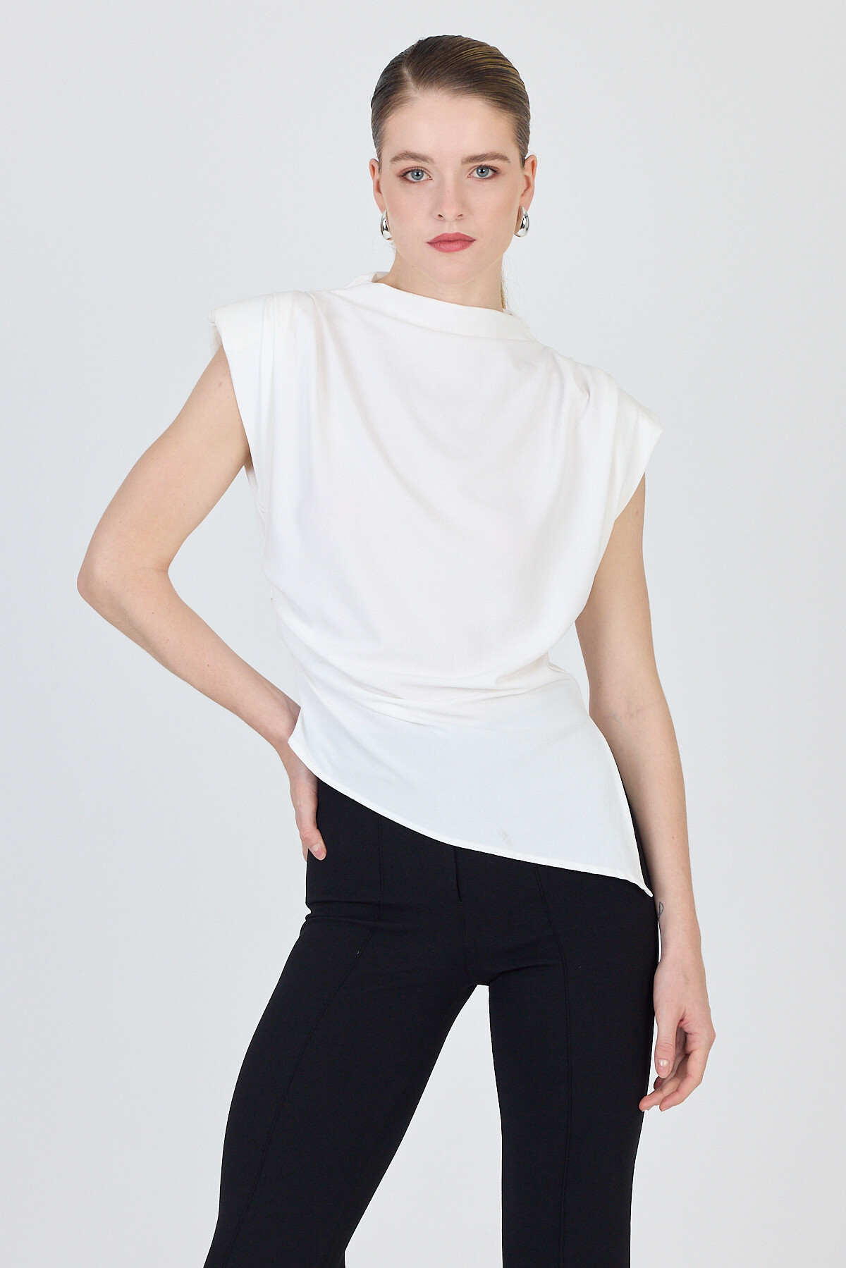 Ekru Vatkalı Asimetrik Kesim Kolsuz Bluz 242185