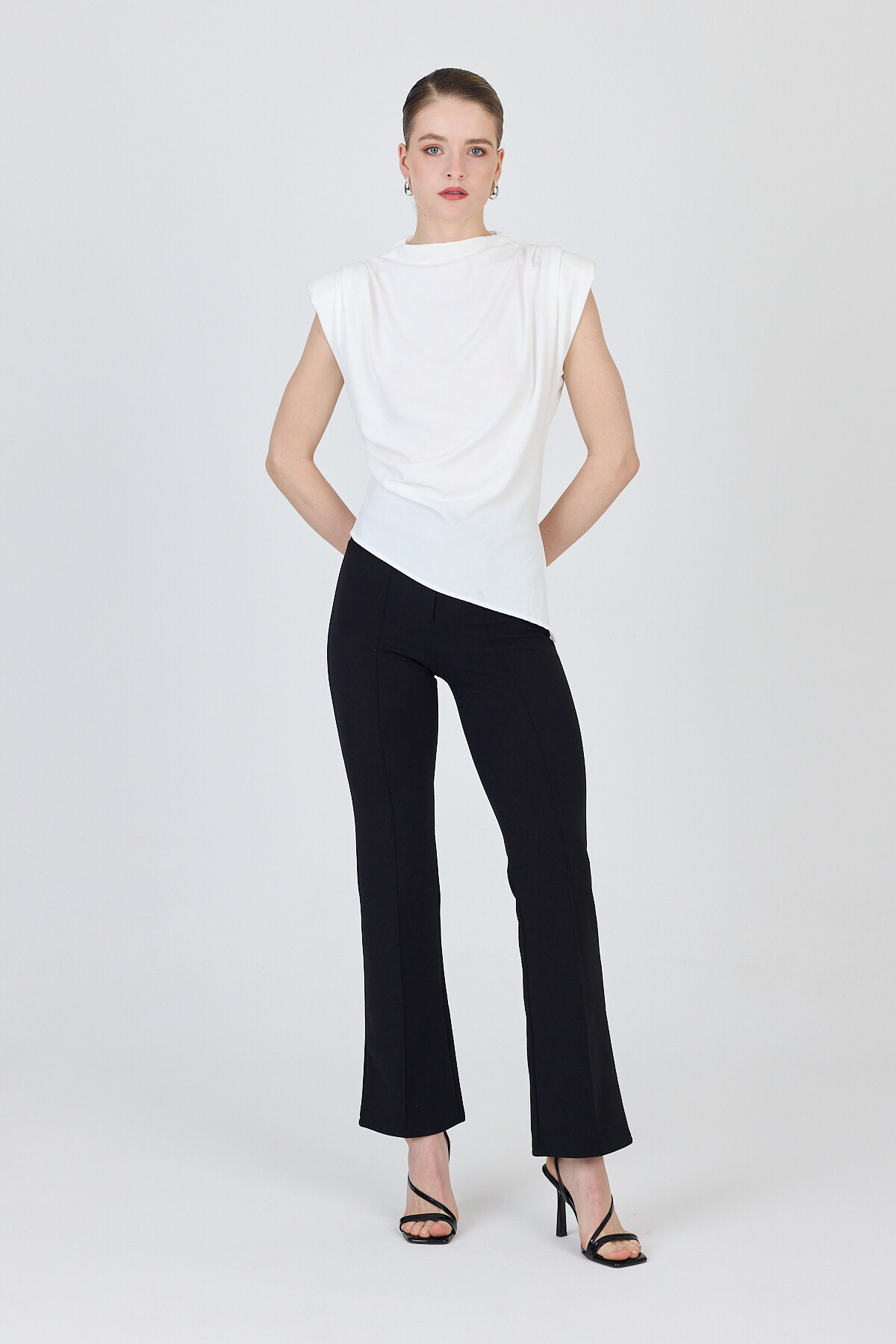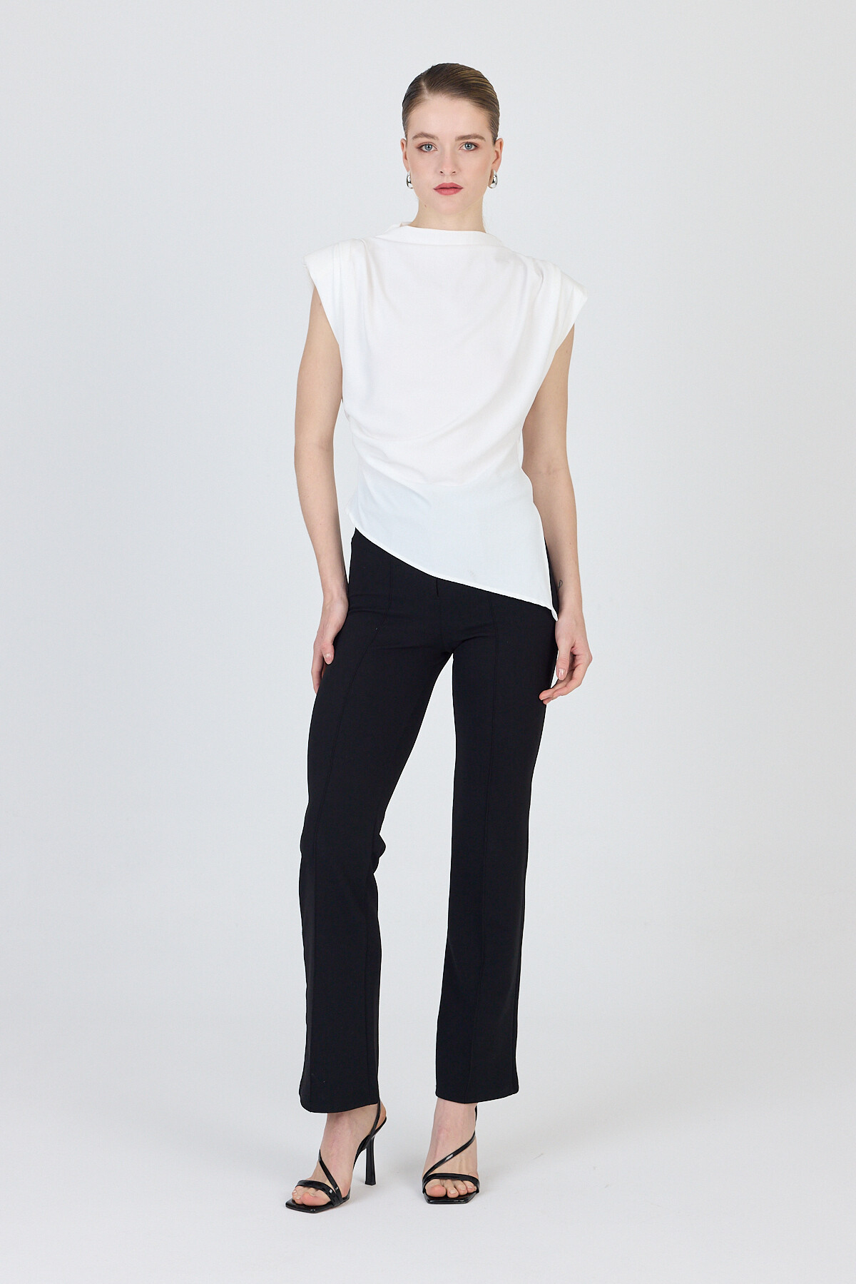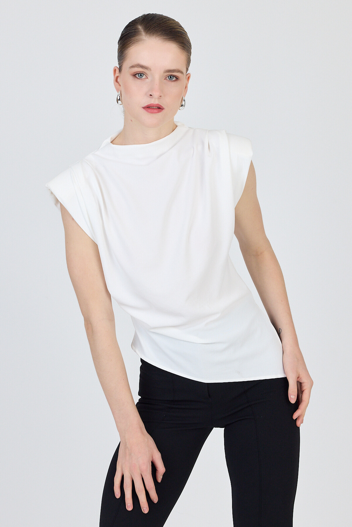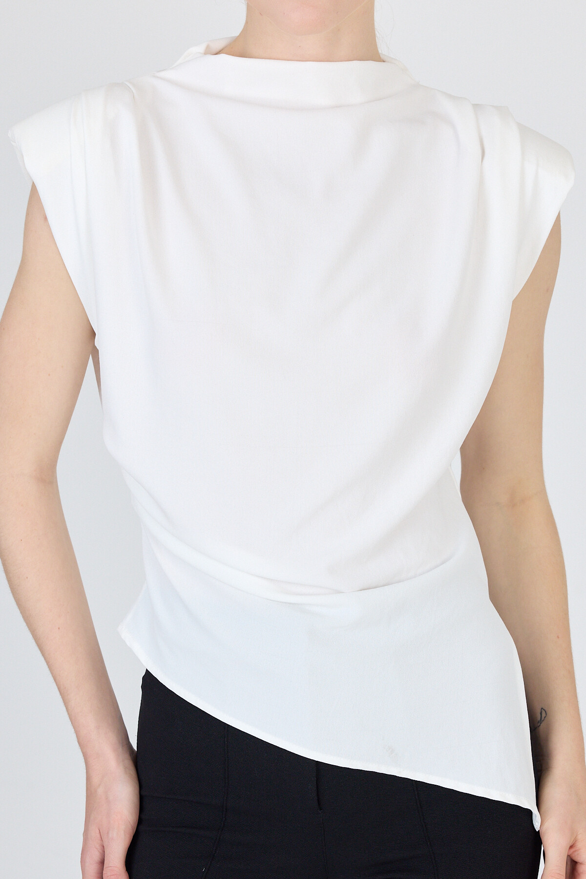 Ekru Vatkalı Asimetrik Kesim Kolsuz Bluz 242185