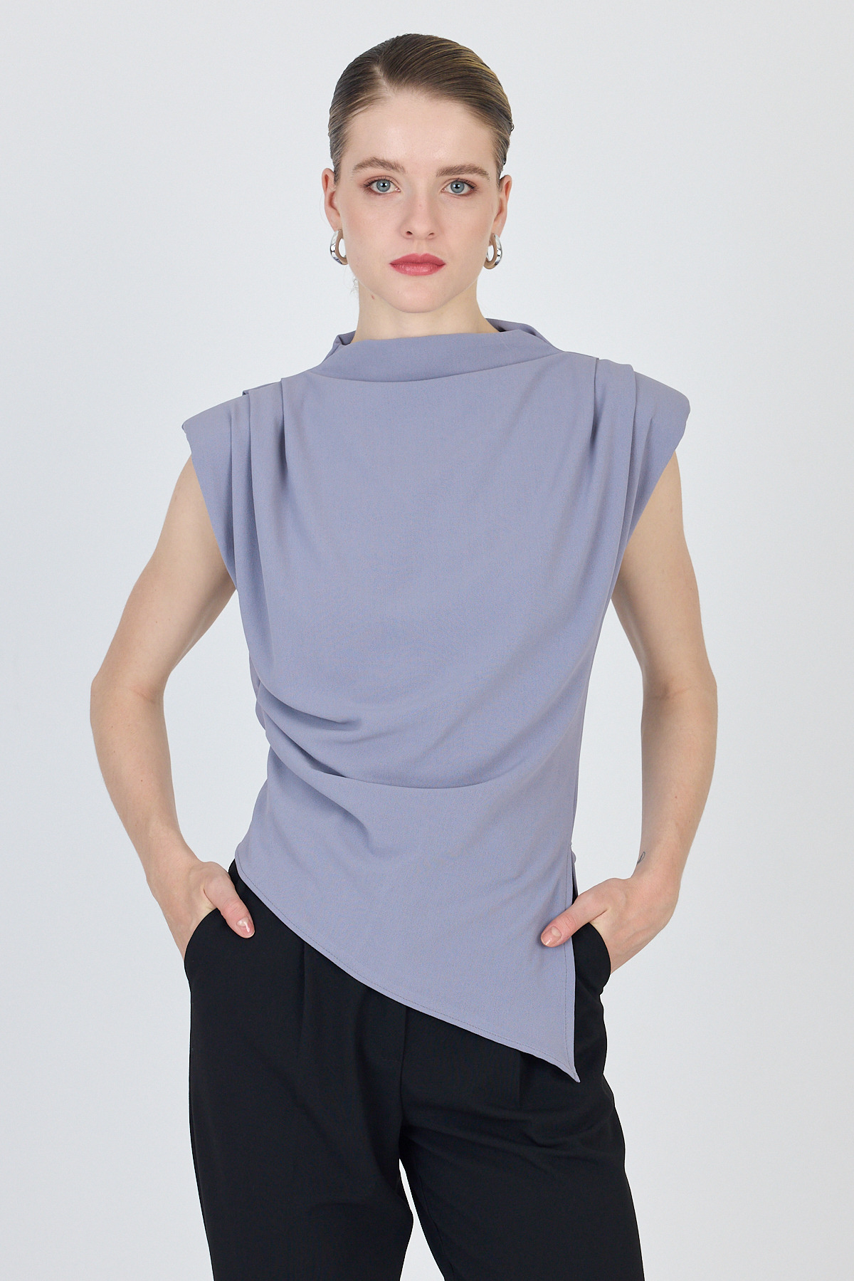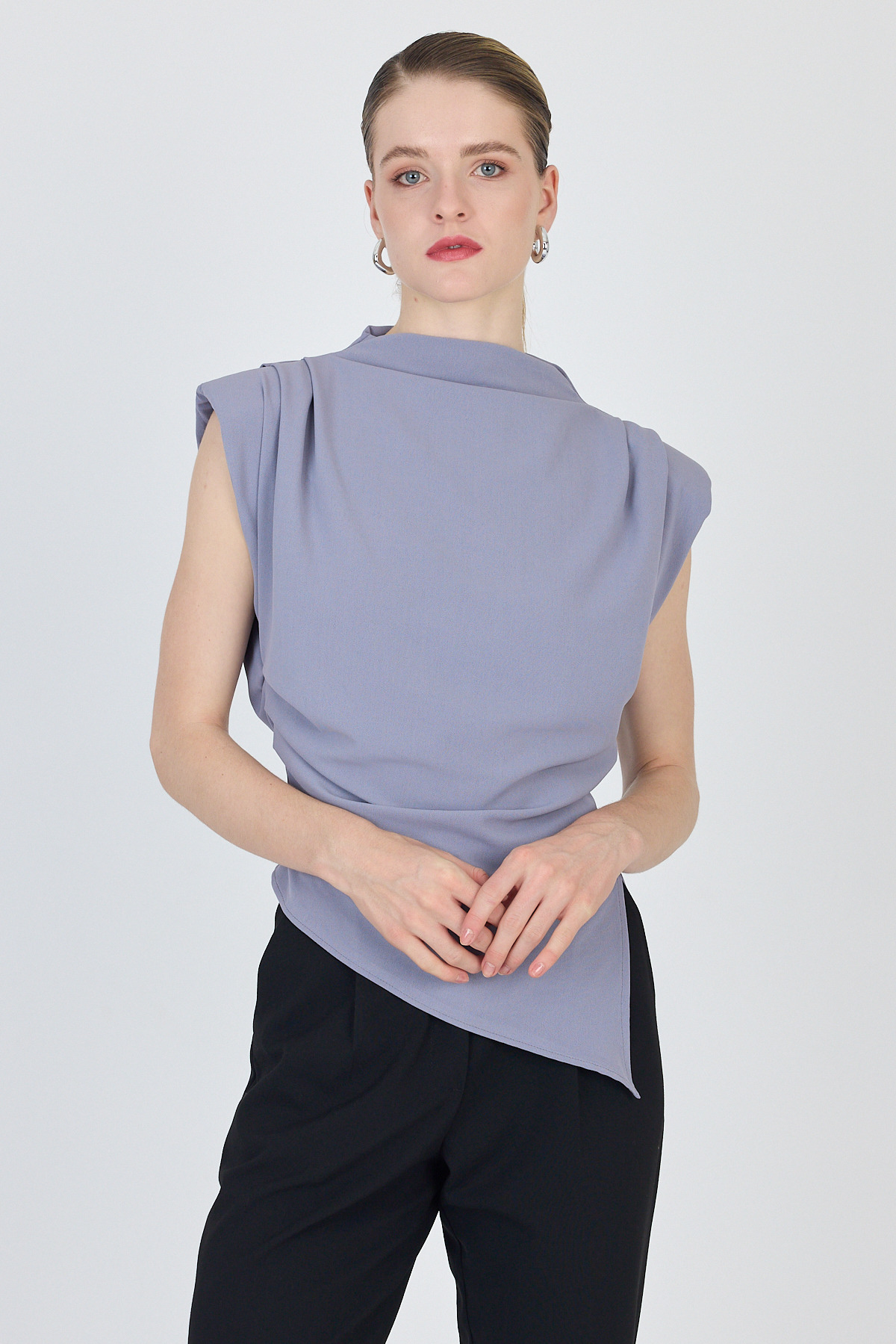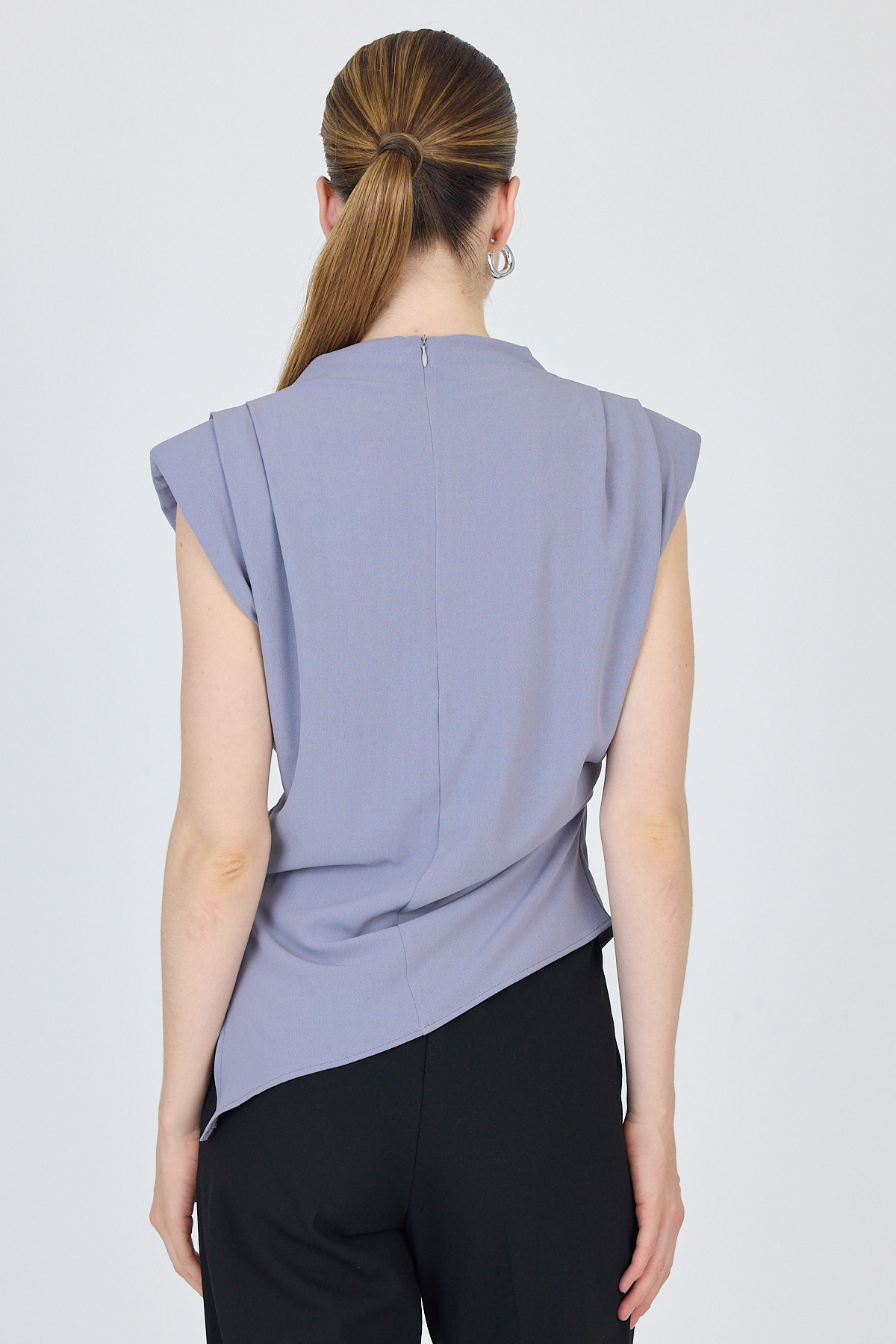 Gri Vatkalı Asimetrik Kesim Kolsuz Bluz 242185