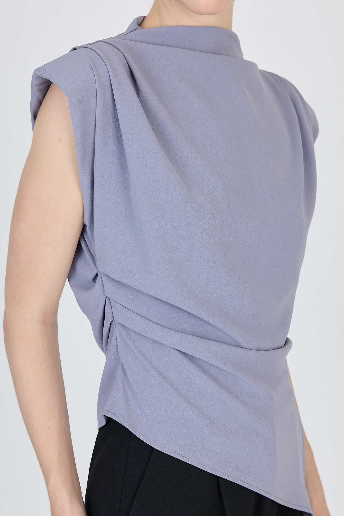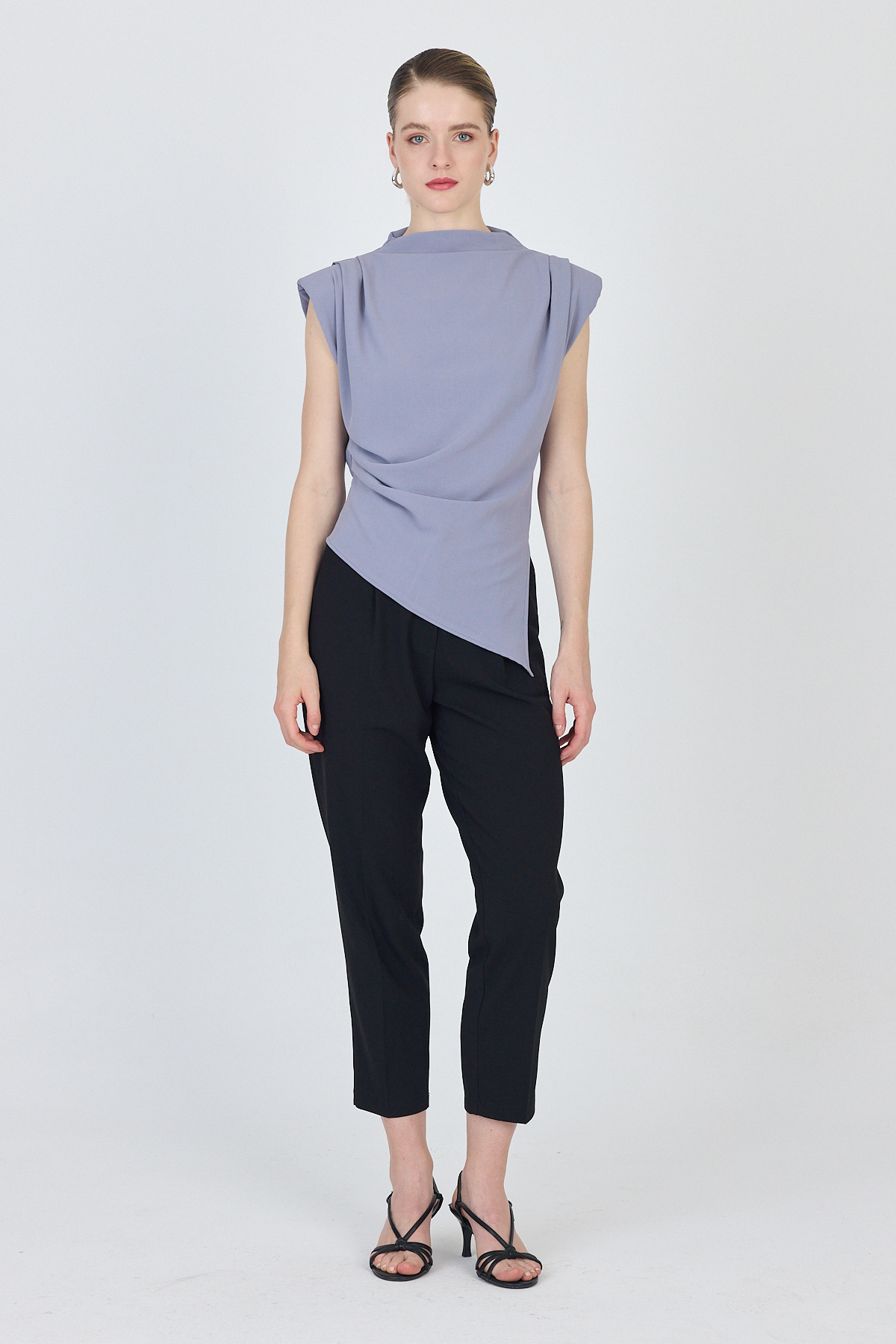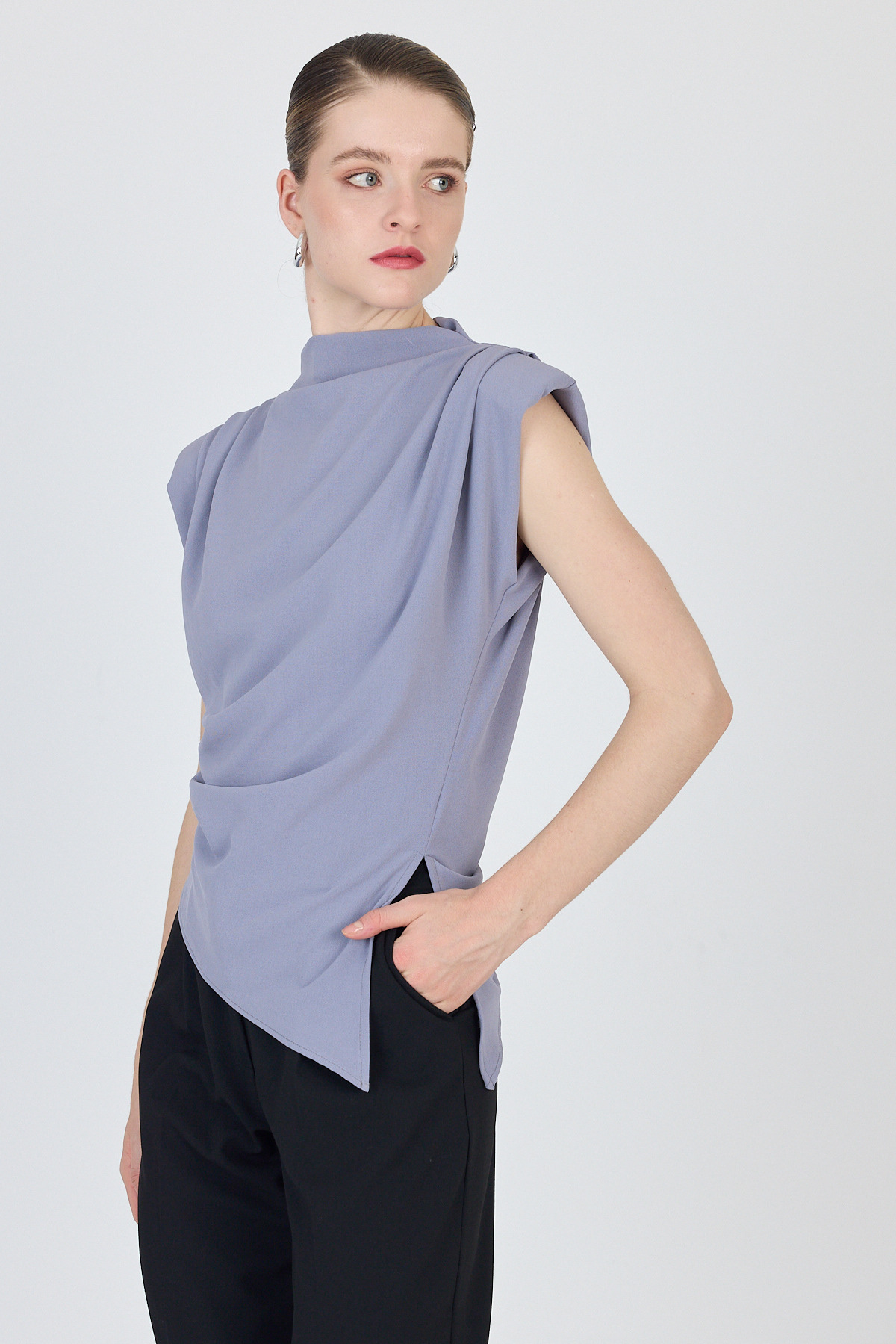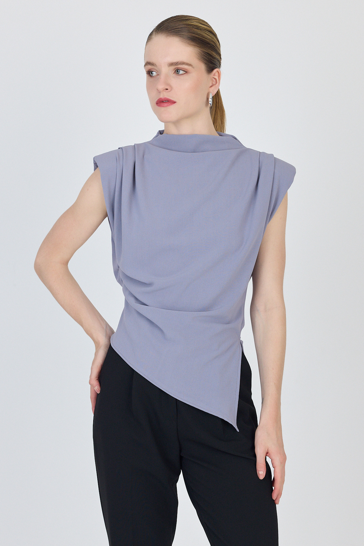 Gri Vatkalı Asimetrik Kesim Kolsuz Bluz 242185