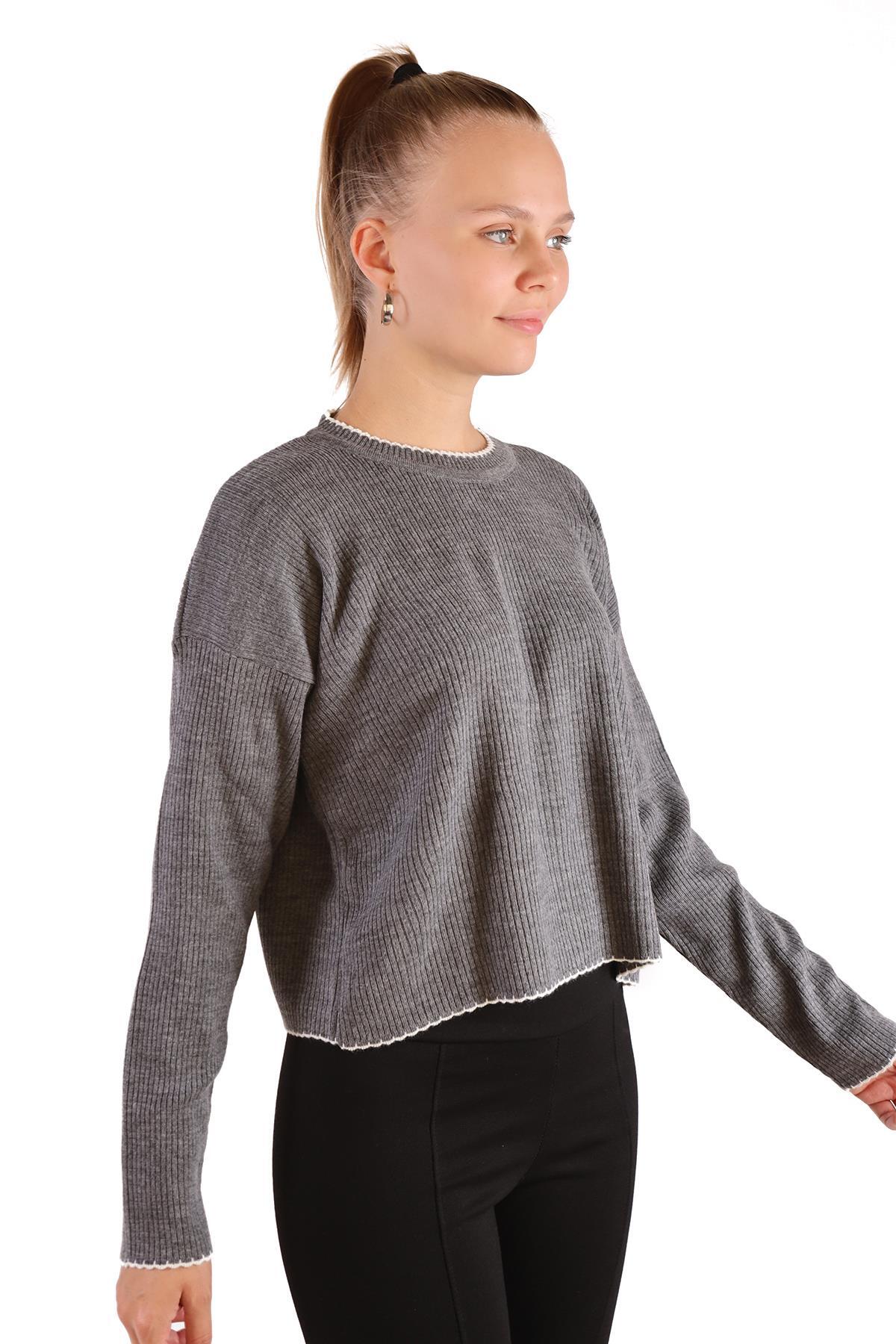 Gri Gömlek Yaka Kazak 3082A - RAYS Gri Gömlek Yaka Kazak 3082A - RAYS (1)