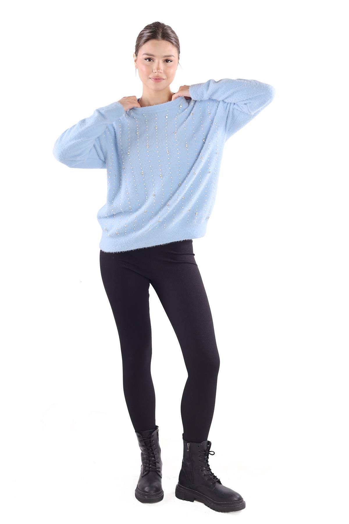Bebe Mavi Taş Detay Sakallı Kazak 24266