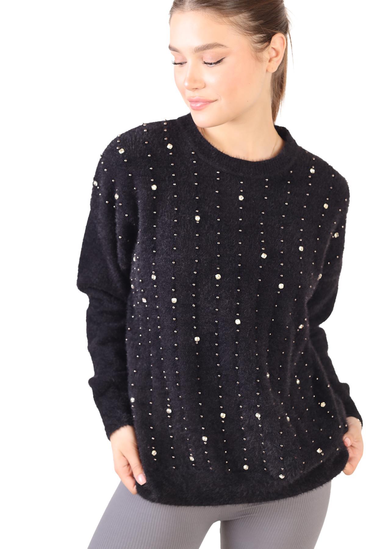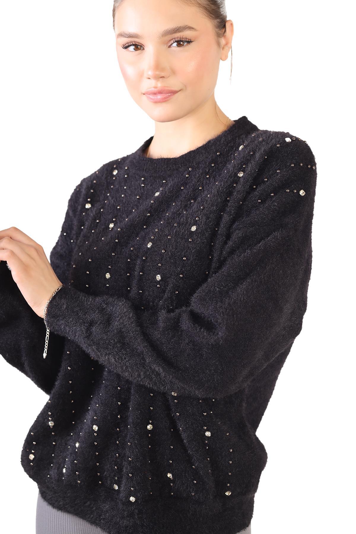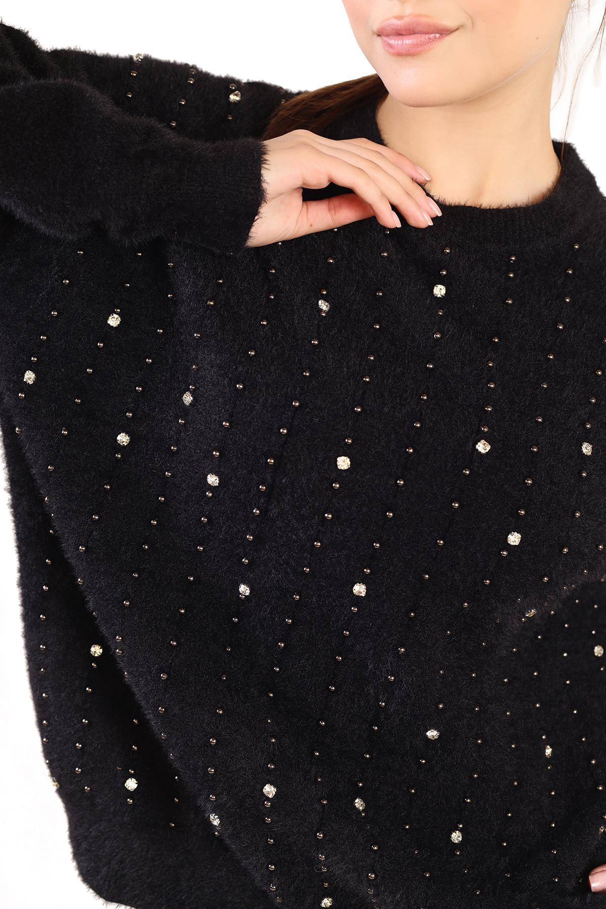Siyah Taş Detay Sakallı Kazak 24266