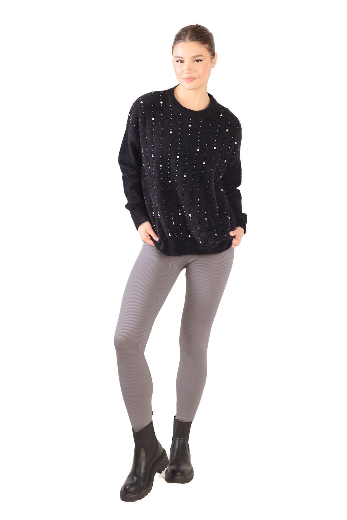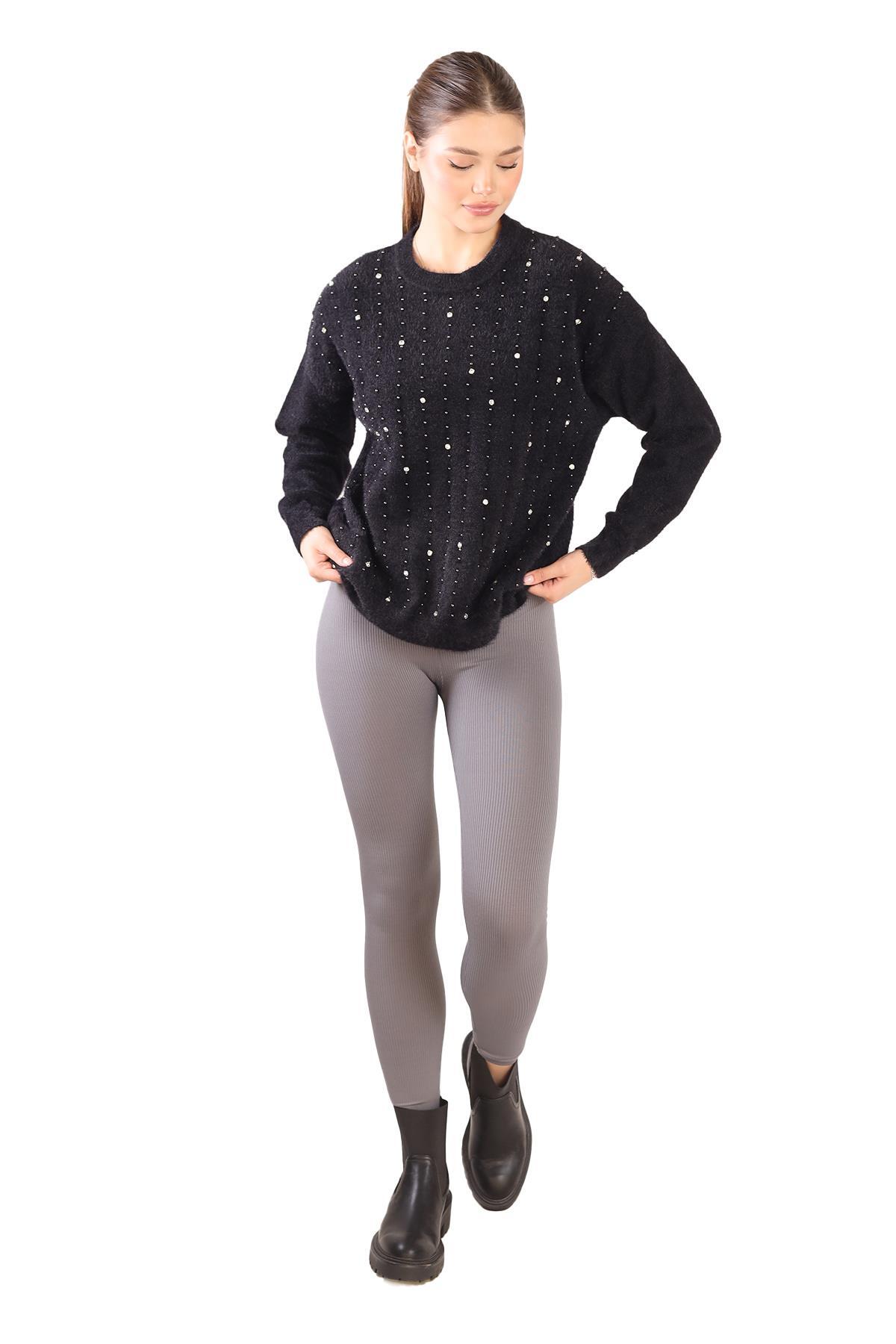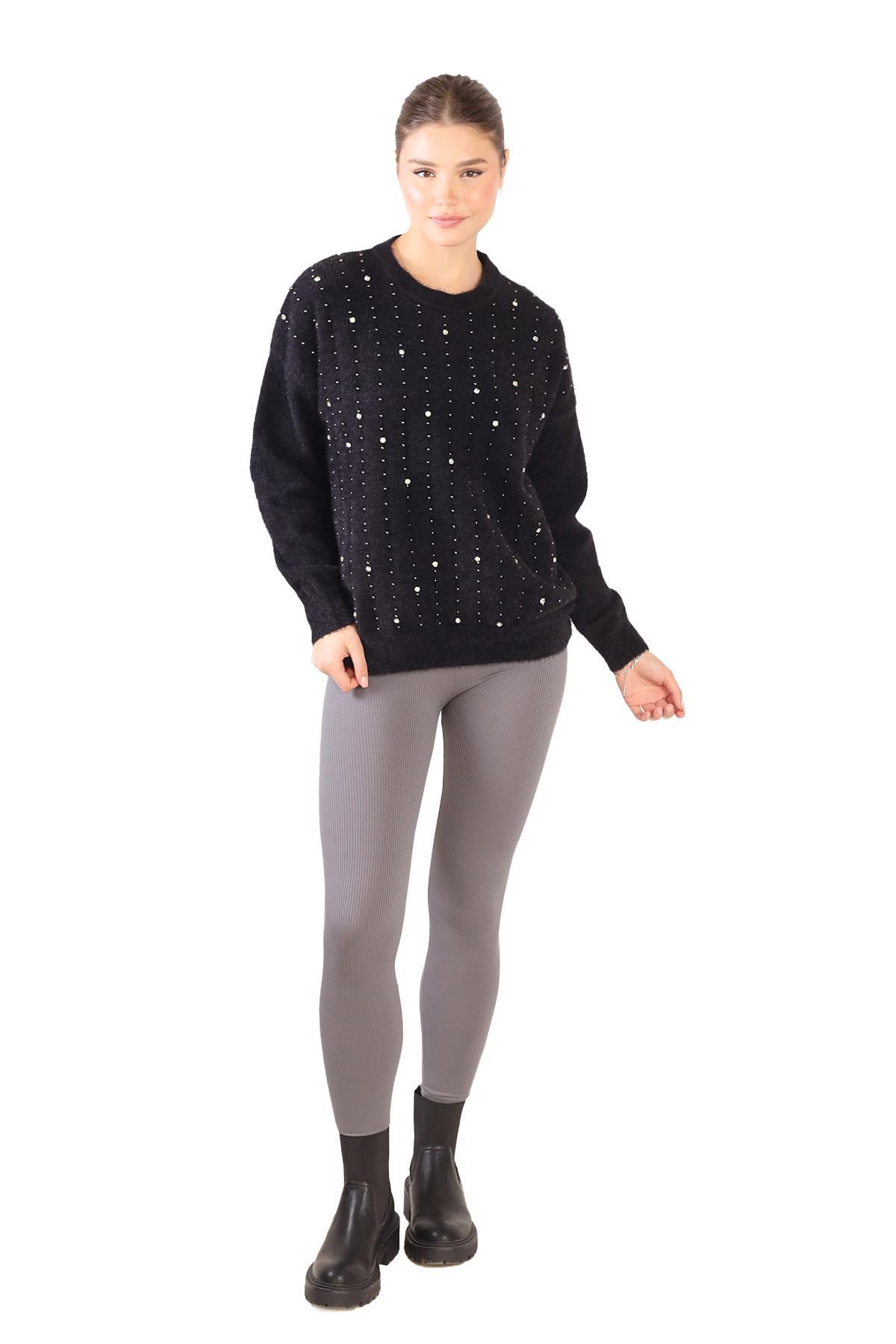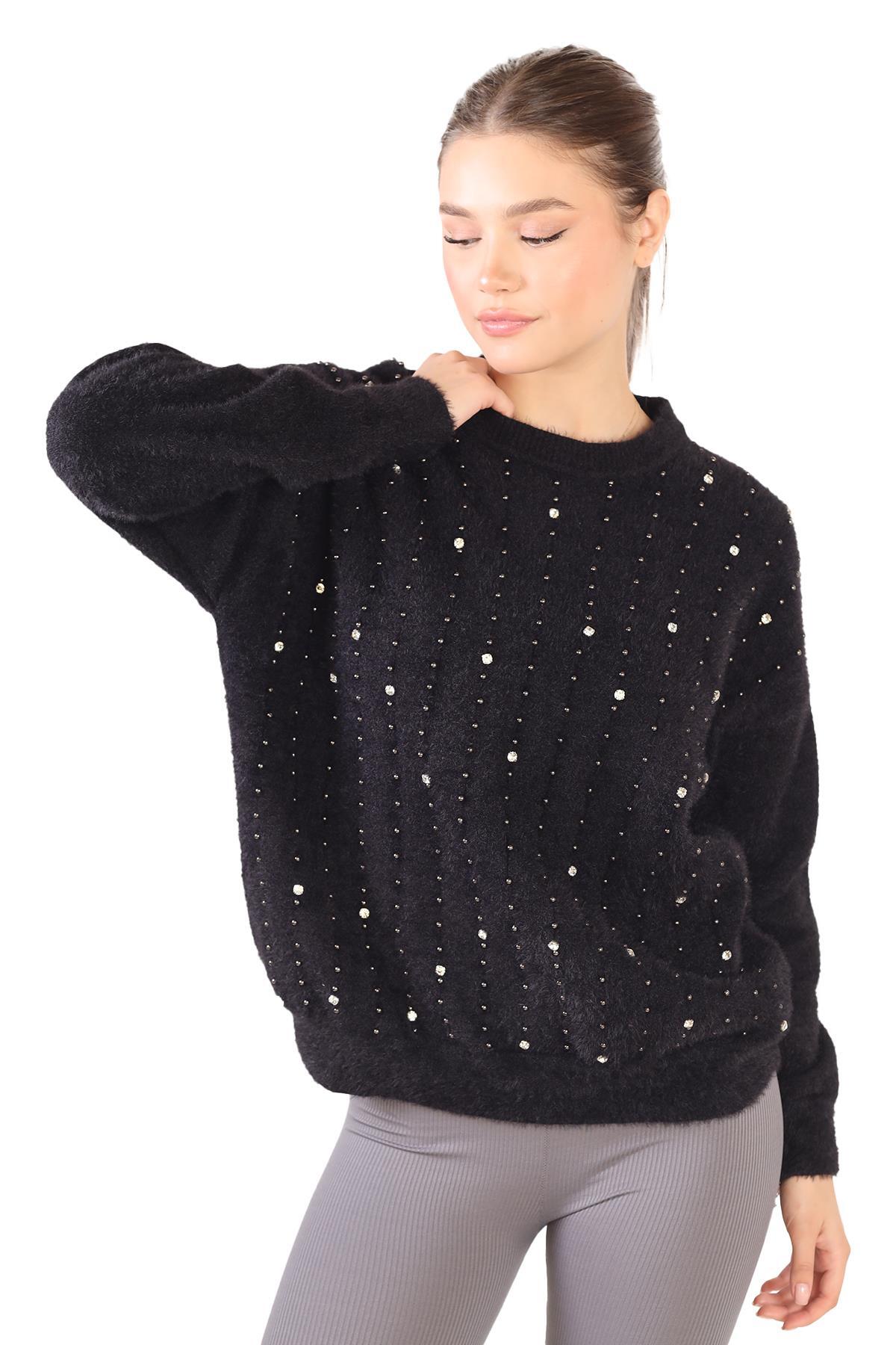 Siyah Taş Detay Sakallı Kazak 24266