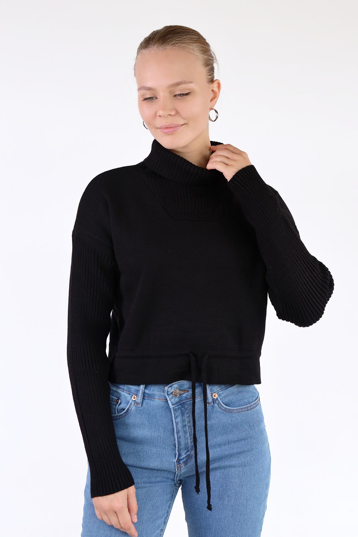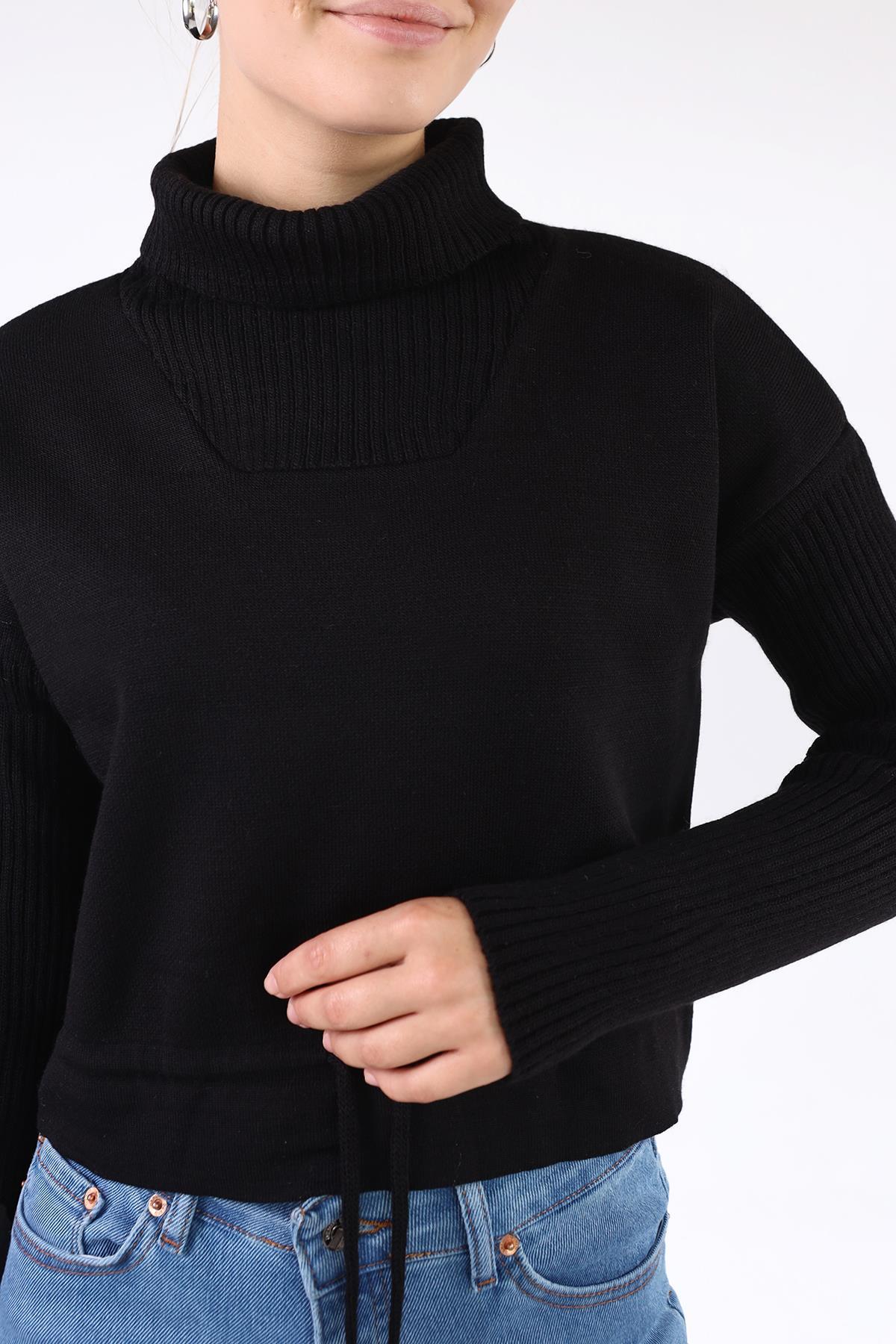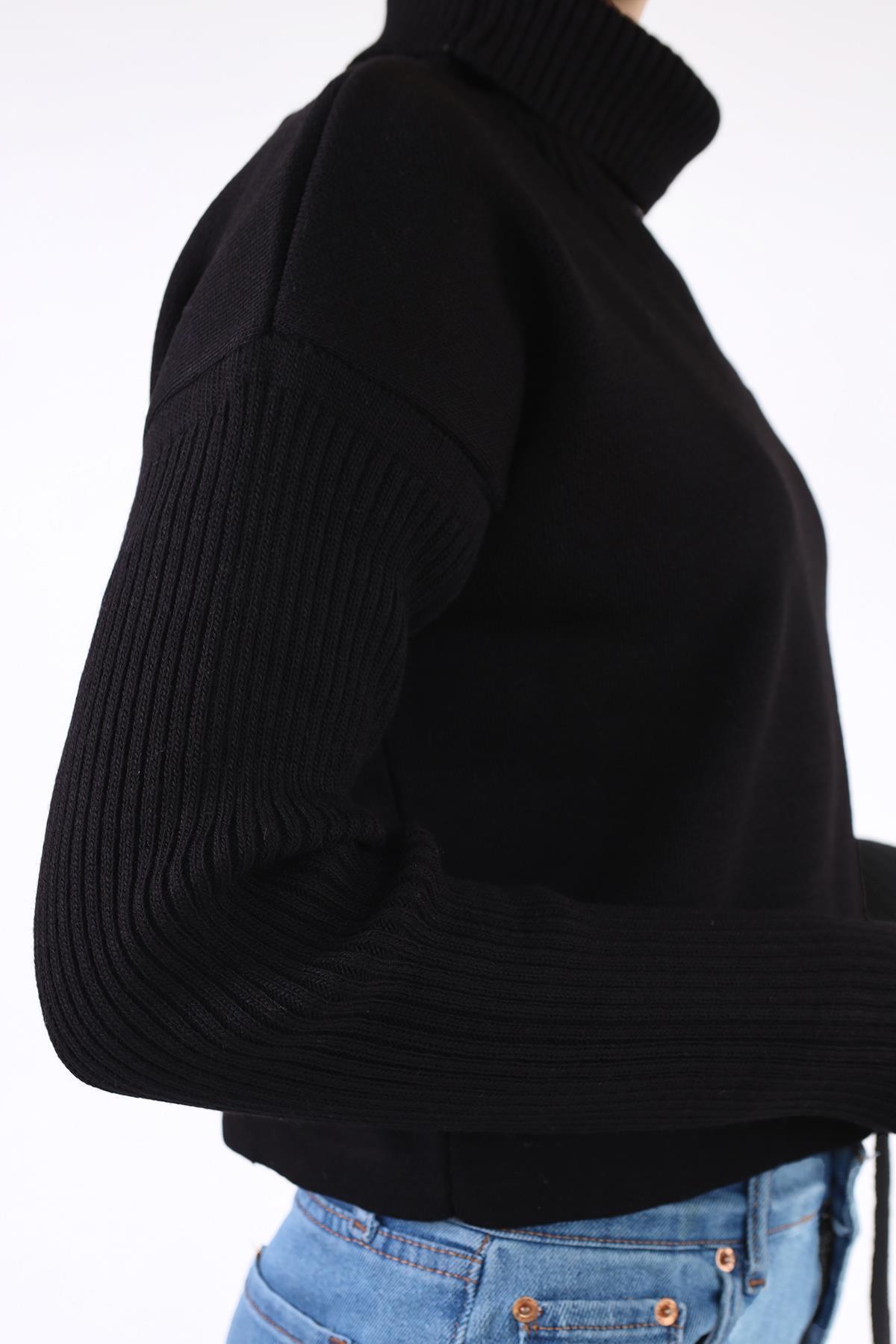 Siyah Etek Bağcık Detay Kazak 24284