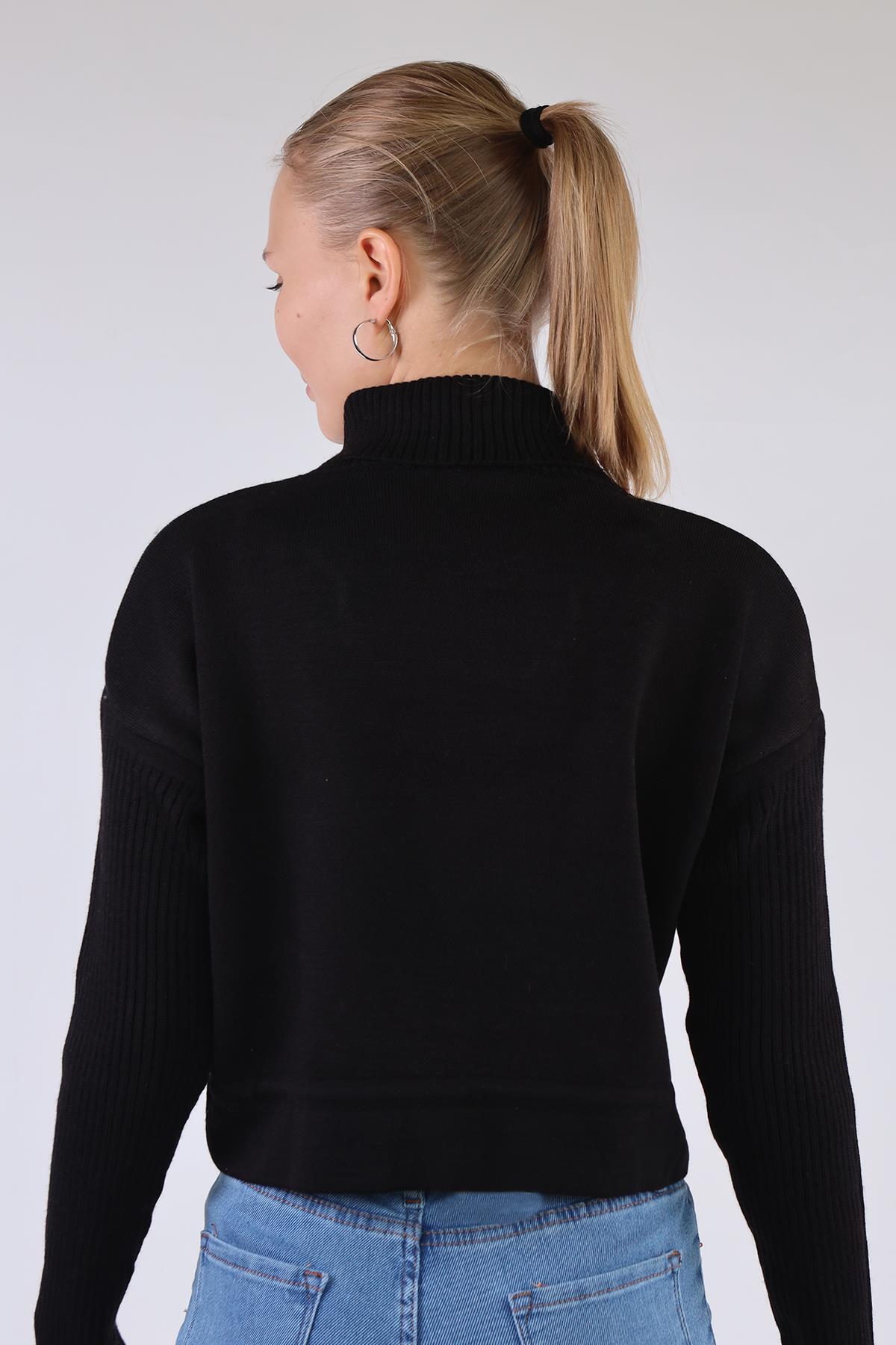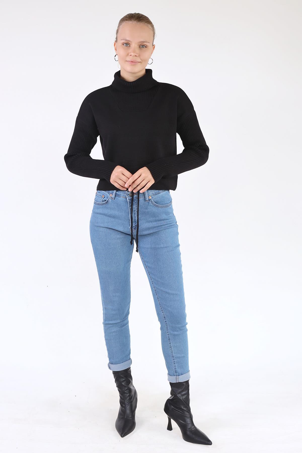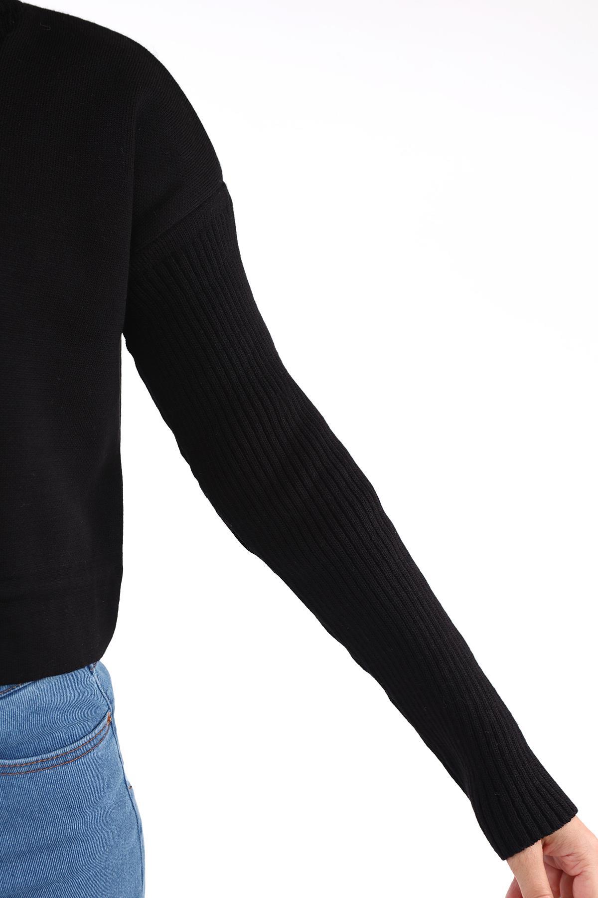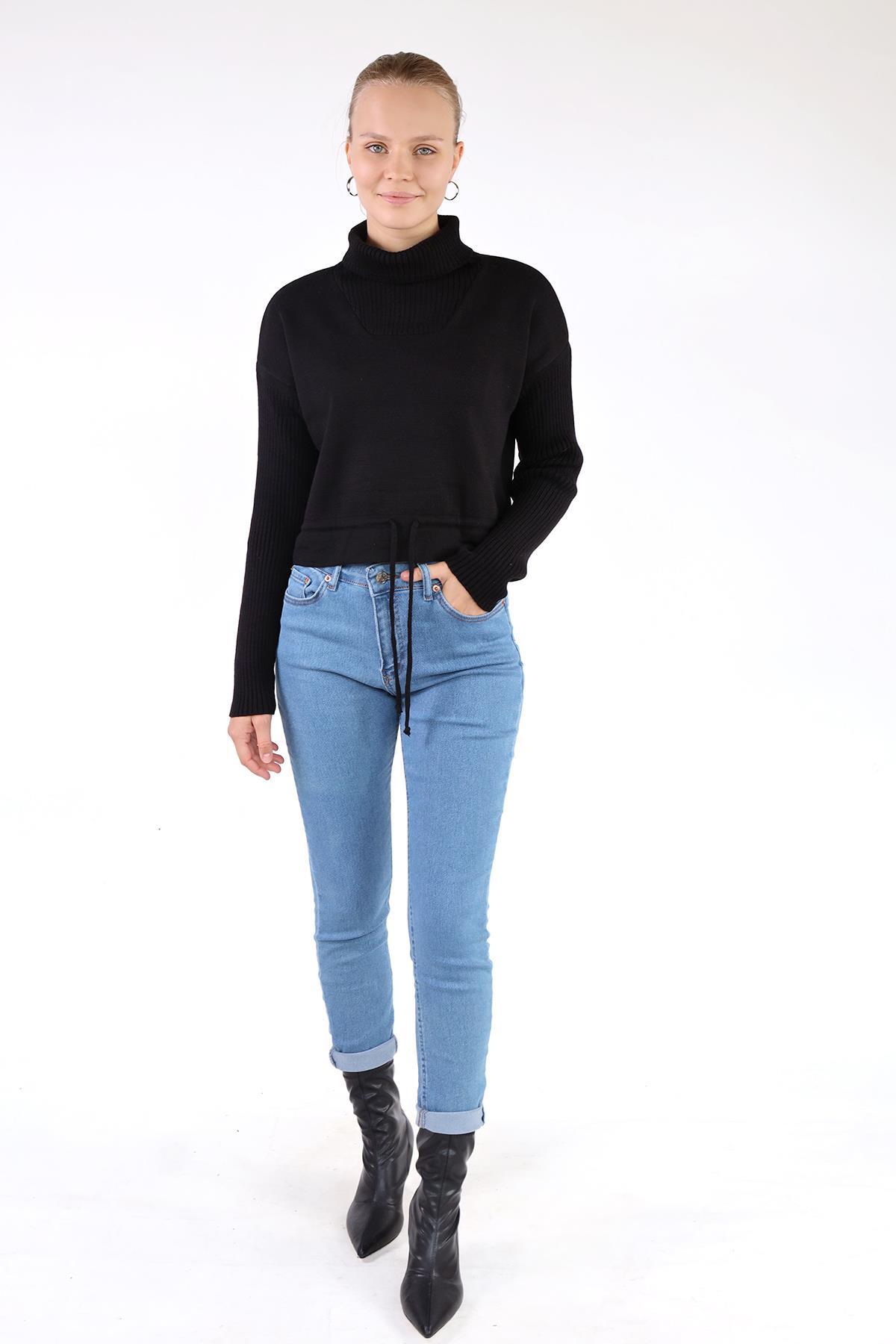 Siyah Etek Bağcık Detay Kazak 24284