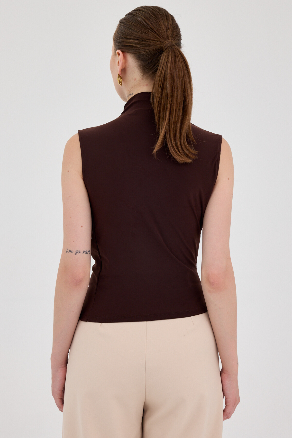 Kahve Kolsuz Büzgülü Sandy Bluz 2430