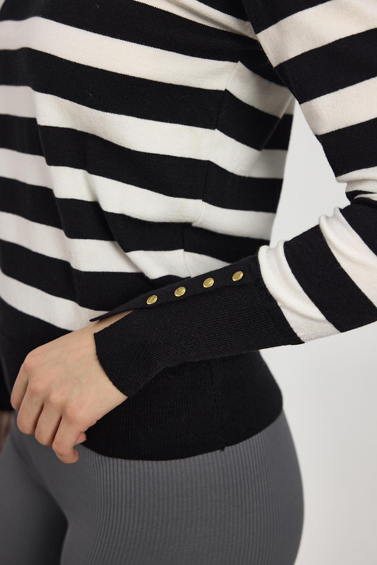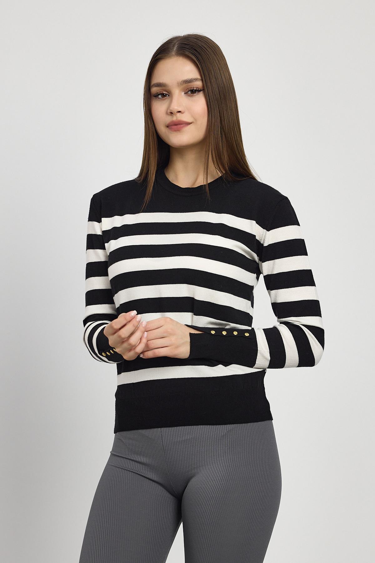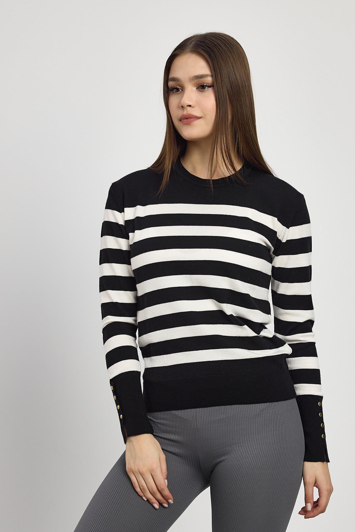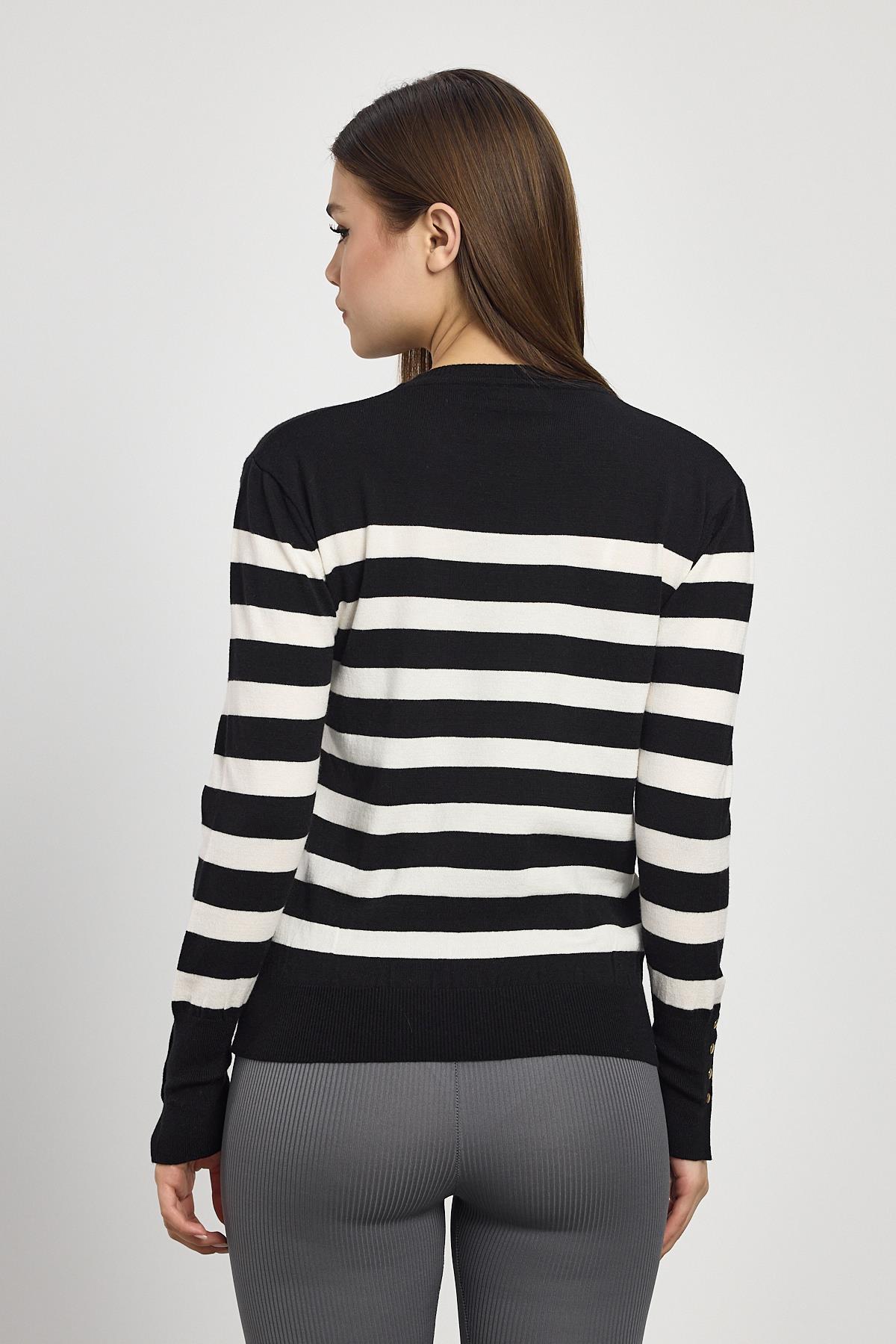 Siyah Çizgili Kol Düğme Detay Kazak 24346
