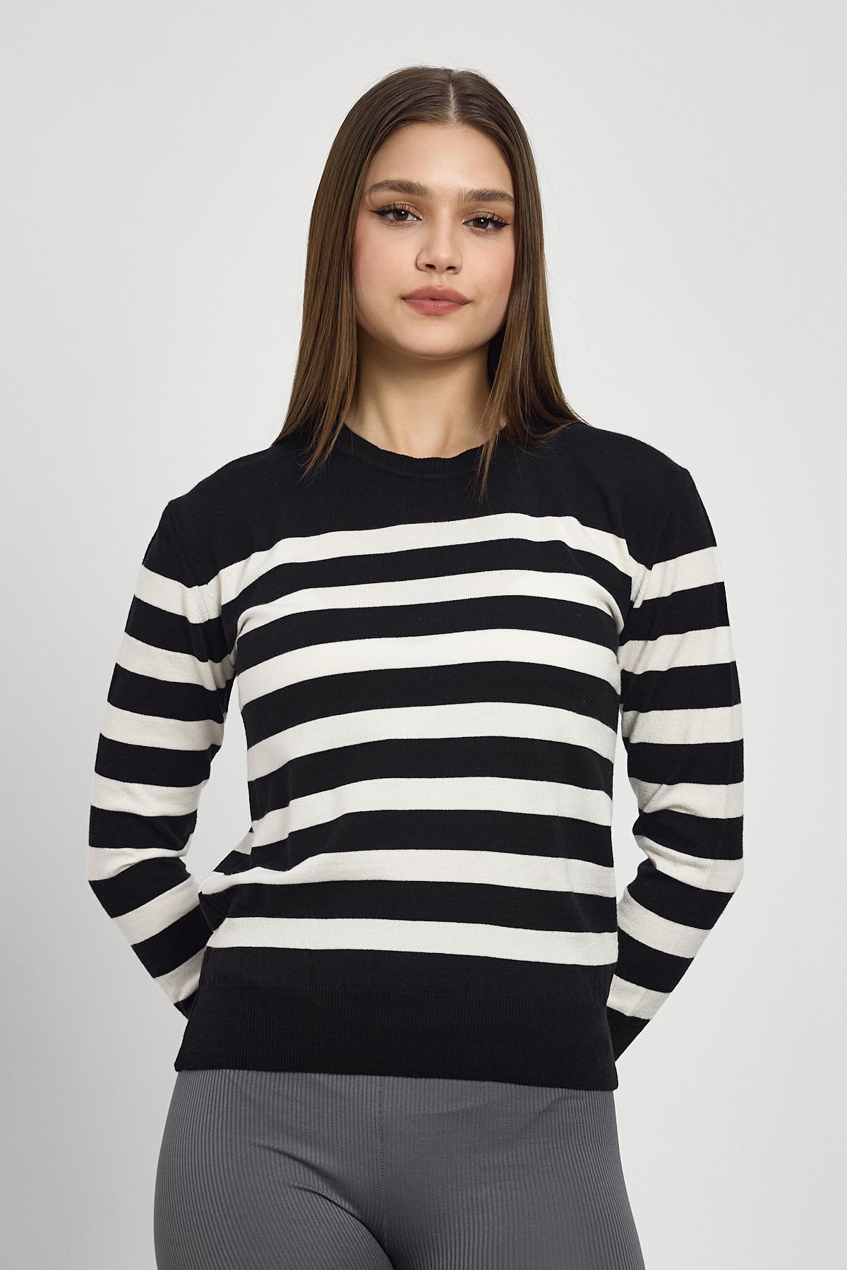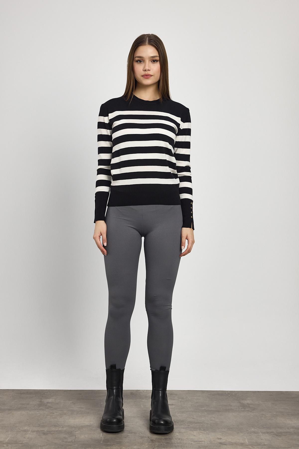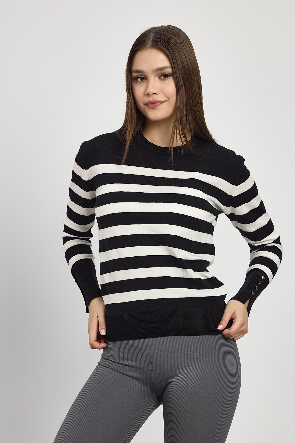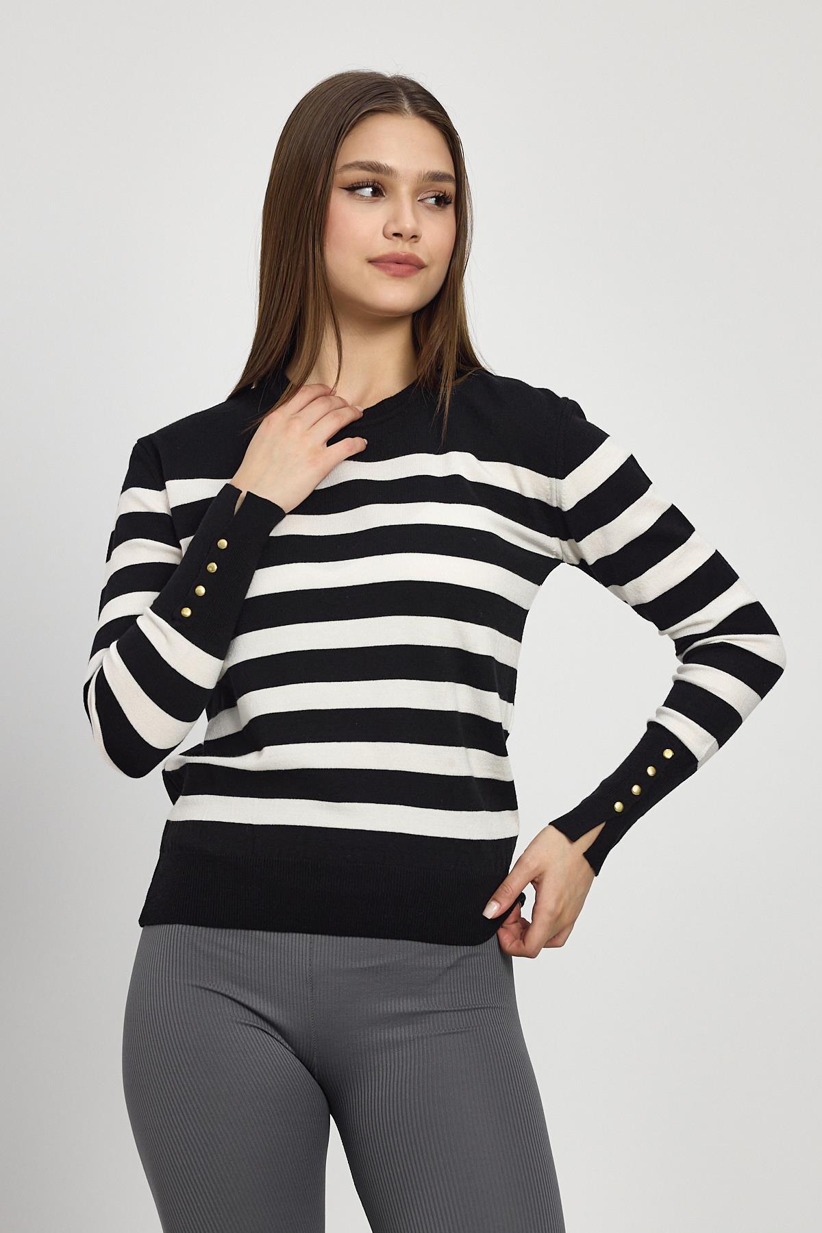 Siyah Çizgili Kol Düğme Detay Kazak 24346