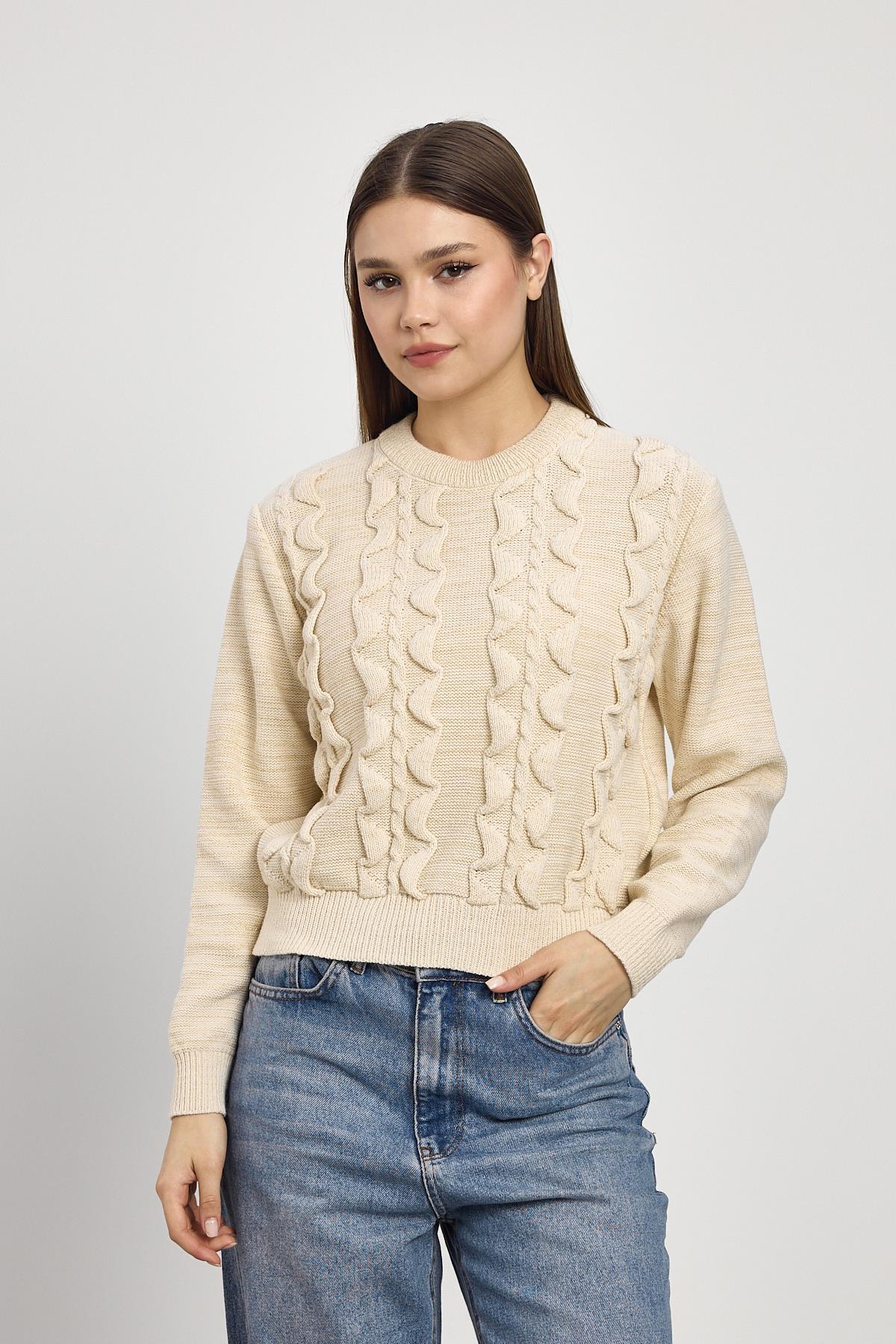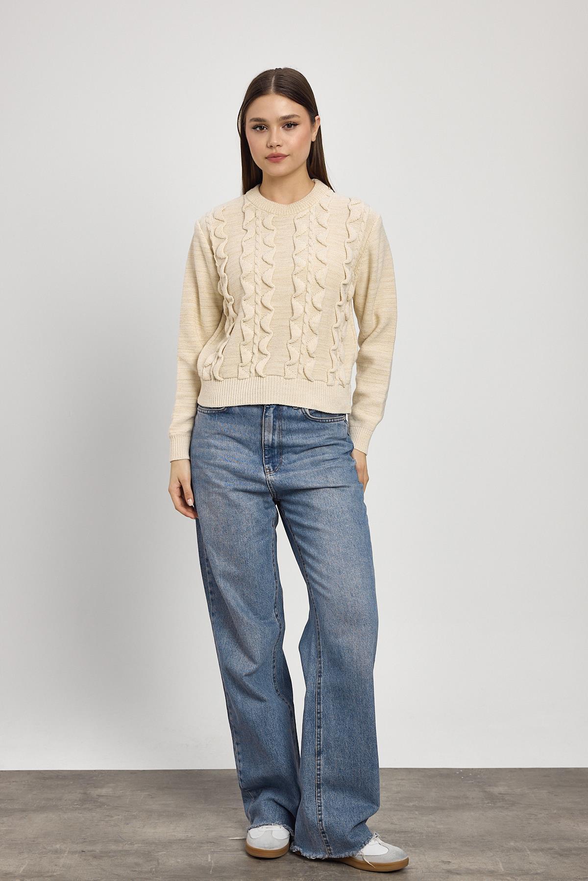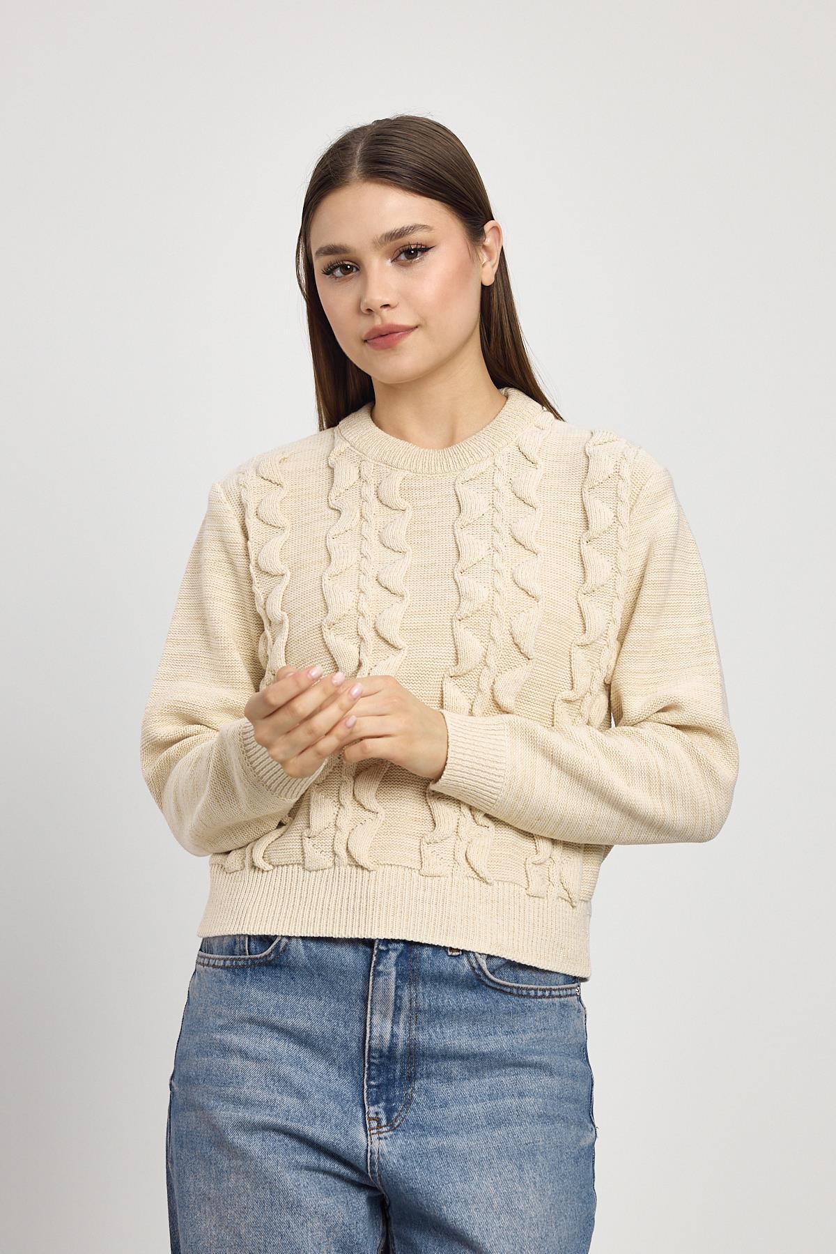 Bej Simli Fırfır Detay Kazak 24364