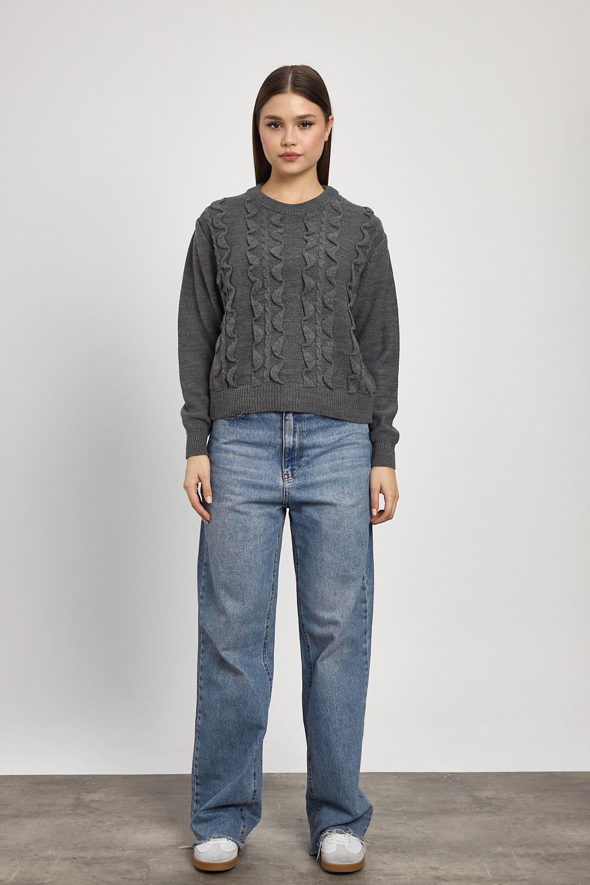Antrasit Bisiklet Yaka Oversize Kadın Kazak 2450