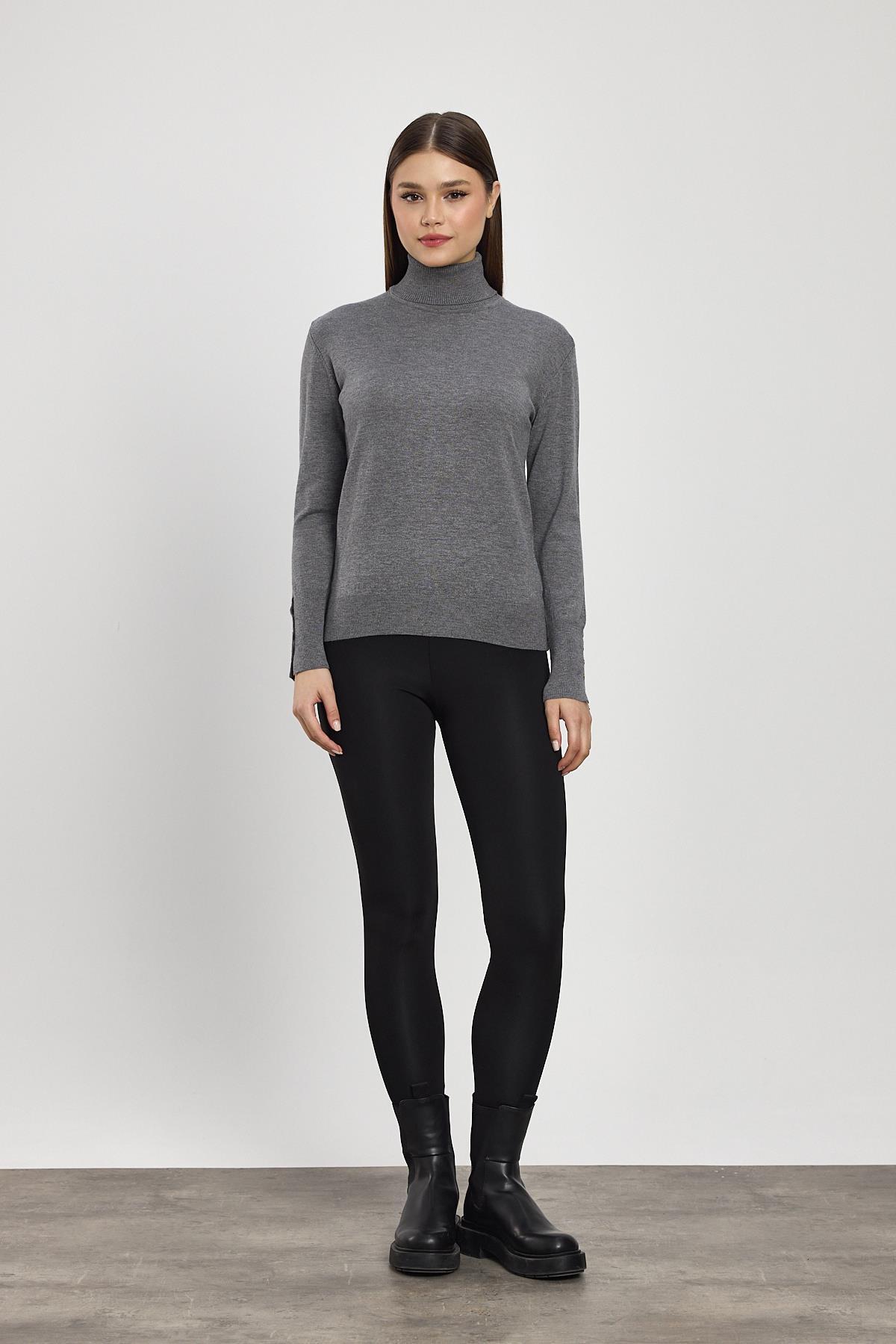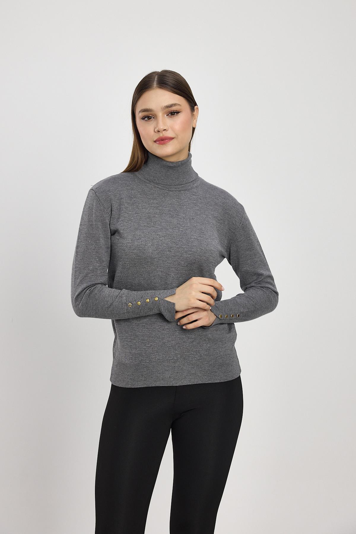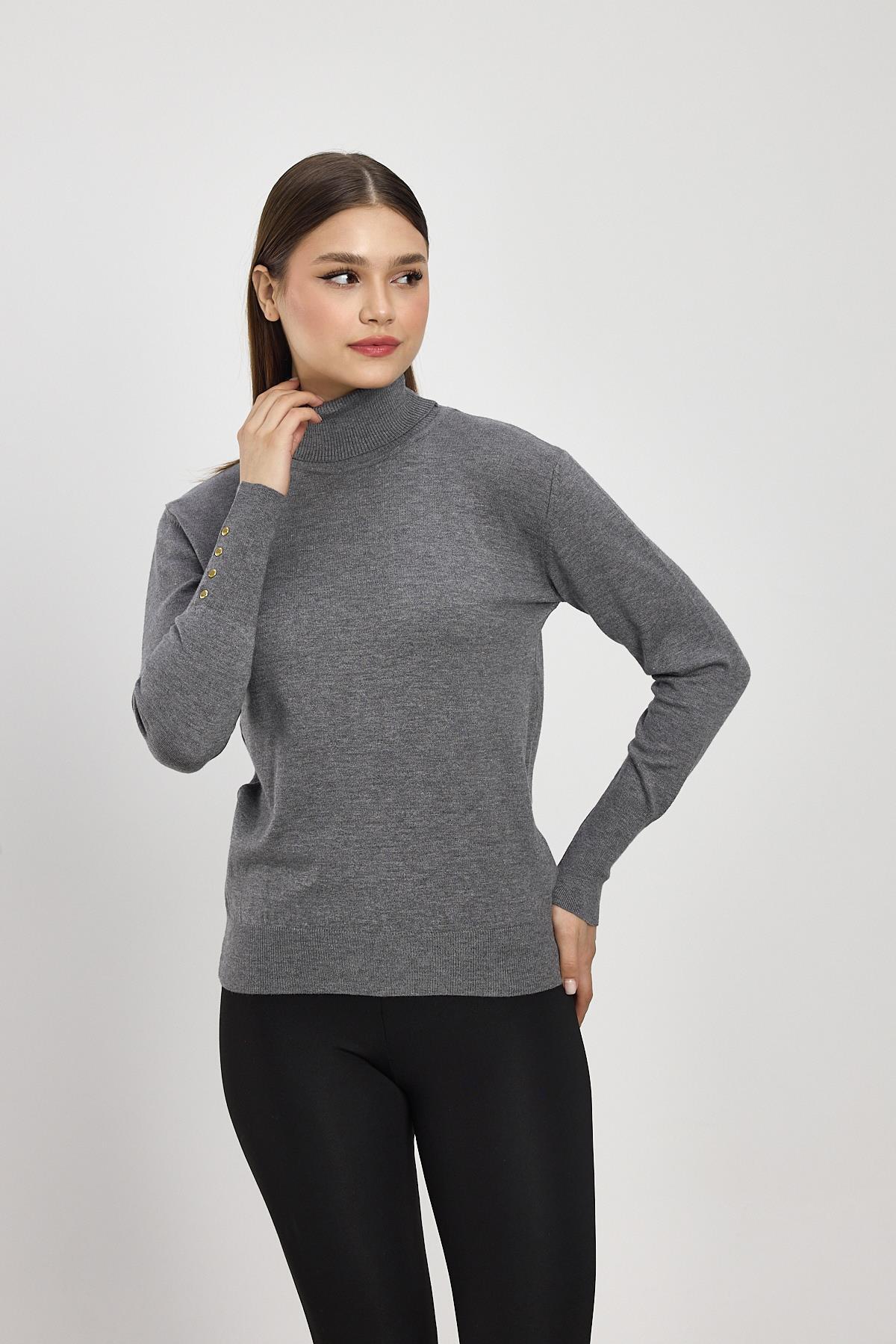 Füme Balıkçı Yaka Kol Detay Kazak 24369