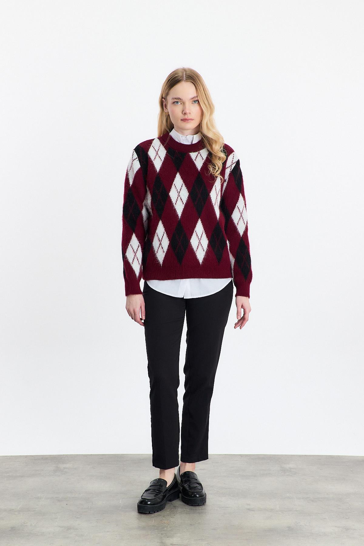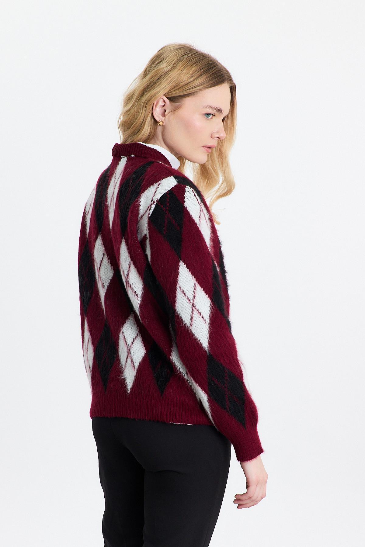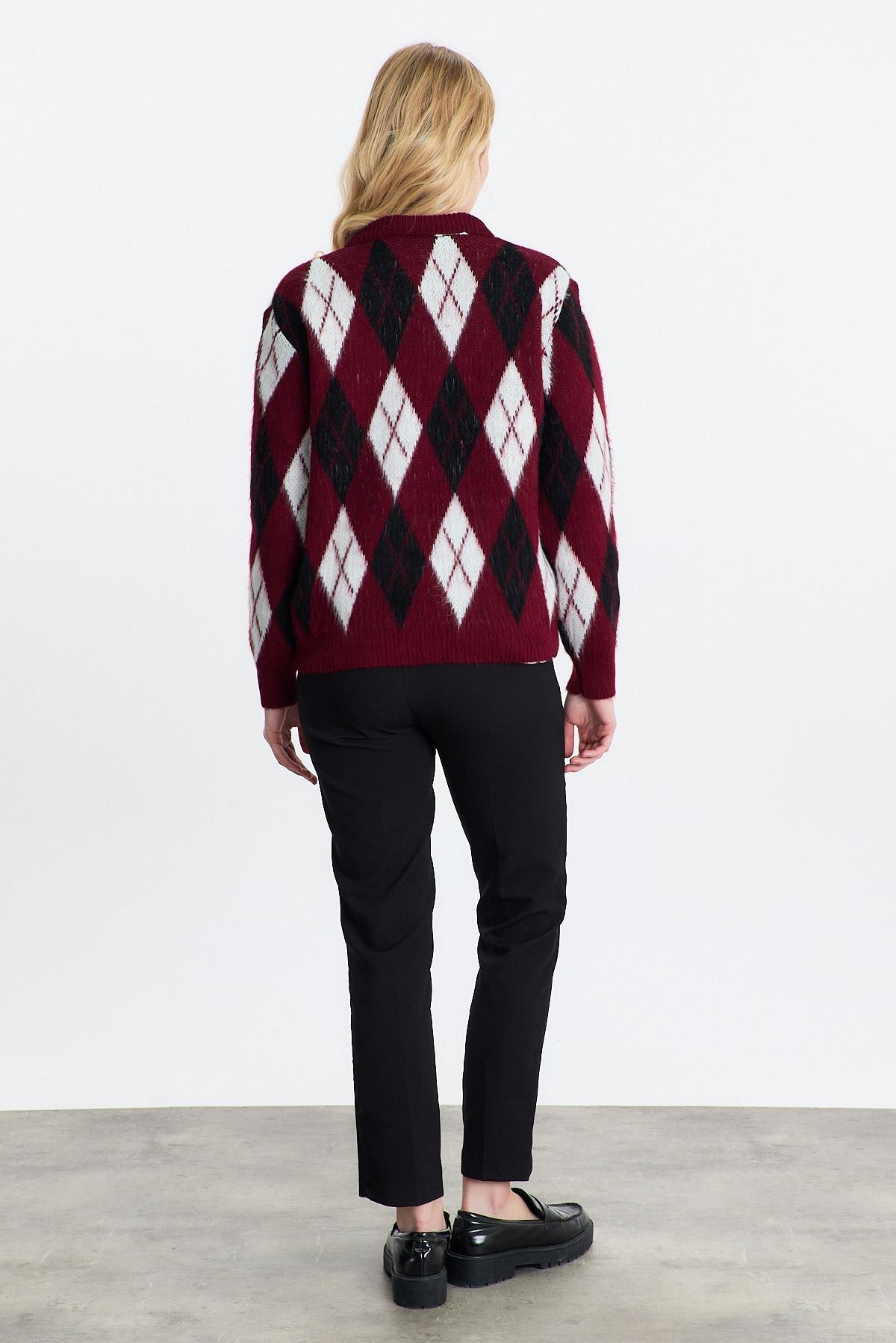 Bordo Baklava Desen Şardonlu Kazak 24376