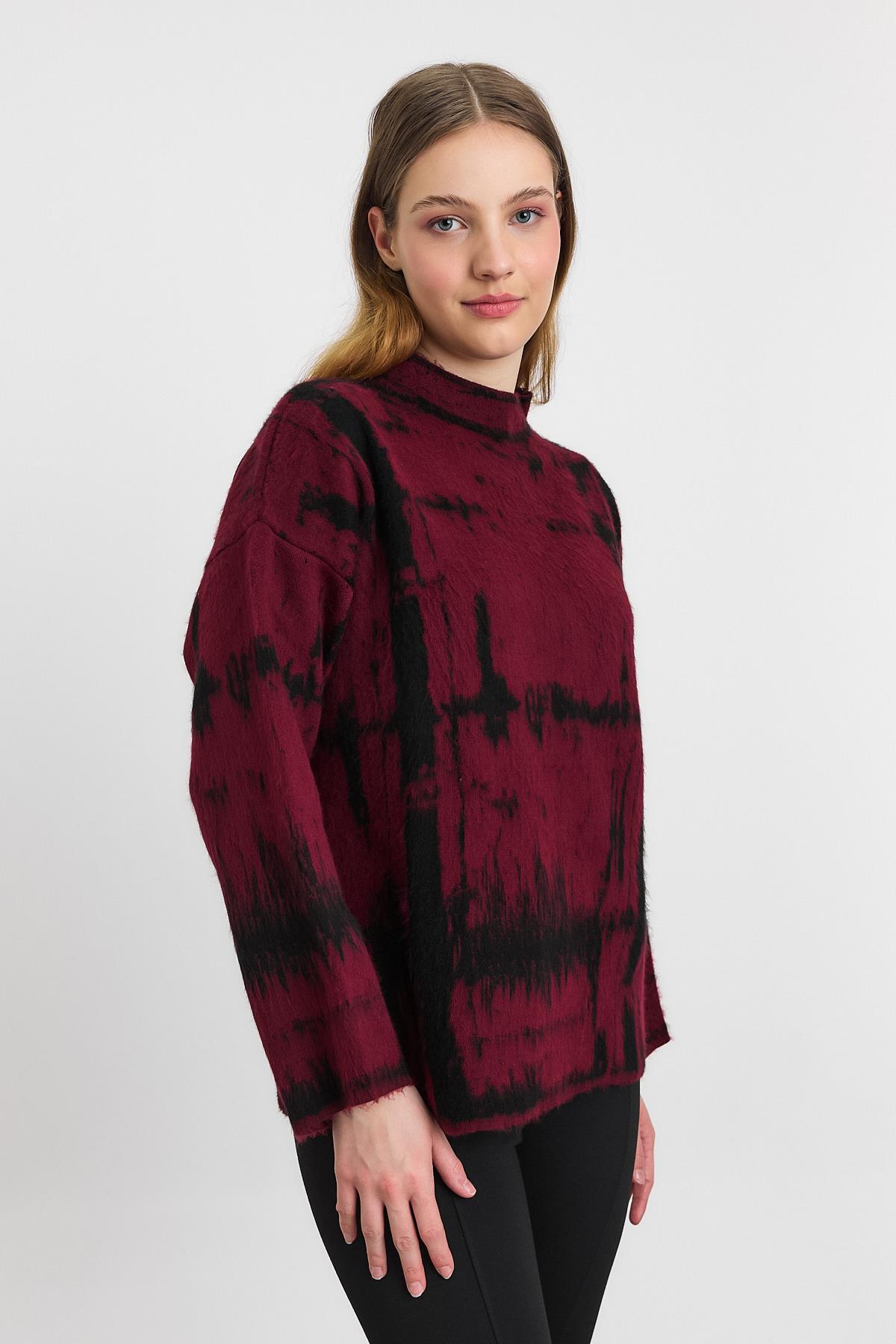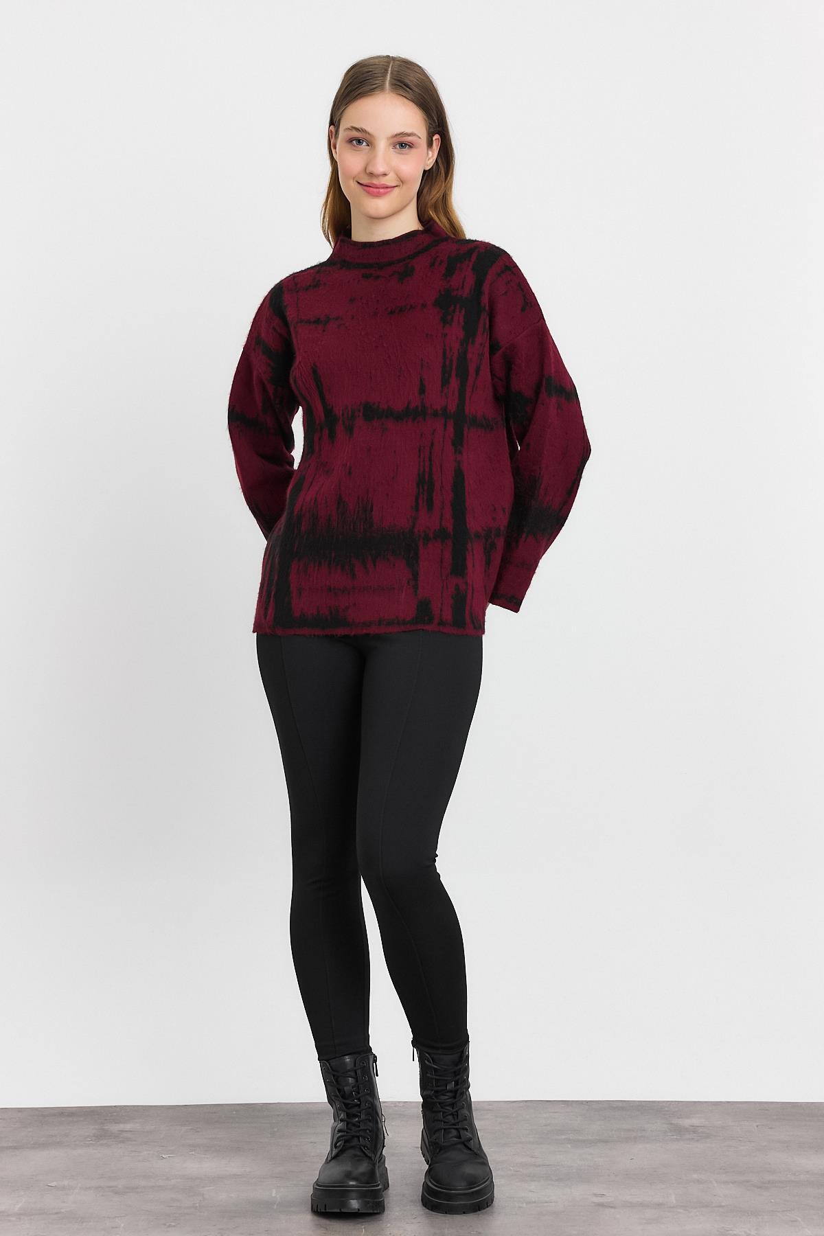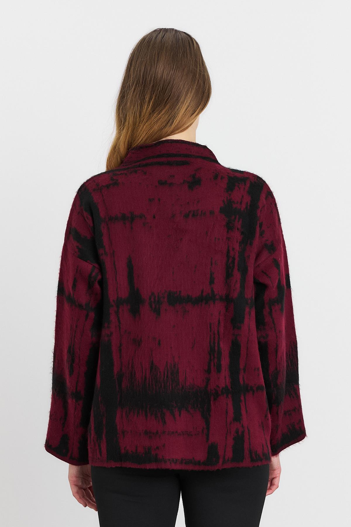 Bordo-Siyah Yarım Boğaz Şardonlu Kazak 24378