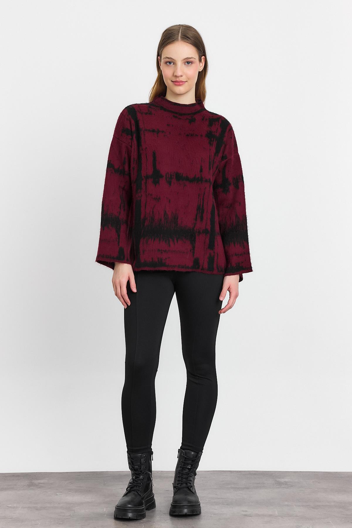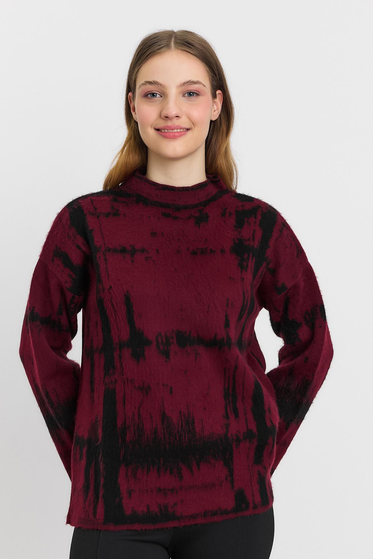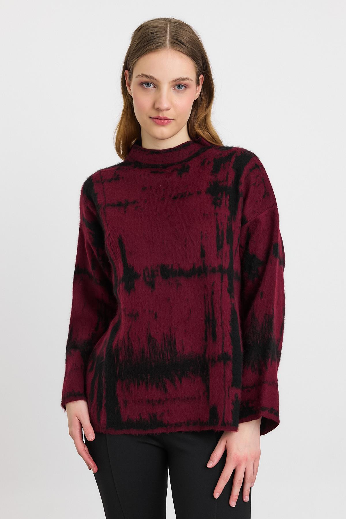 Bordo-Siyah Yarım Boğaz Şardonlu Kazak 24378