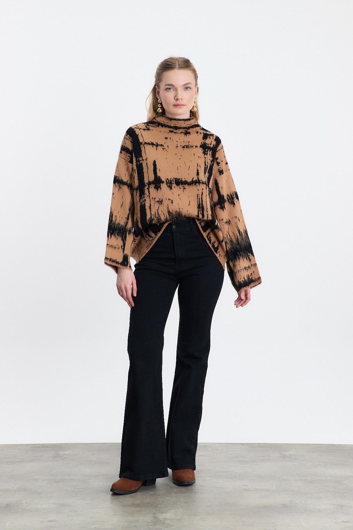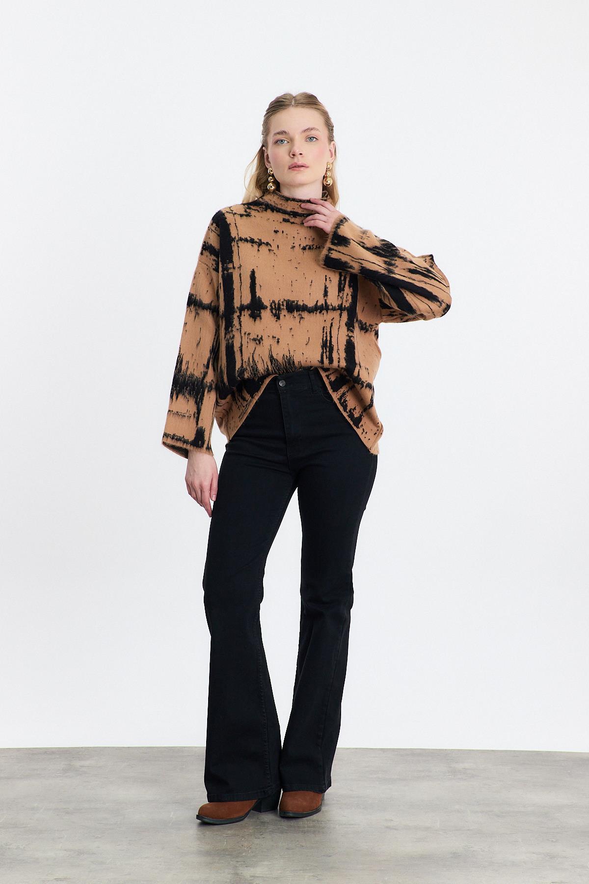 Kahve - Ekru Yıldız Baskılı Oversize Kazak 2474 - RAYS Kahve - Ekru Yıldız Baskılı Oversize Kazak 2474 - RAYS (1)