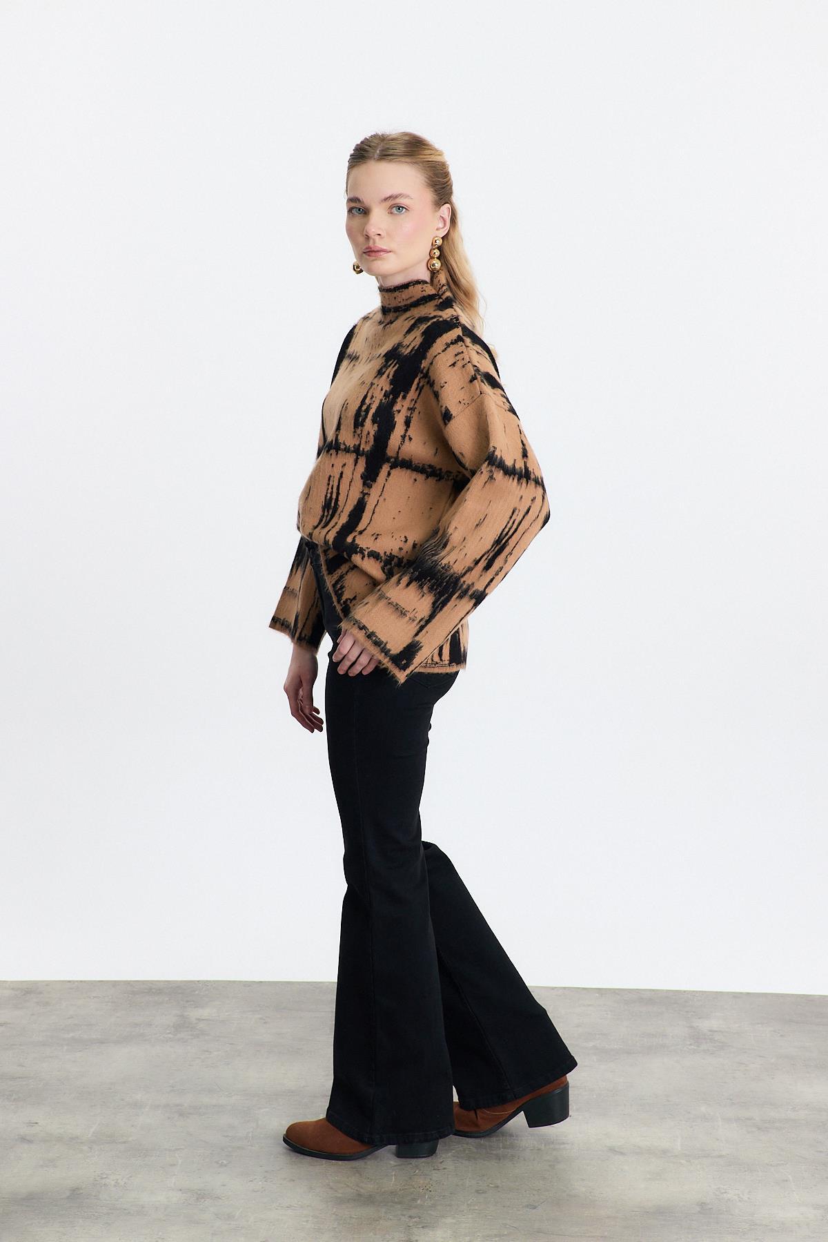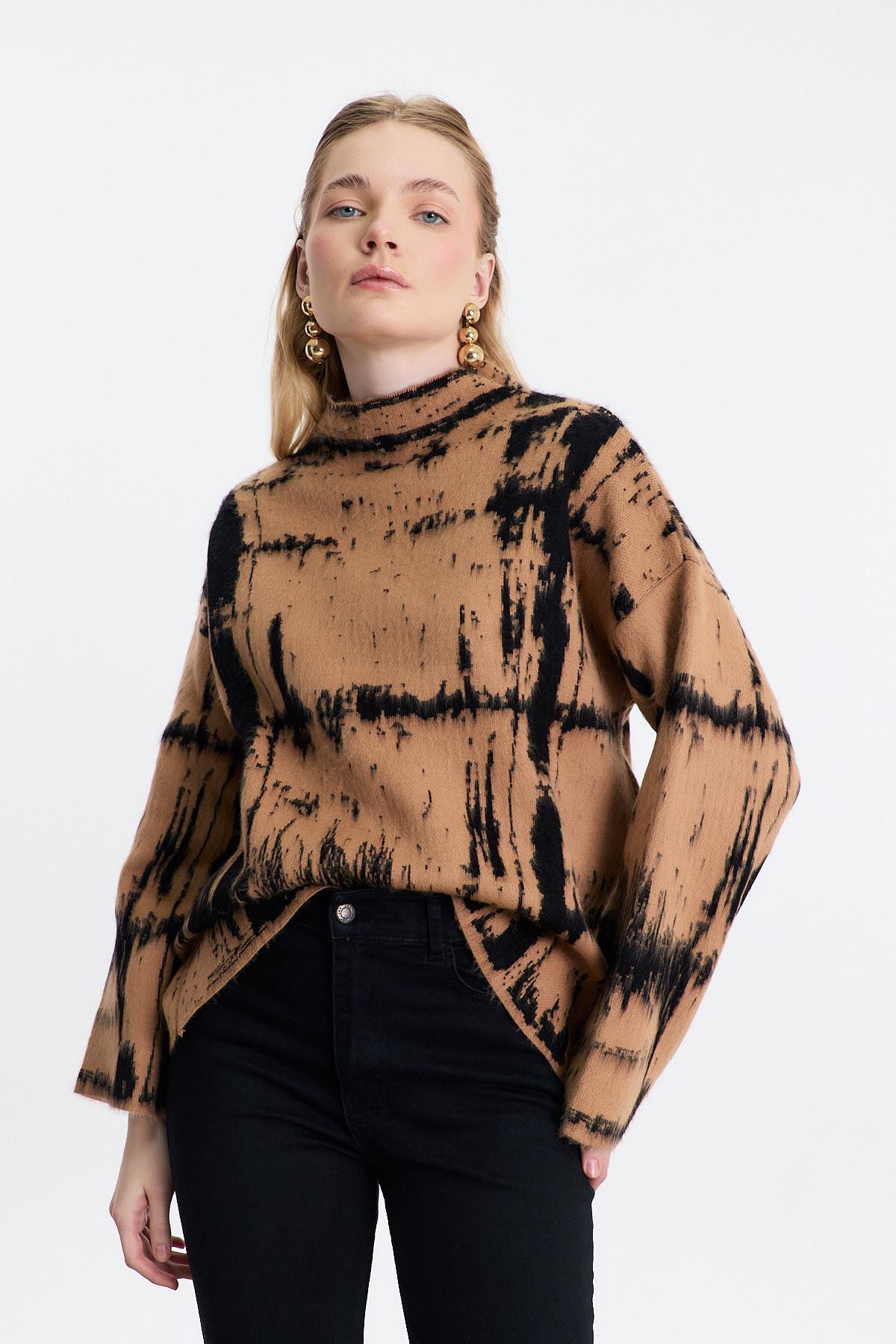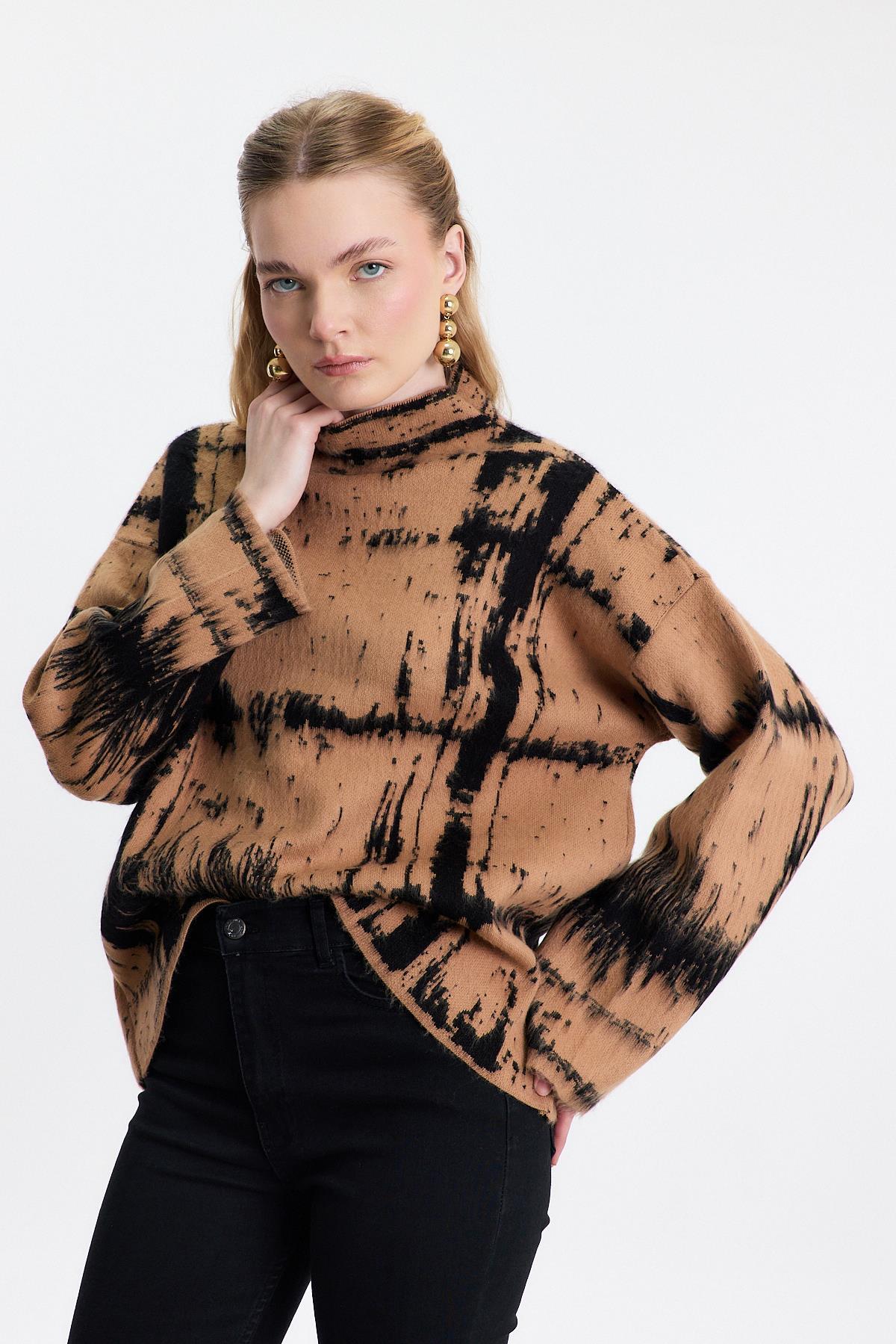 Camel-Siyah Yarım Boğaz Şardonlu Kazak 24378