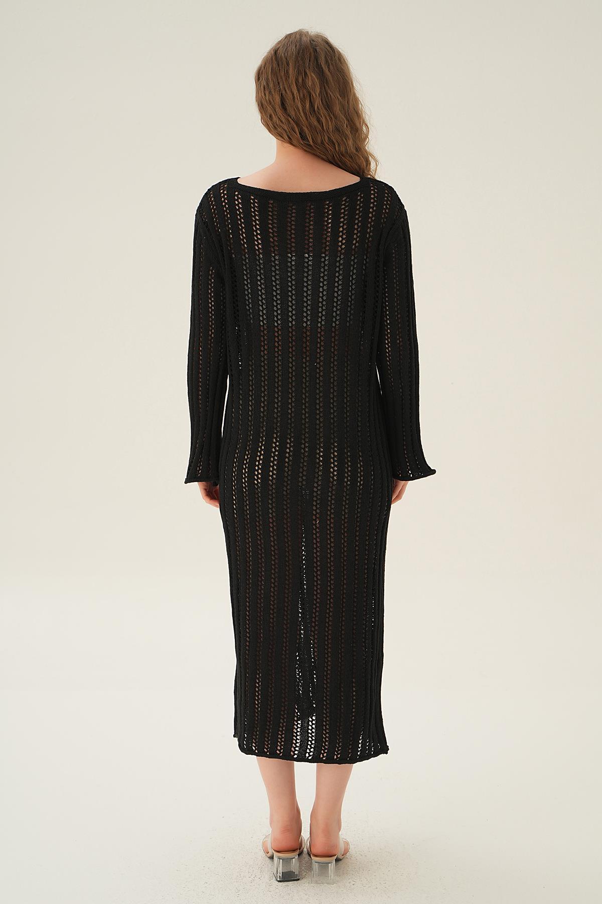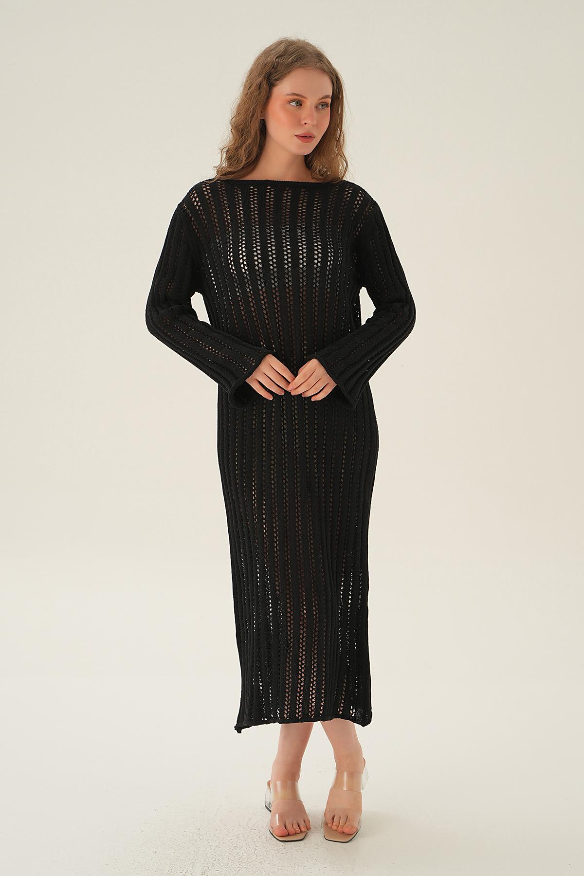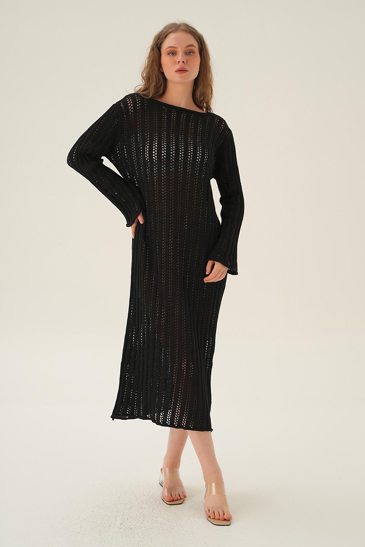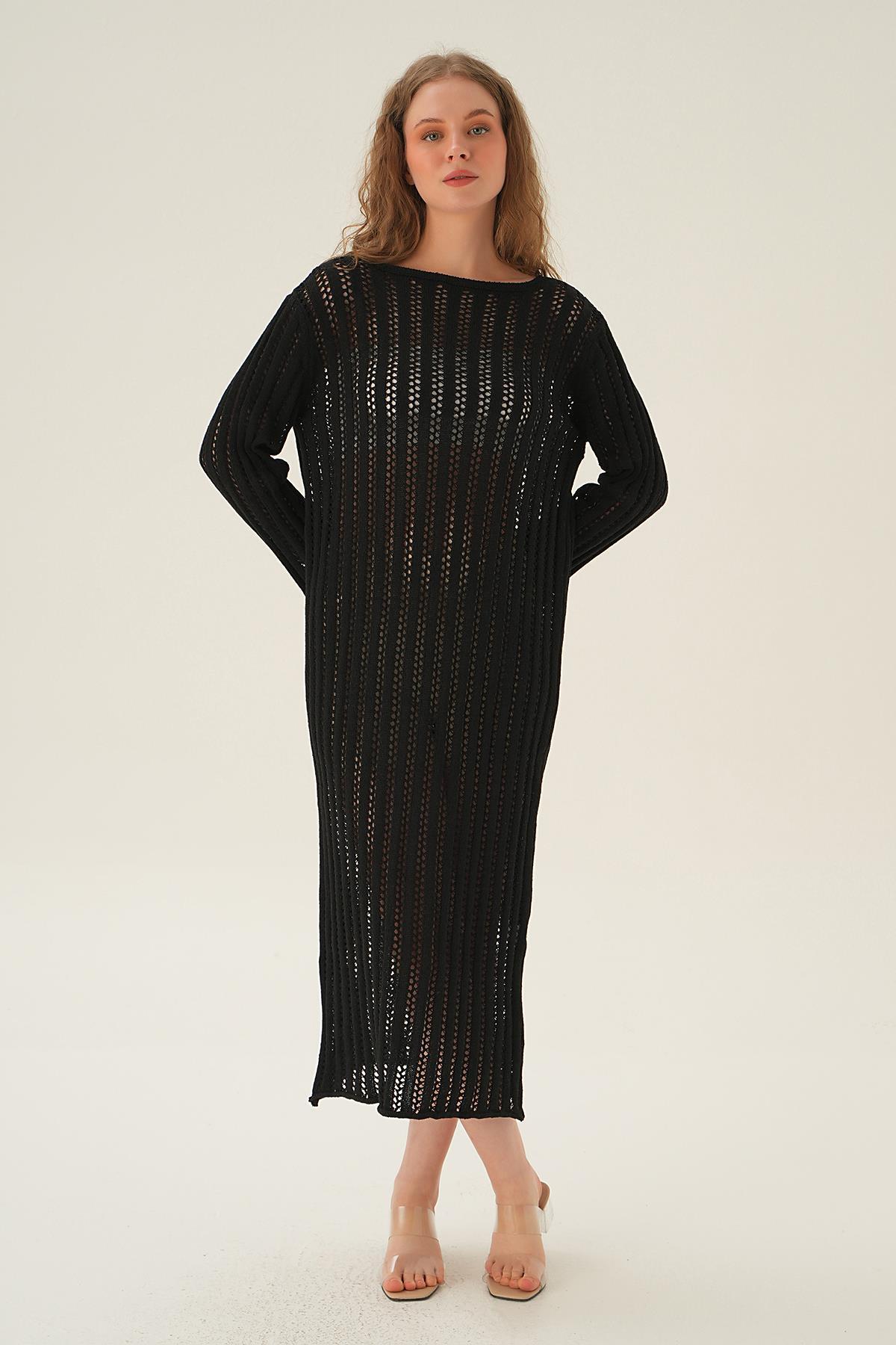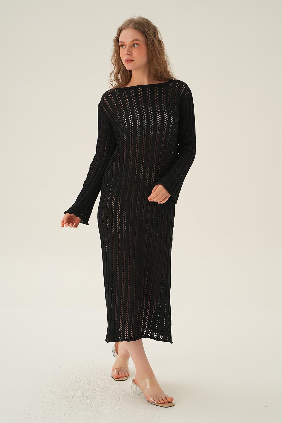 Siyah Uzun Kol Ajurlu Elbise 2442