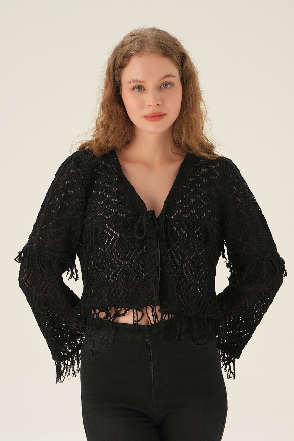 2444 Püskül Detay Hırka Siyah