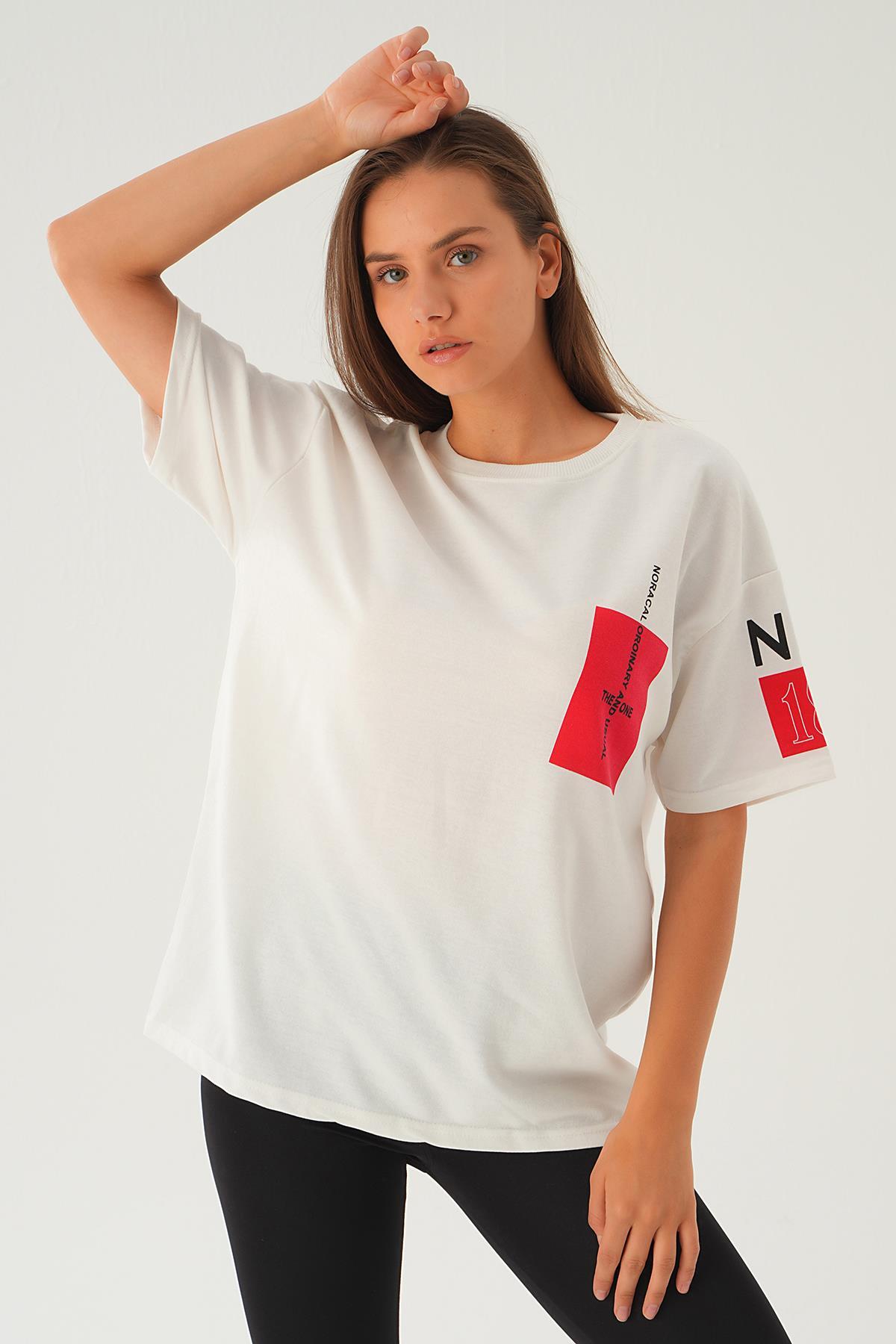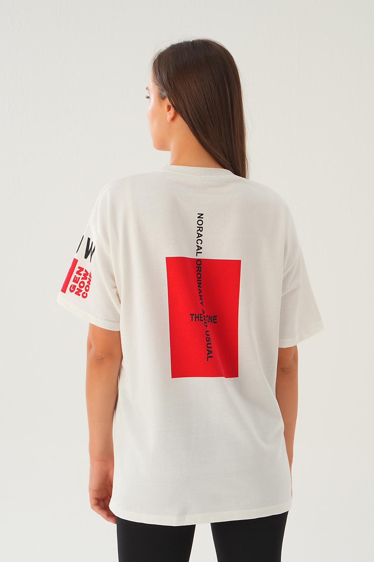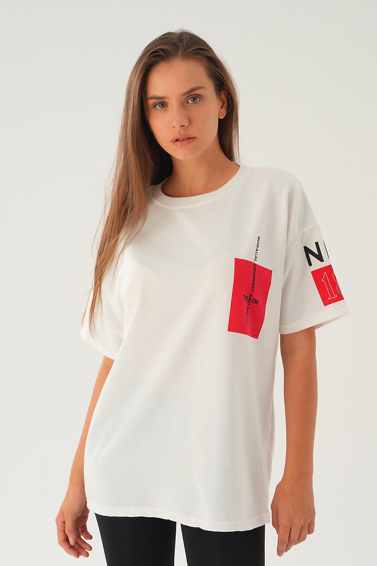 Beyaz Arka Ön Yazı Baskılı Tişört 2447