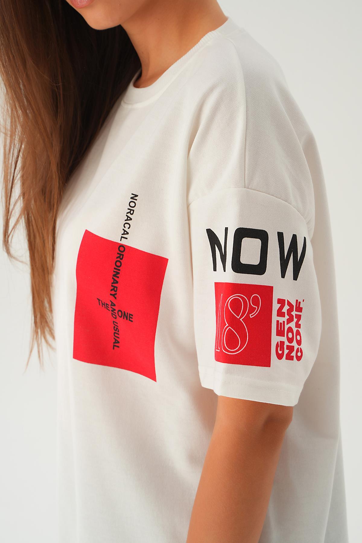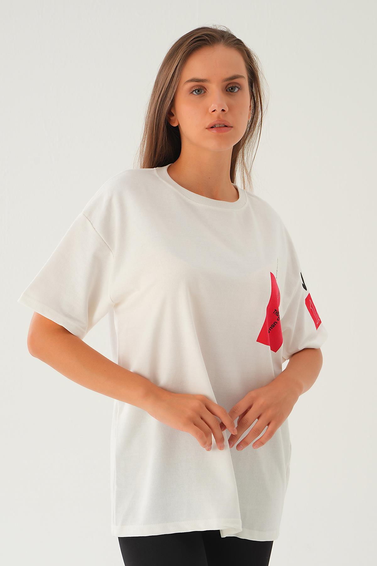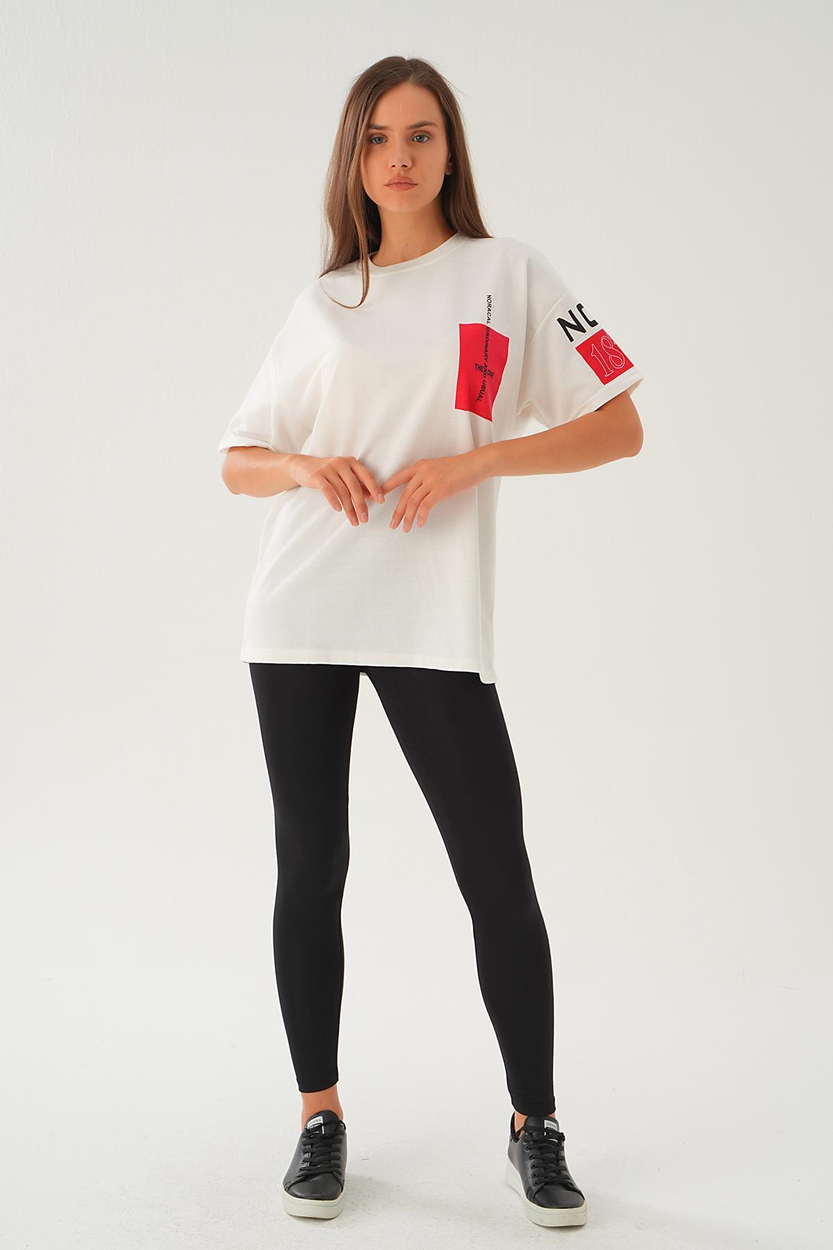 Beyaz Arka Ön Yazı Baskılı Tişört 2447