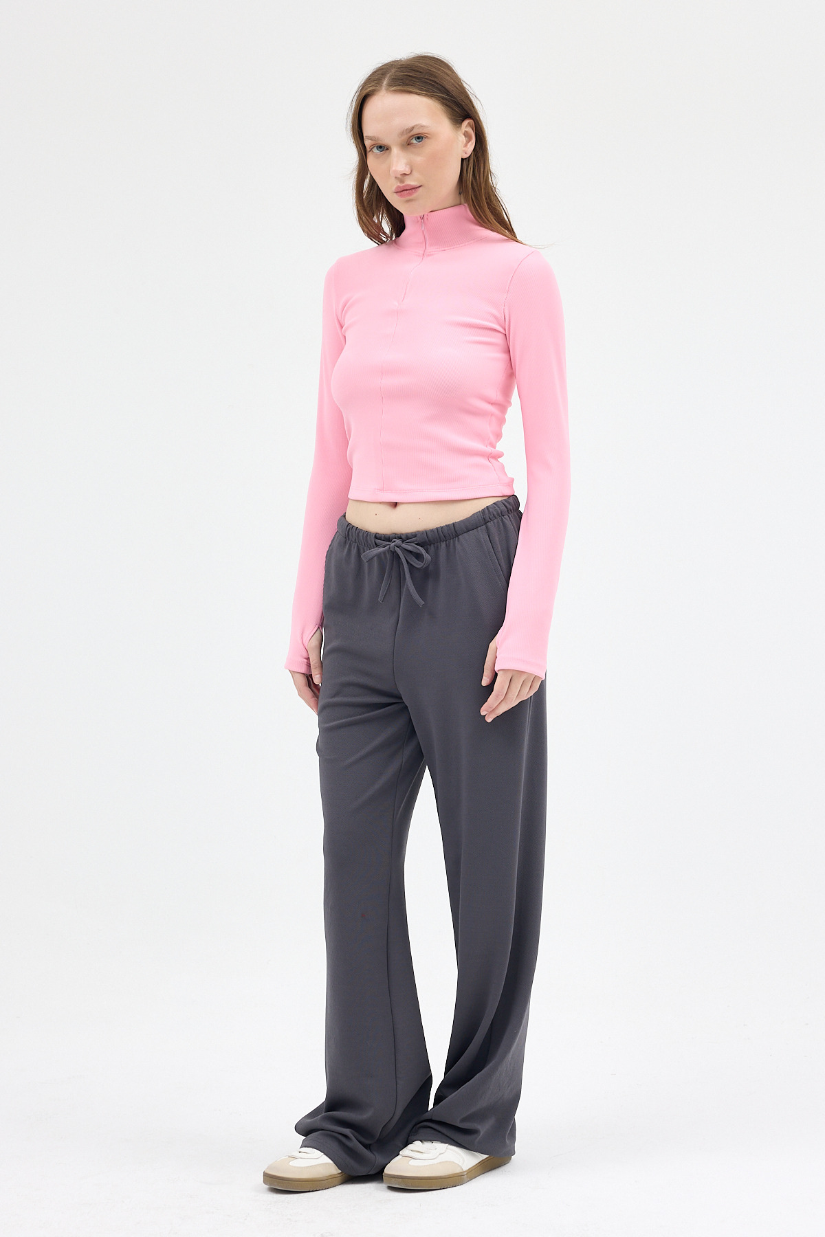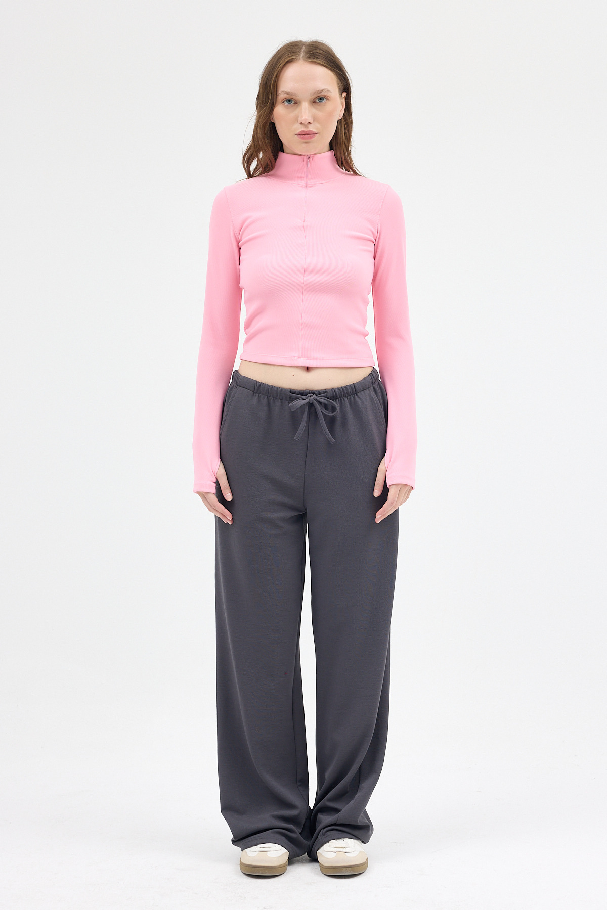 Şeker Pembe Yarım Balıkçı Yaka Fermuarlı Body 2447