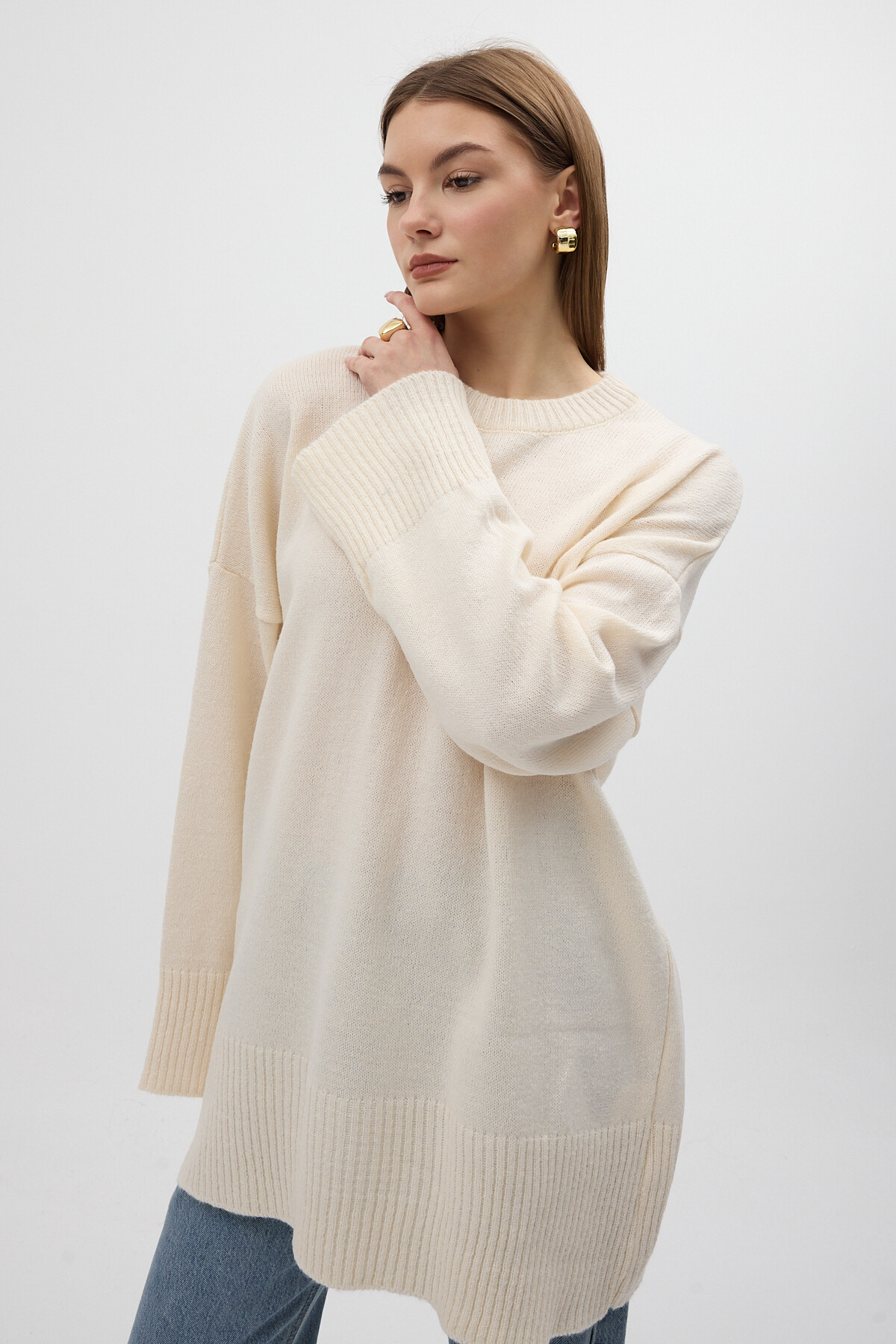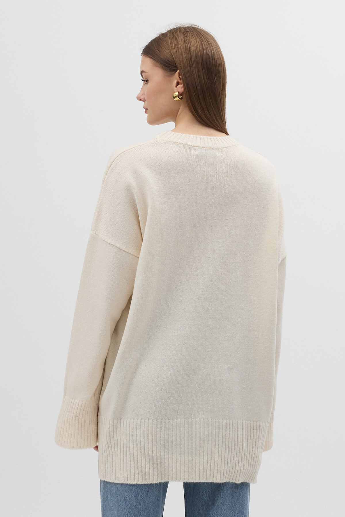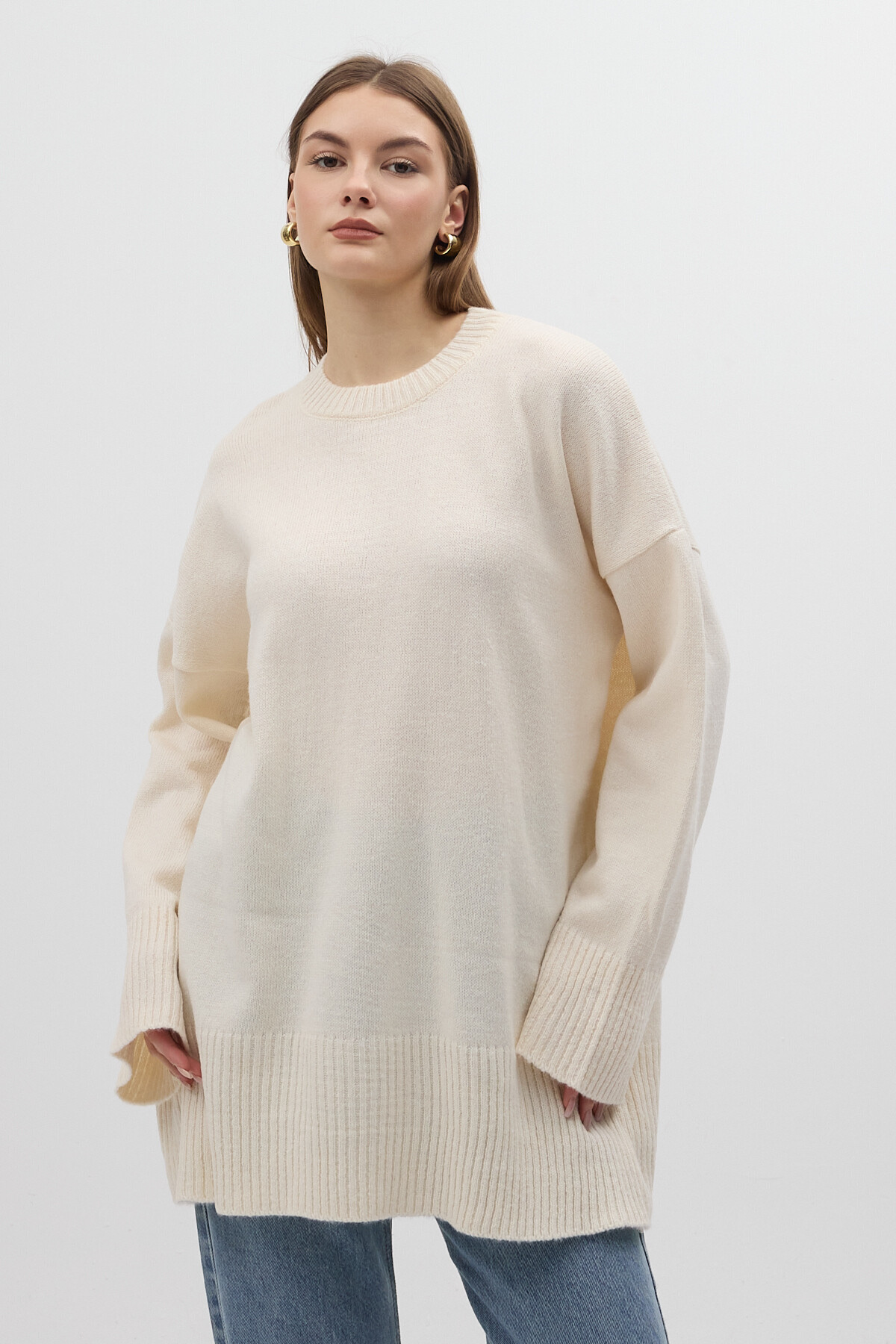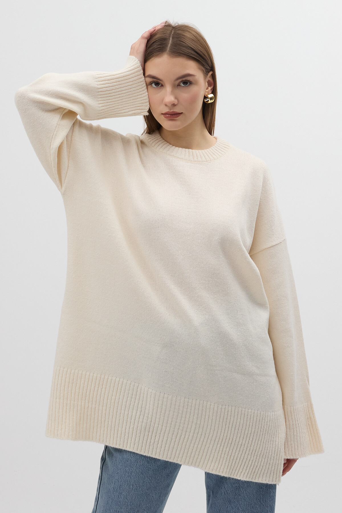 Taş Bisiklet Yaka Oversize Kadın Kazak 2450