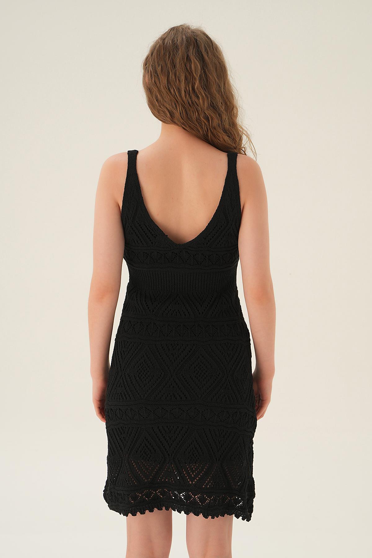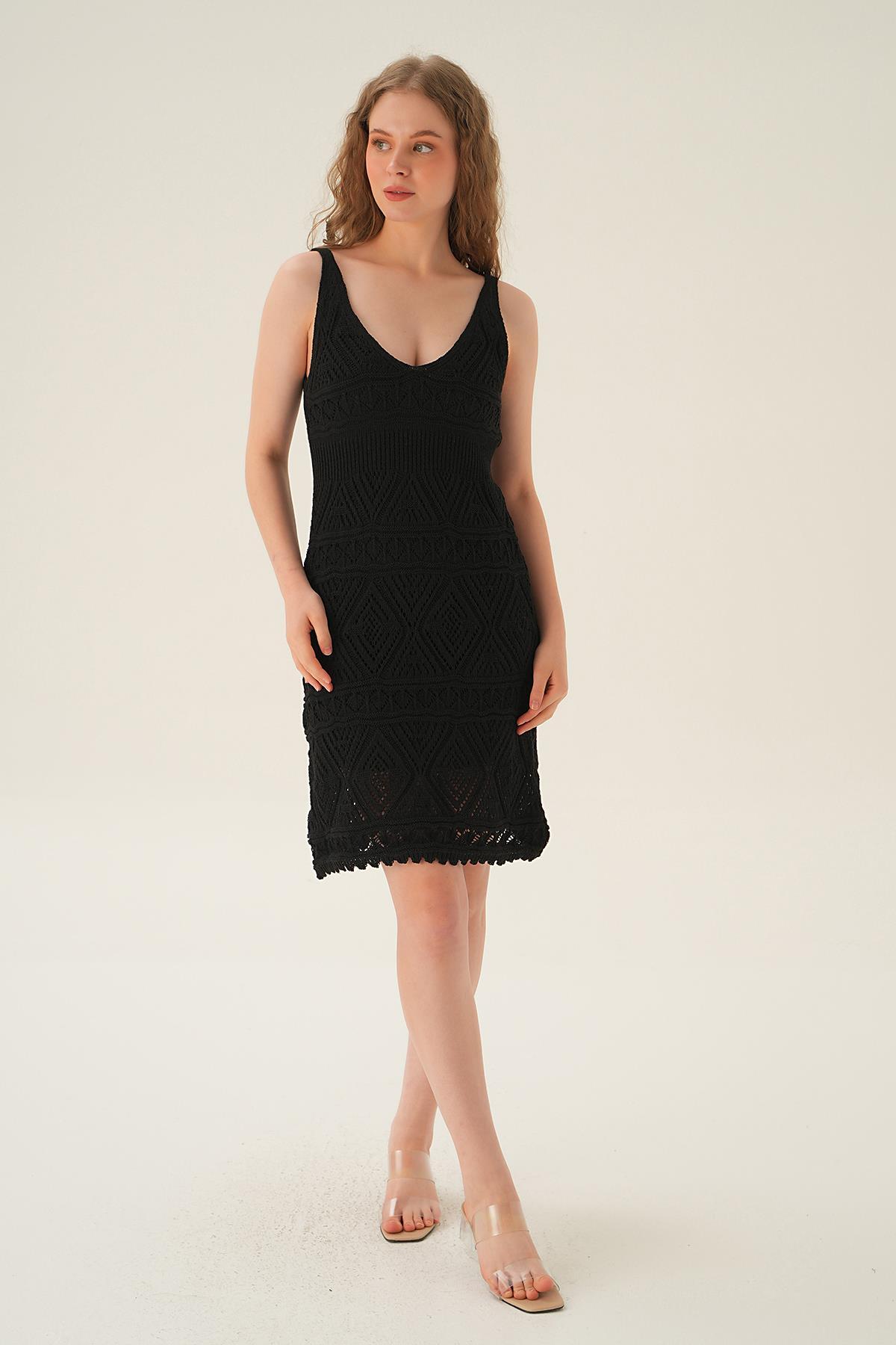 Siyah Dantelli Kemer Detay Elbise 35518 - RAYS Siyah Dantelli Kemer Detay Elbise 35518 - RAYS (1)