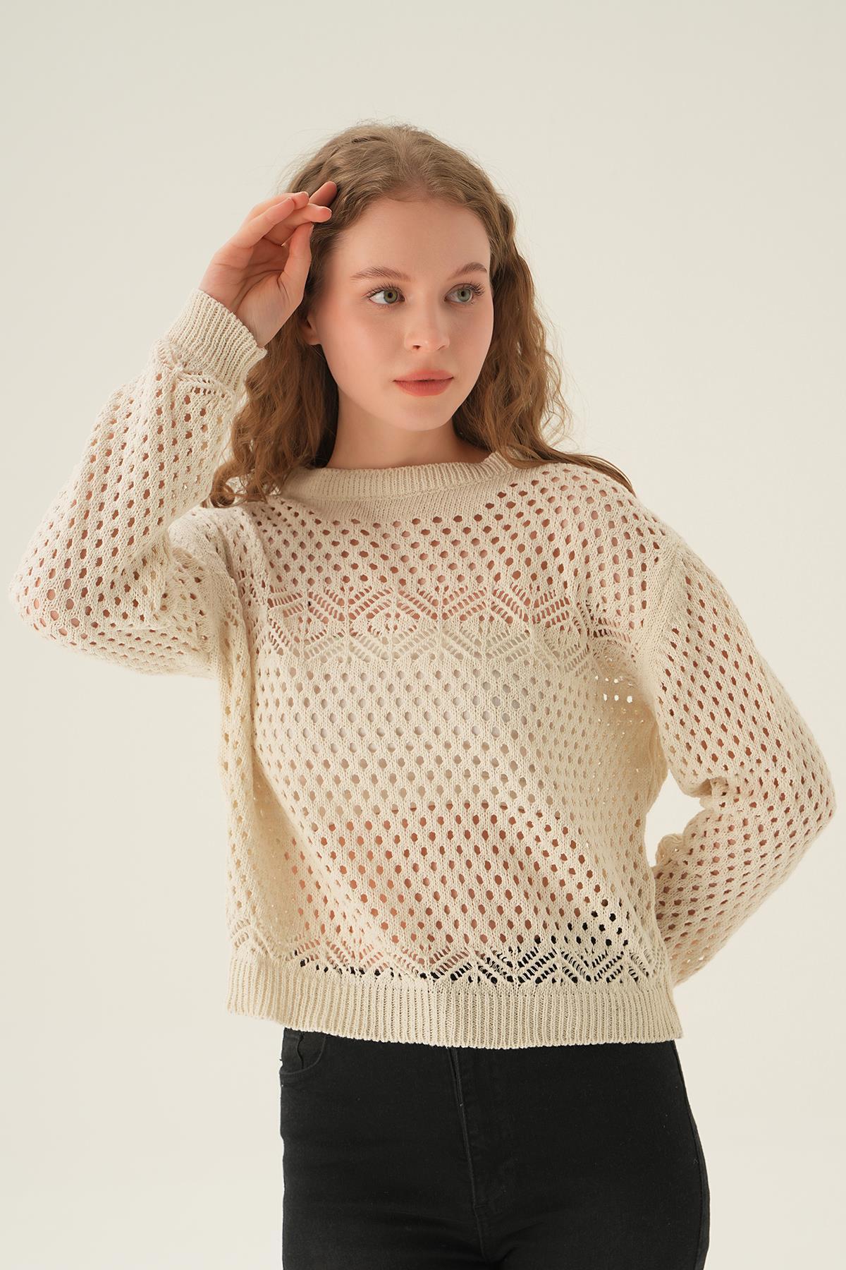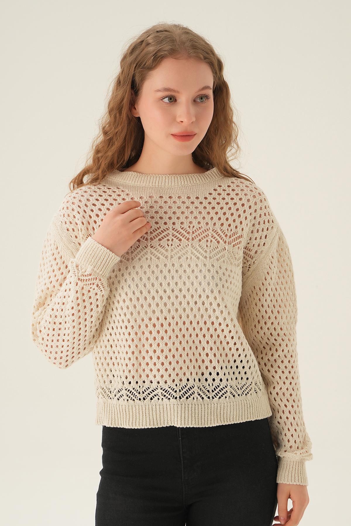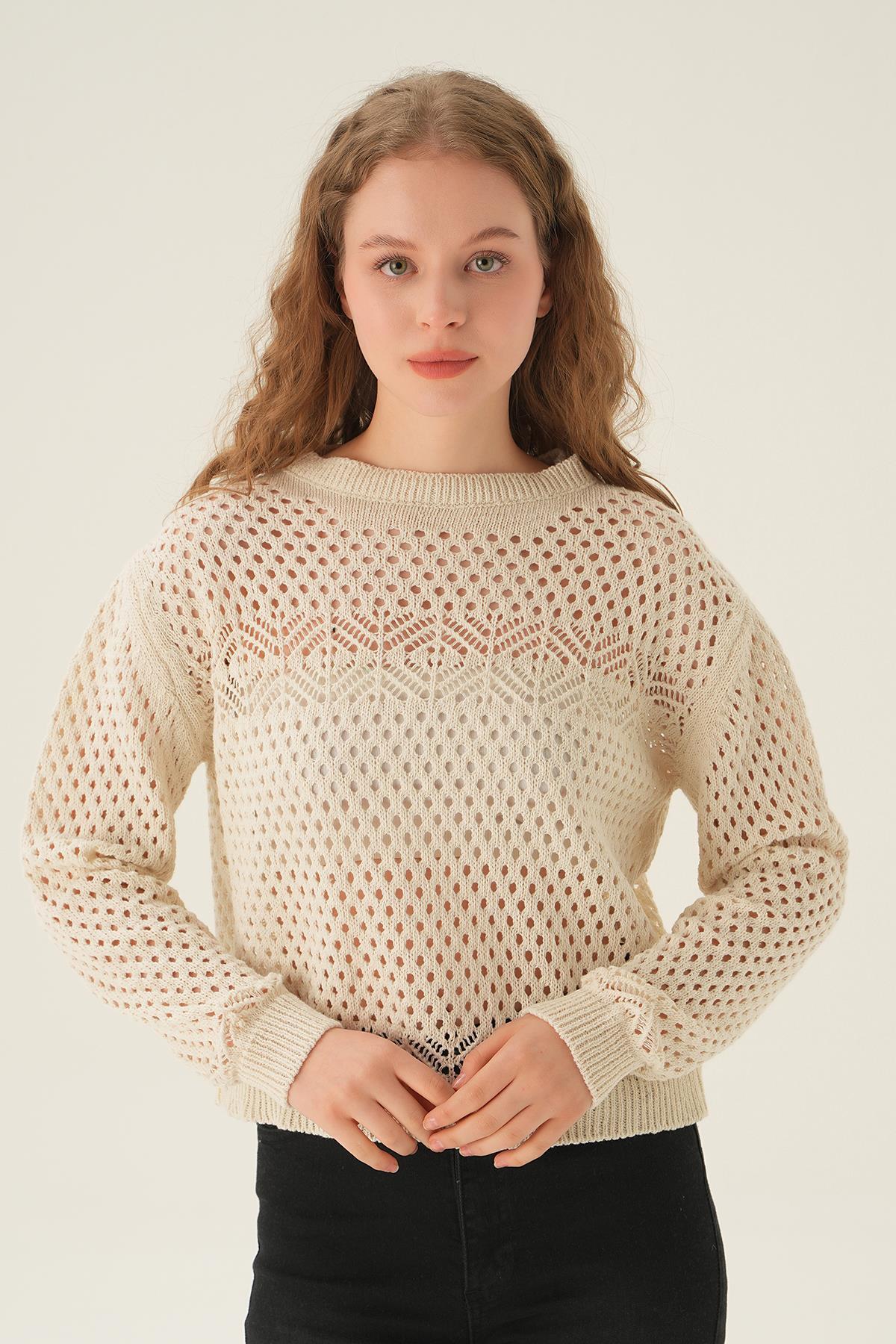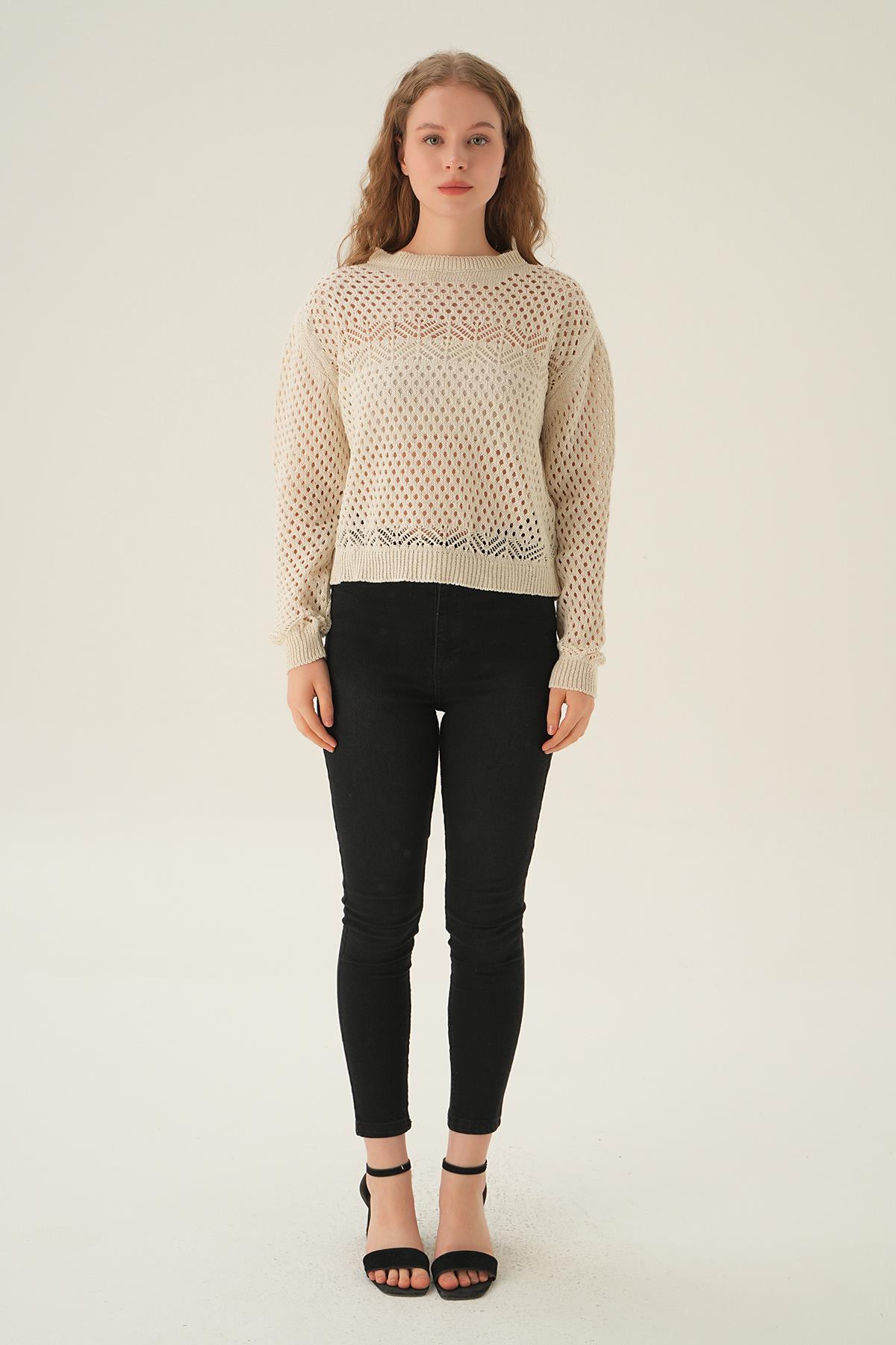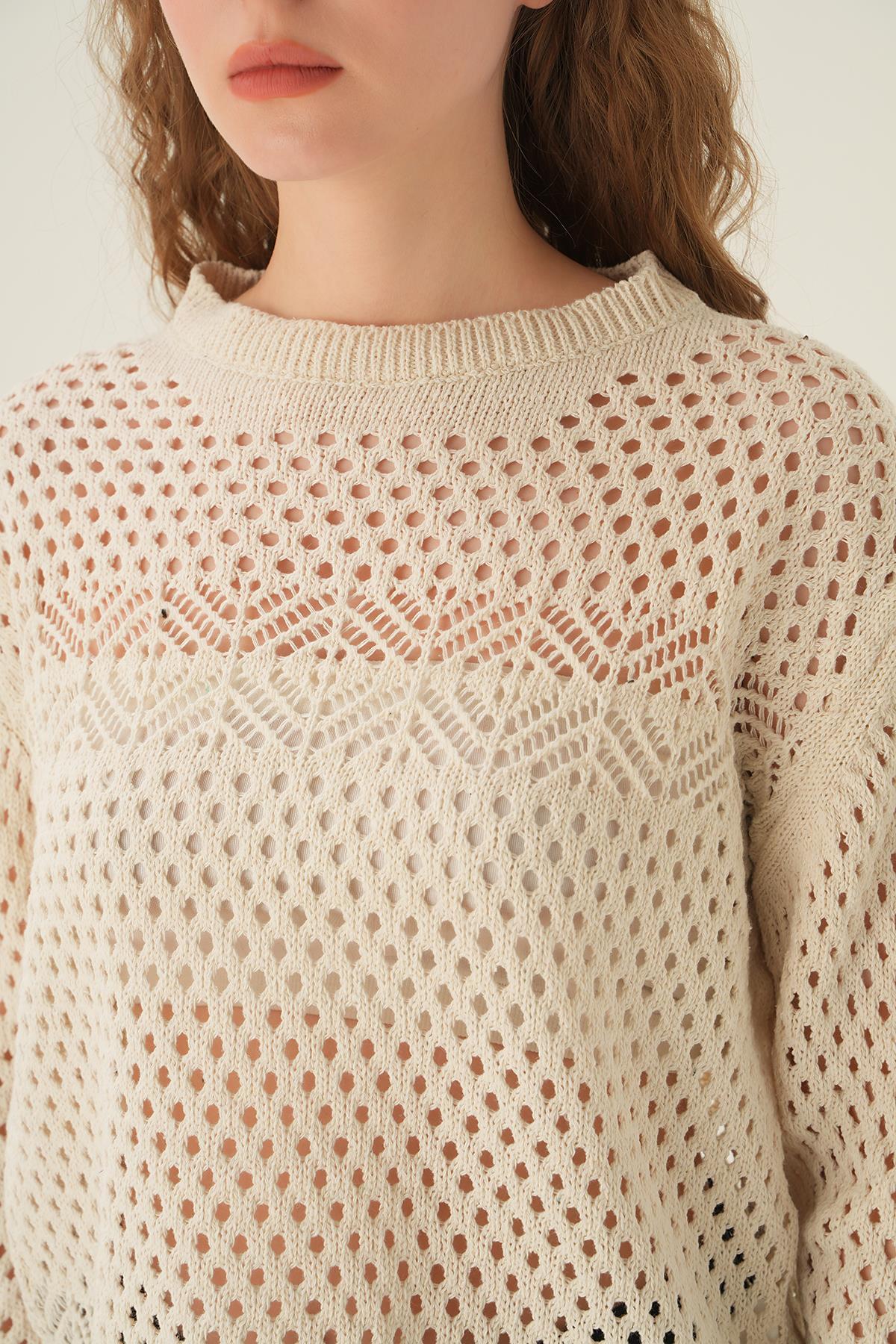 Natural Bisiklet Yaka Ajurlu Bluz 2458