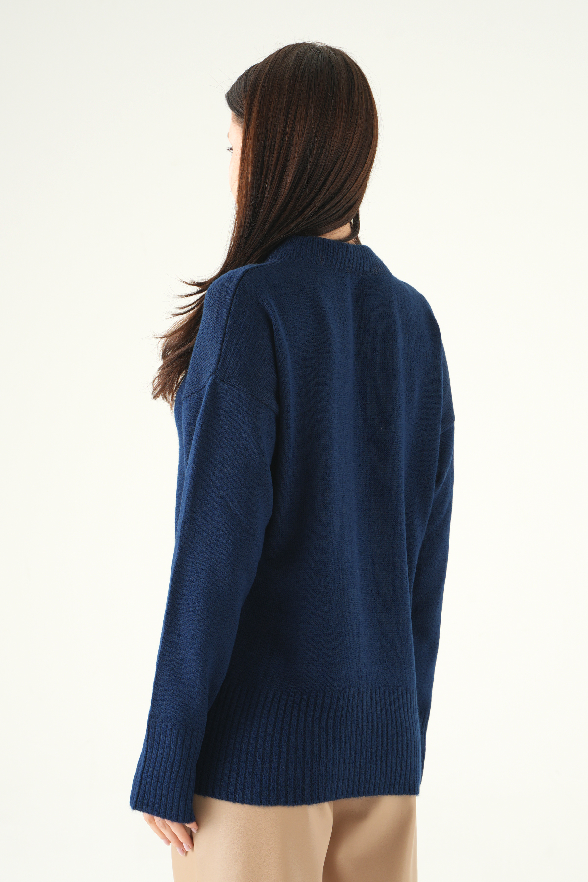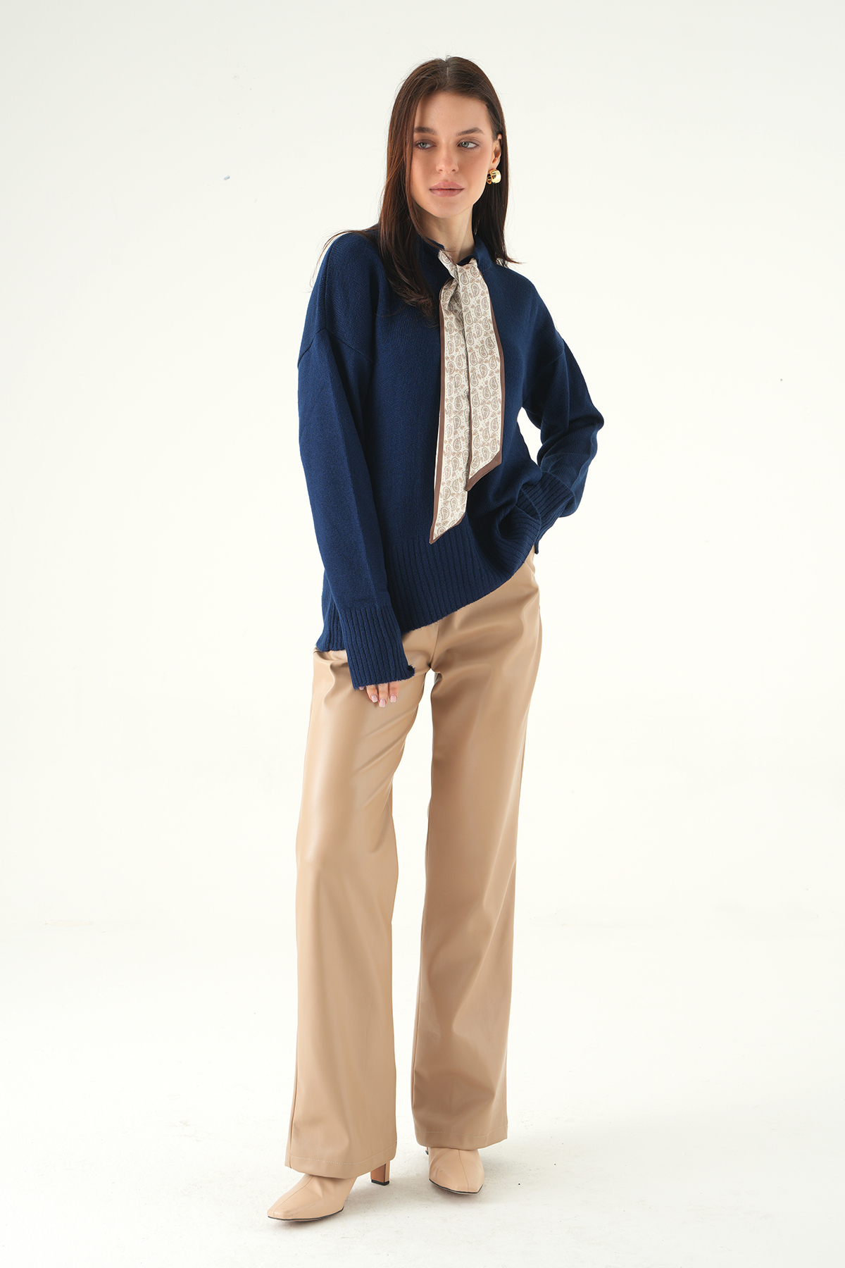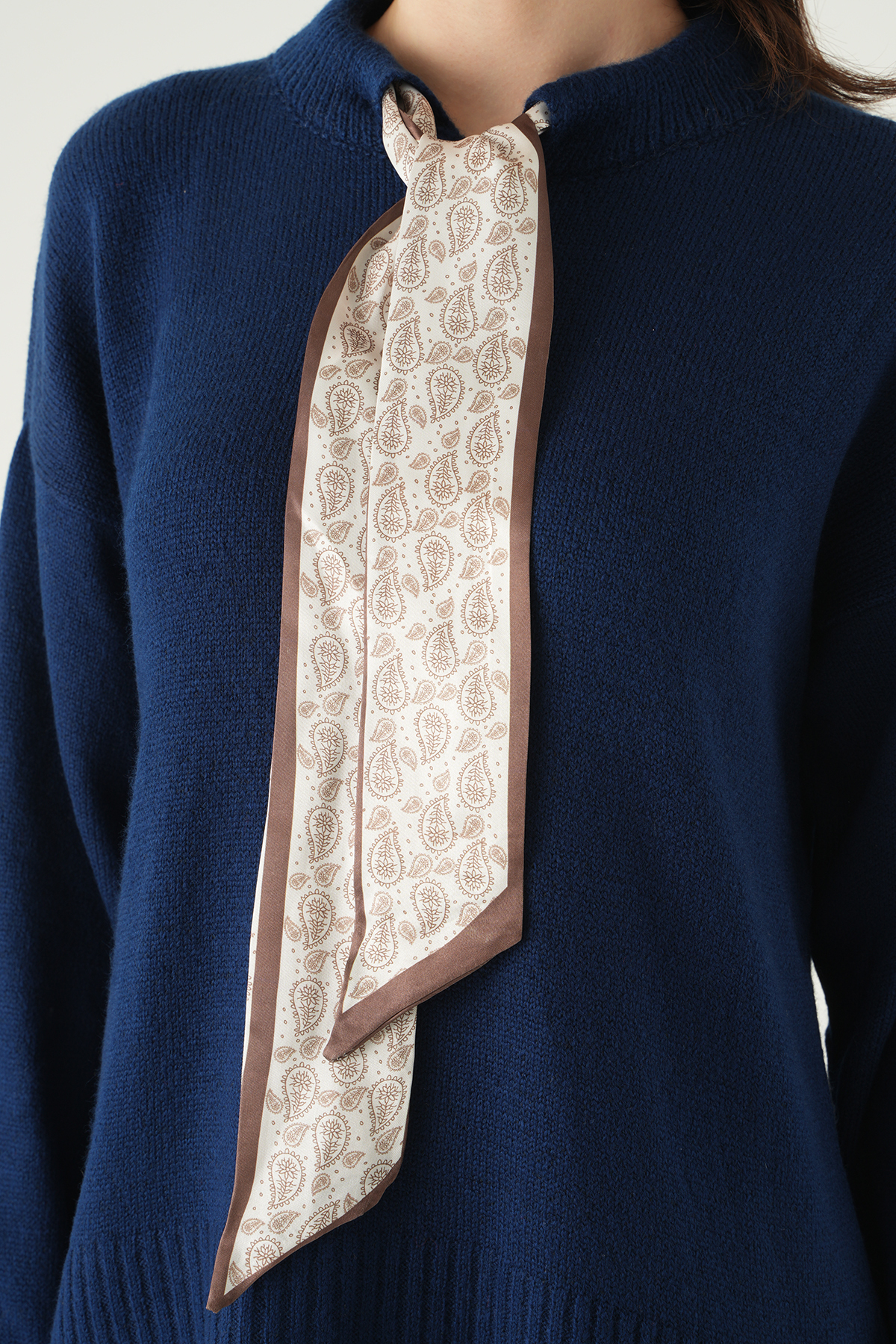 Laci Fular Detaylı Dik Yaka Kadın Triko Kazak 2465
