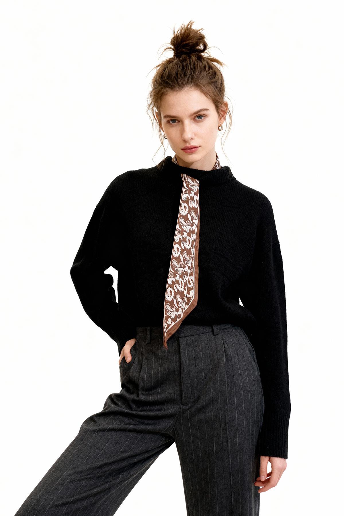 Siyah Bisiklet Yaka Oversize Kadın Kazak 2450