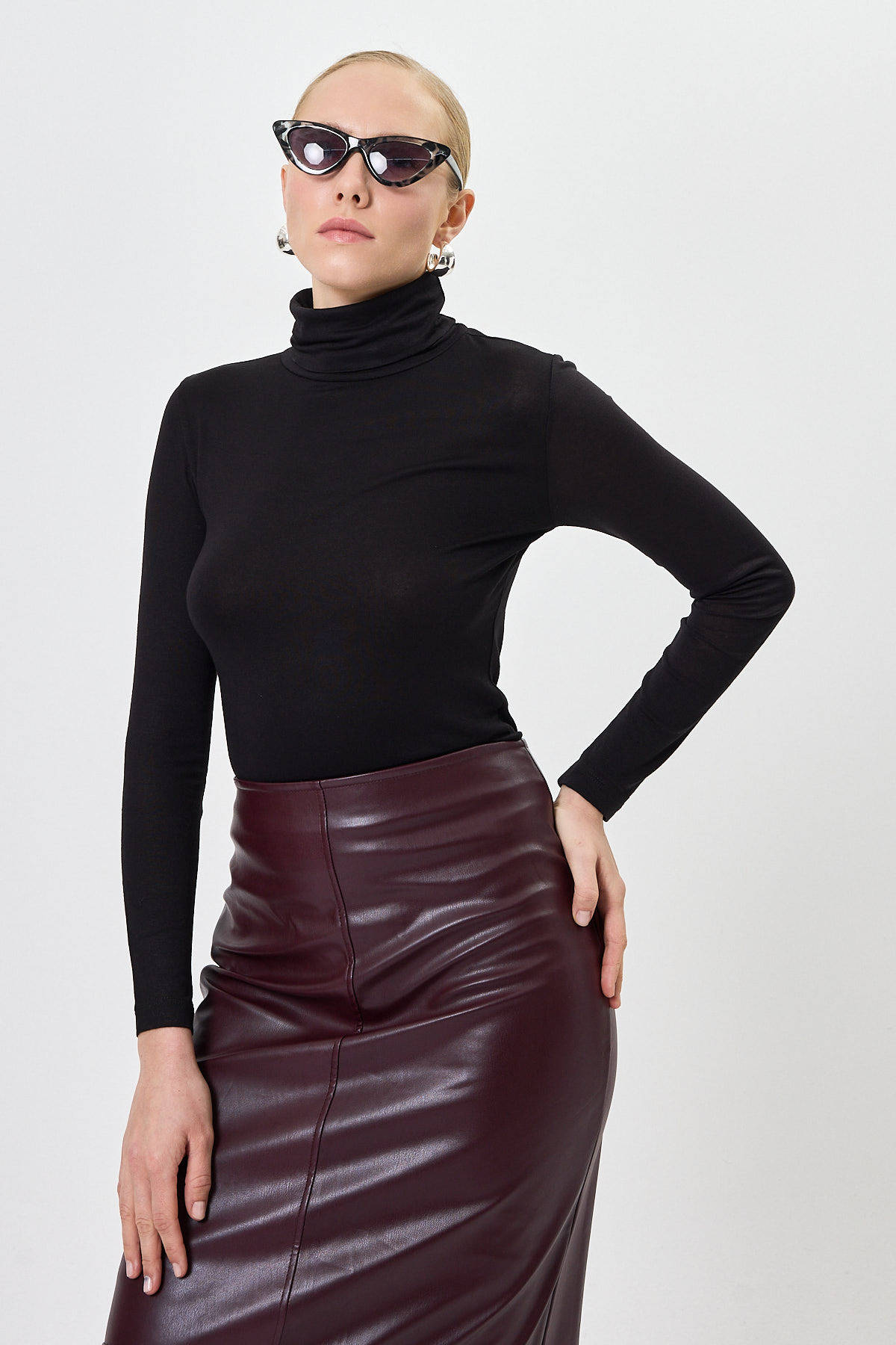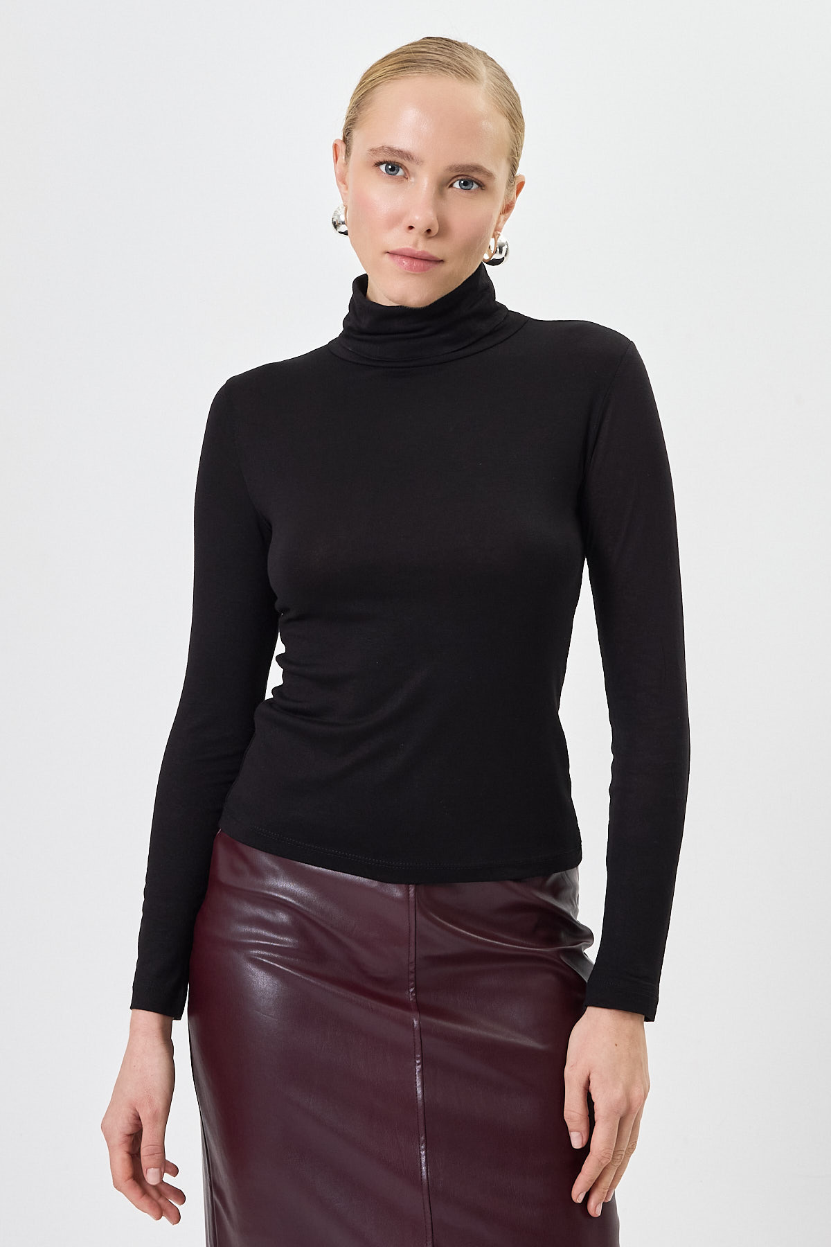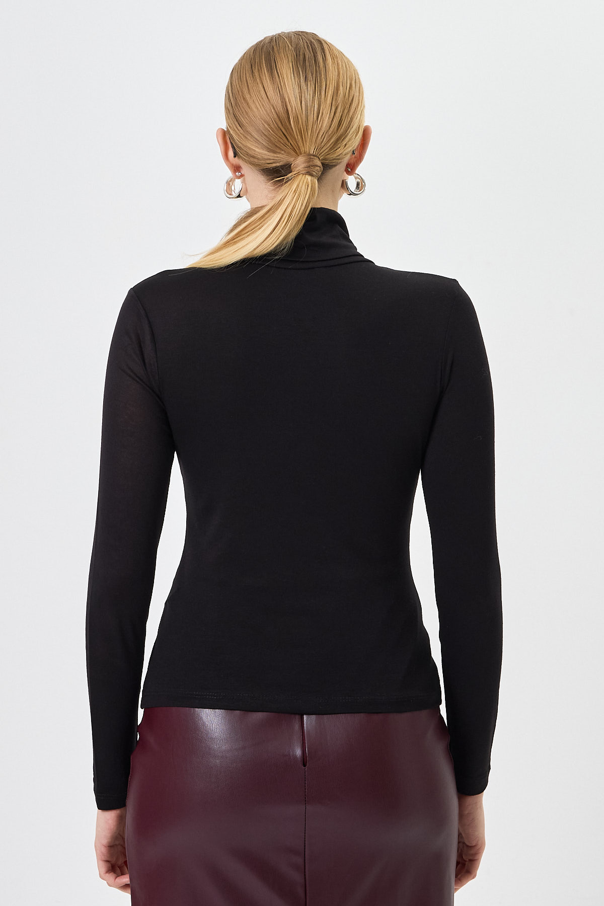 Siyah Balıkçı Yaka Uzun Kollu Dar Kesim Bluz 2504