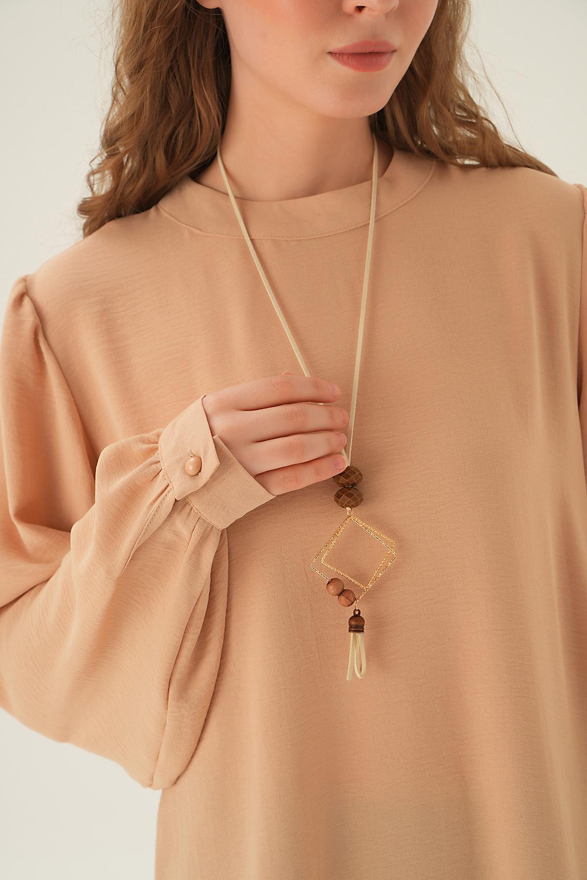 Acı Kahve Gömlek Yaka Taşlı Kol Detay Tunik 8274