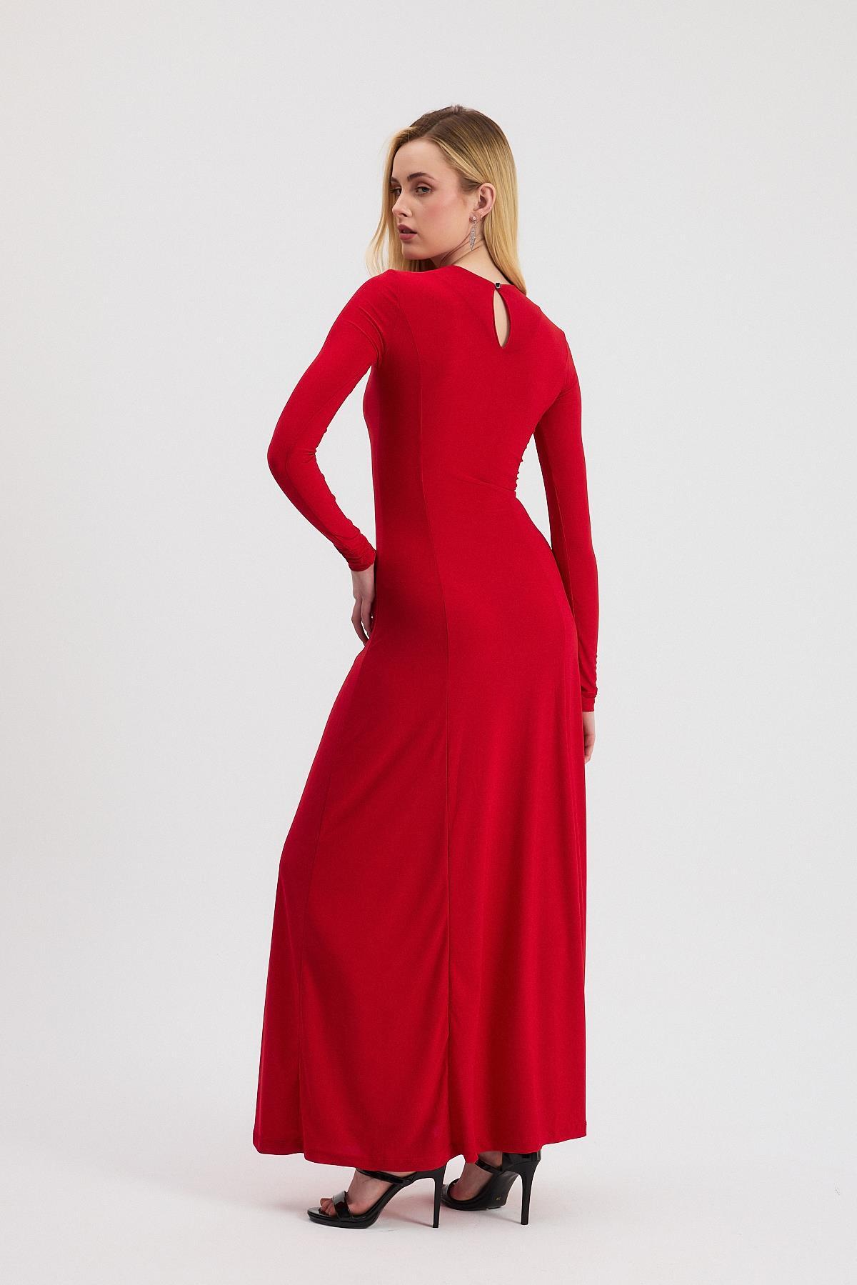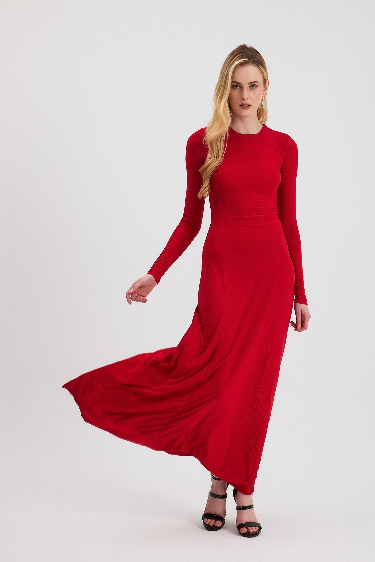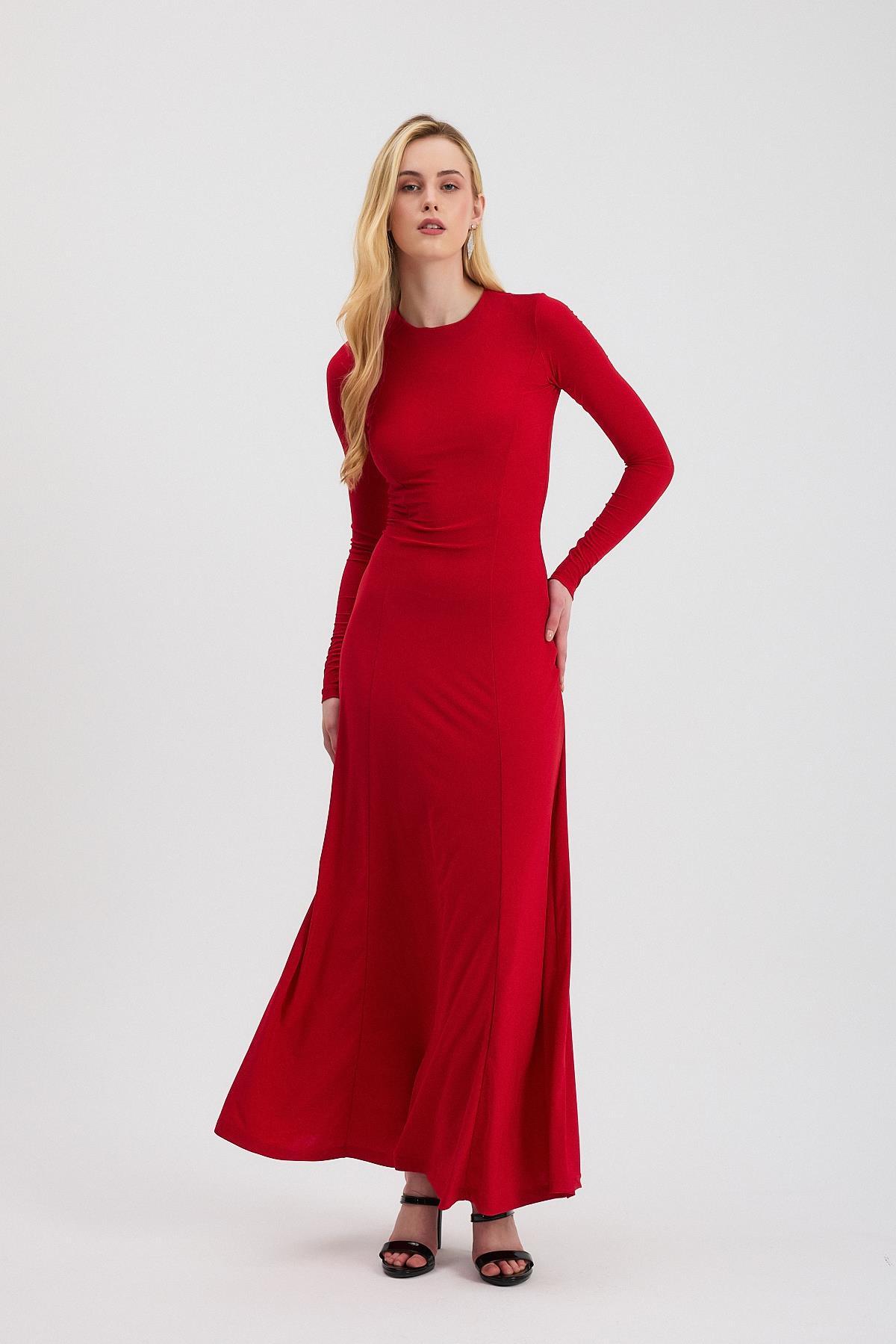 Kırmızı Bisiklet Yaka Uzun Elbise 2510