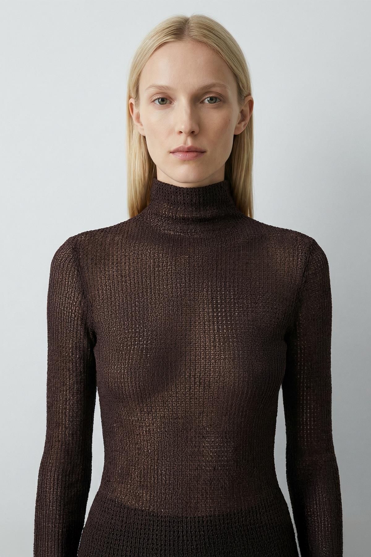 251131 Dik Yaka Uzun Kol Bluz Kahve