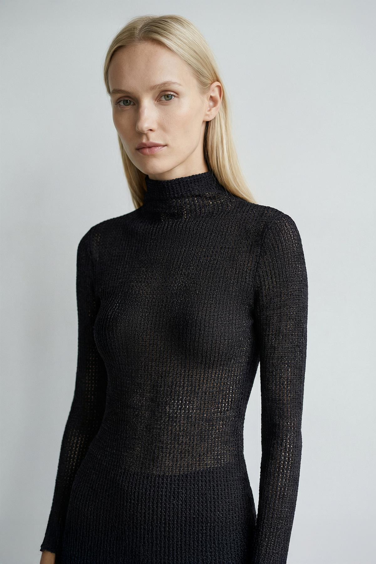 251131 Dik Yaka Uzun Kol Bluz Siyah