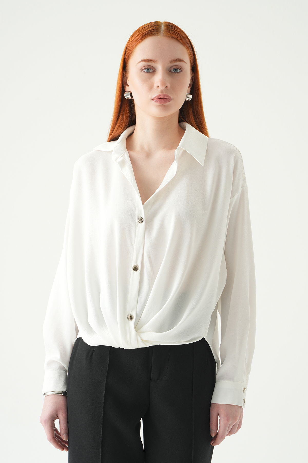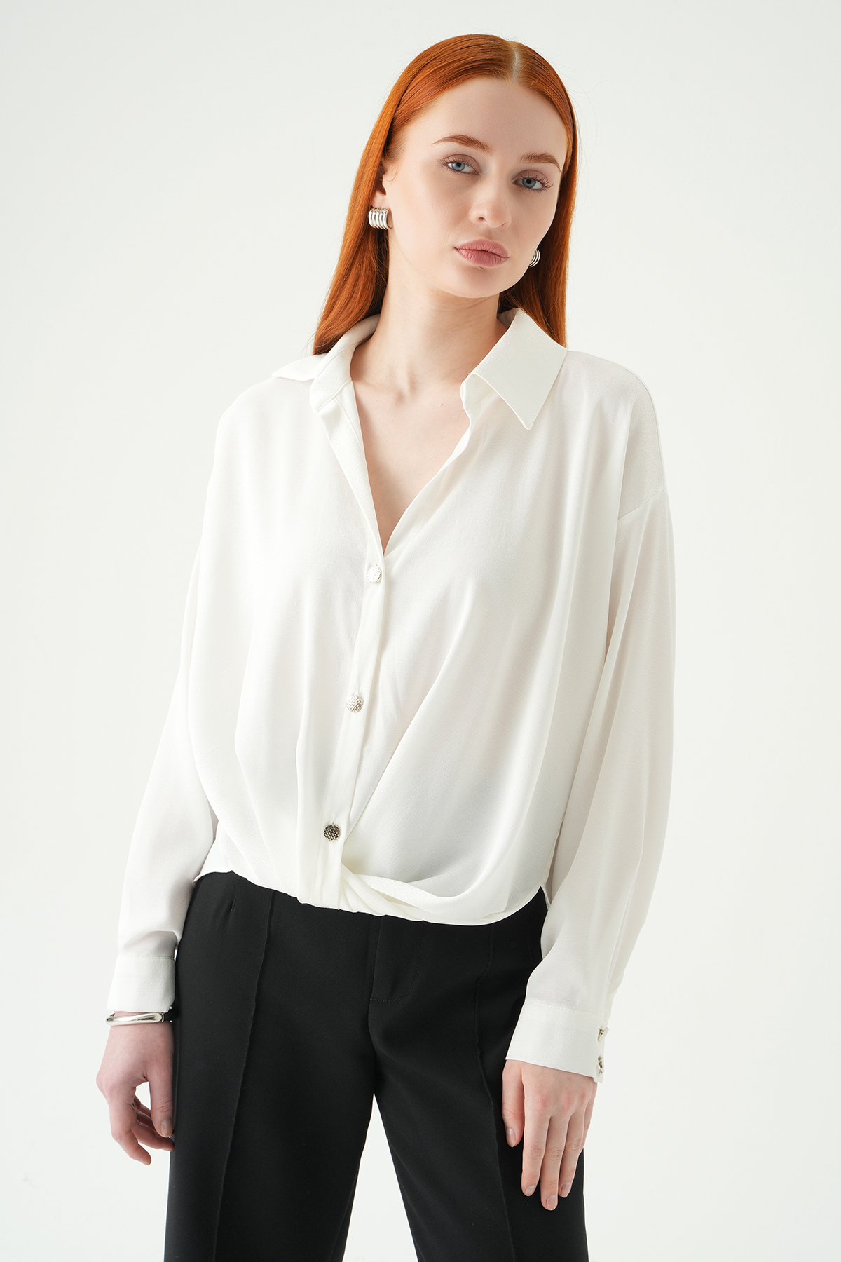Beyaz Püsküllü Gömlek 8225