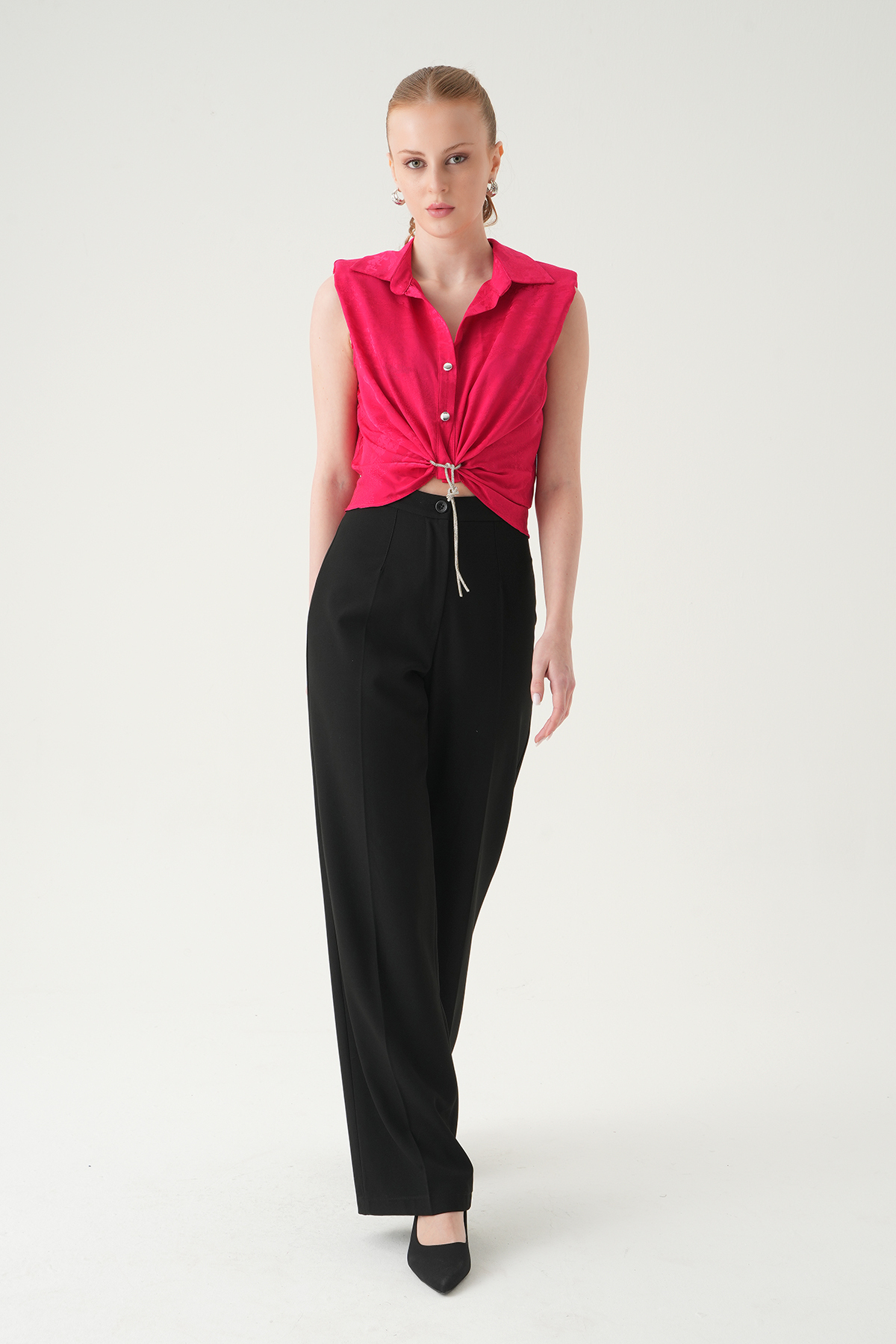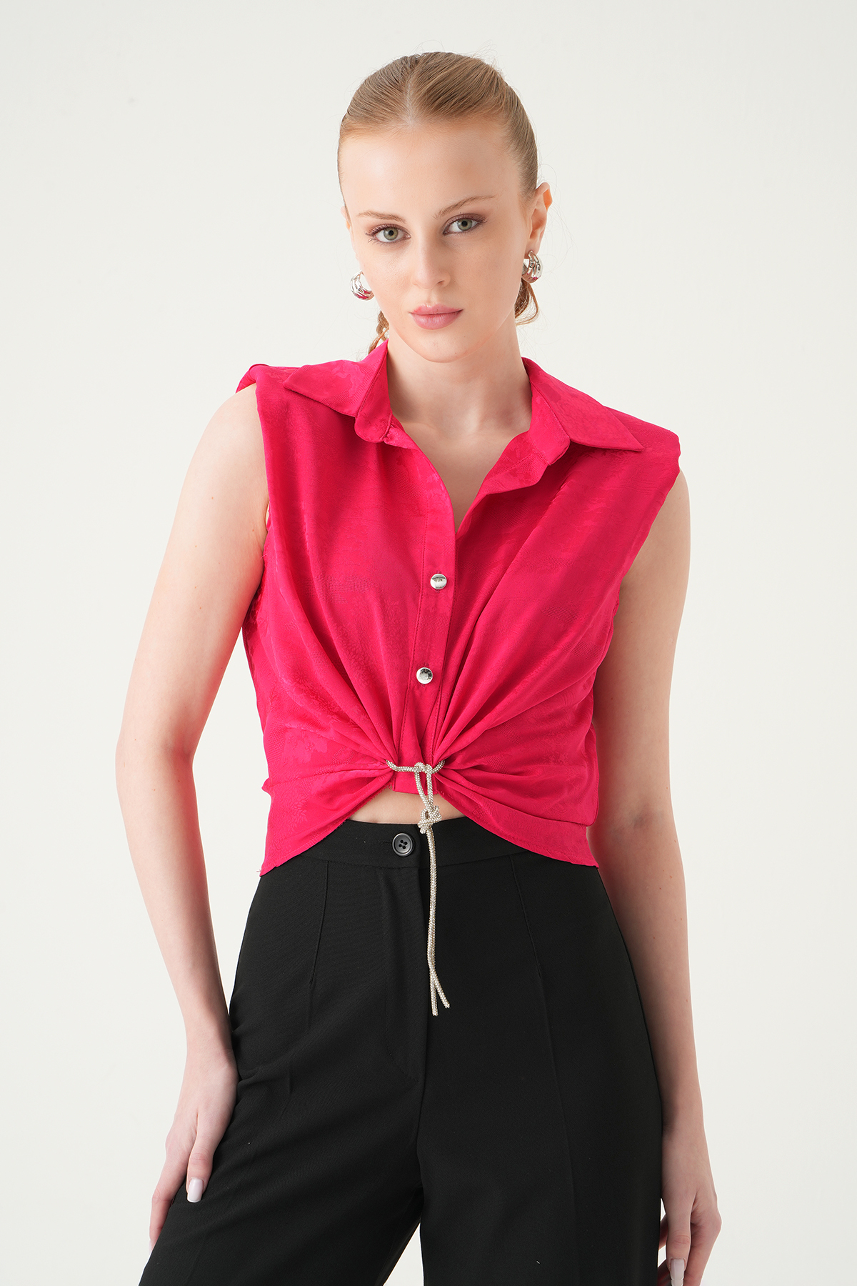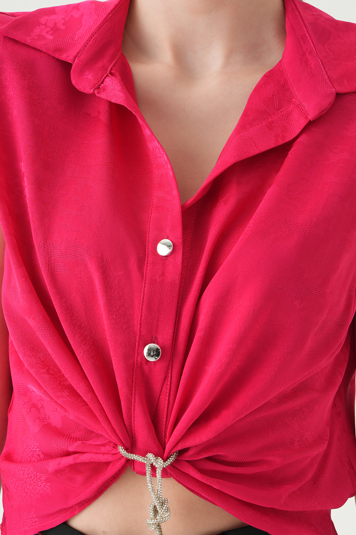 Fuşya Sıfır Kol Bağlamalı Gömlek 251166