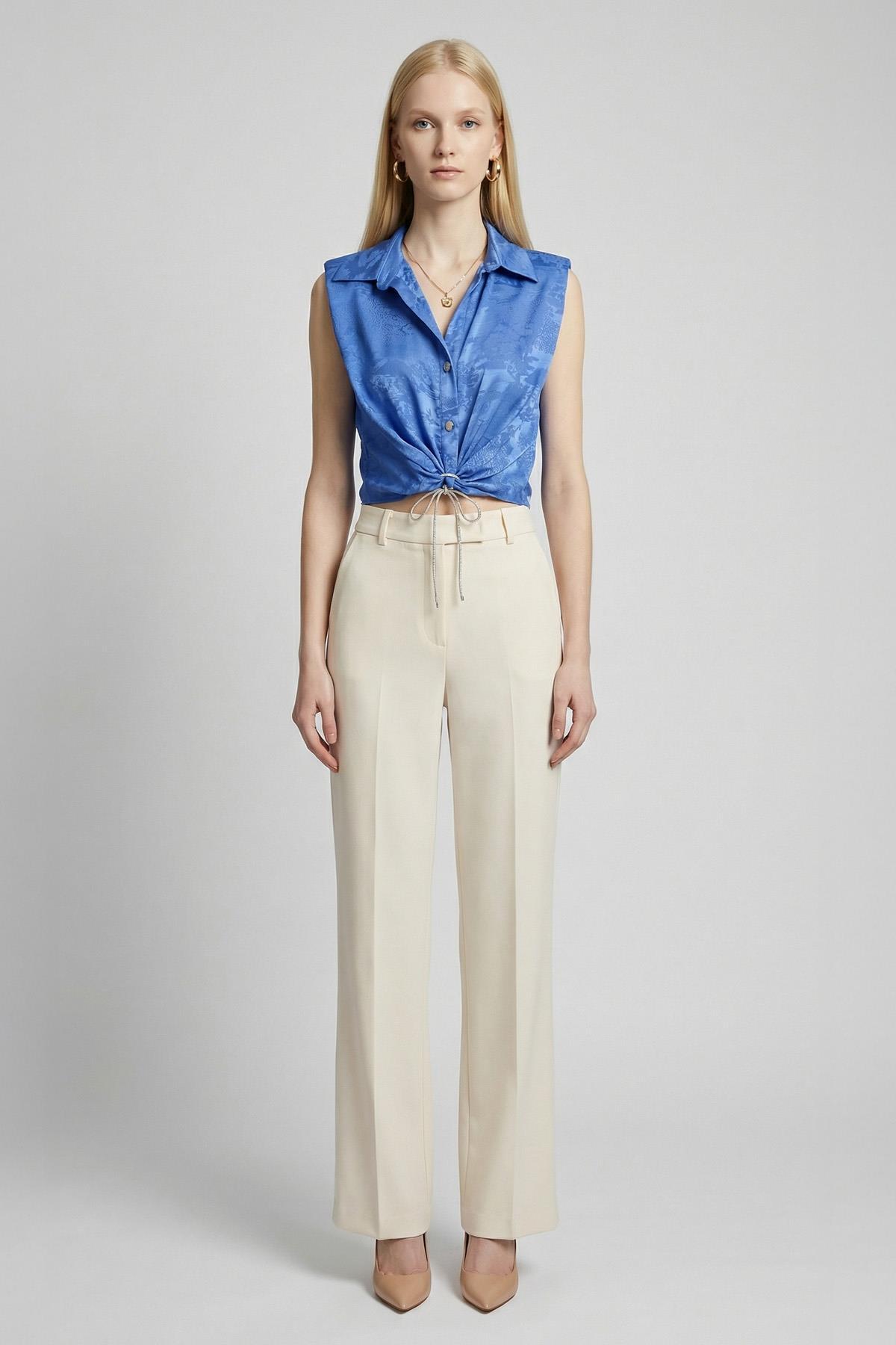 251166 Sıfır Kol Bağlamalı Gömlek Mavi