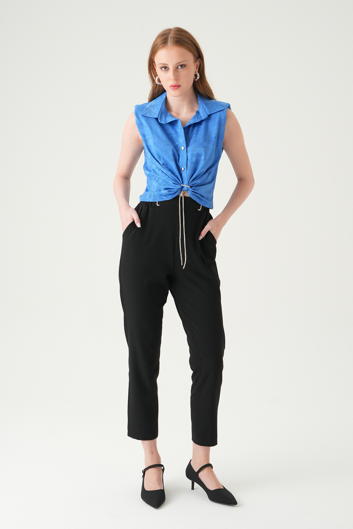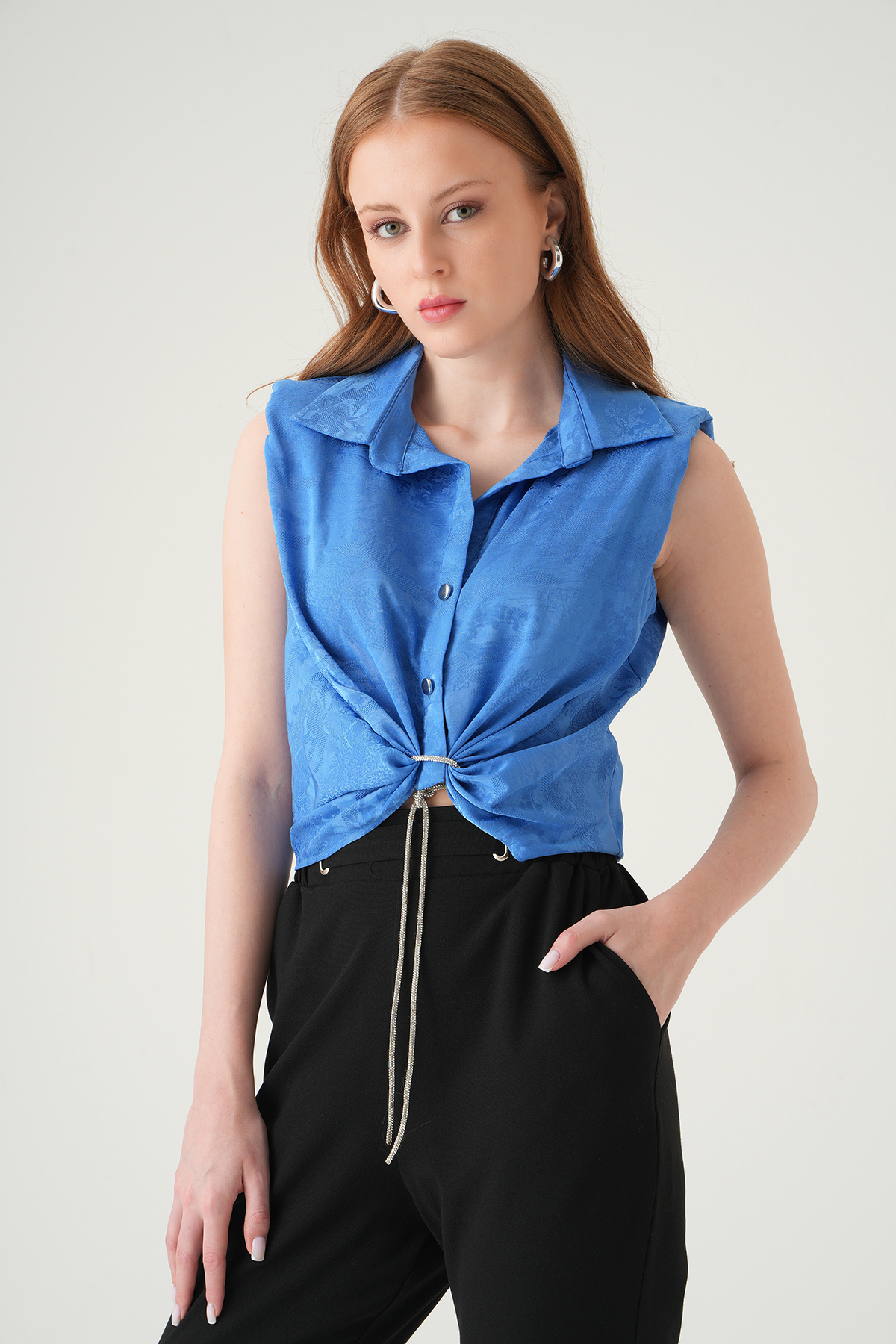 Mavi Sıfır Kol Bağlamalı Gömlek 251166