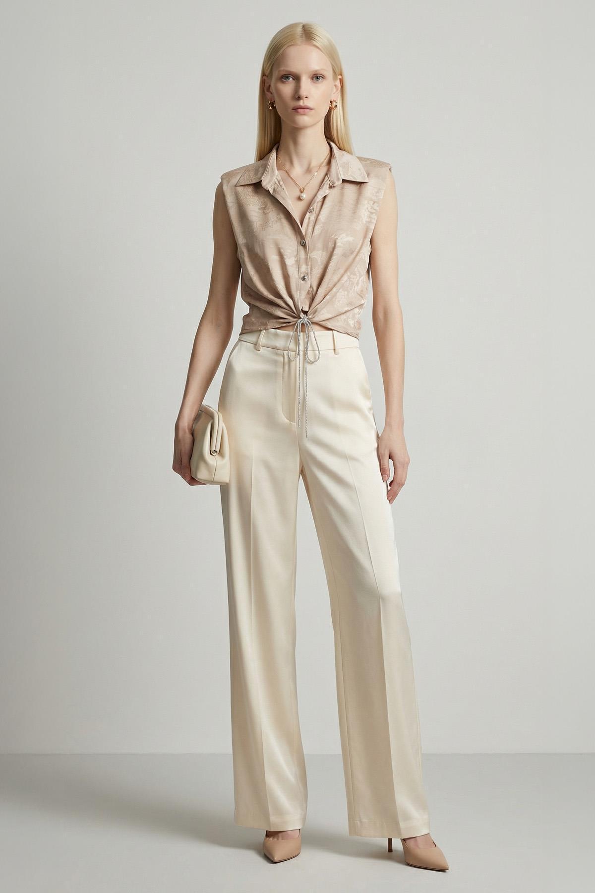Krem Ön Bağlamalı Gömlek 252103