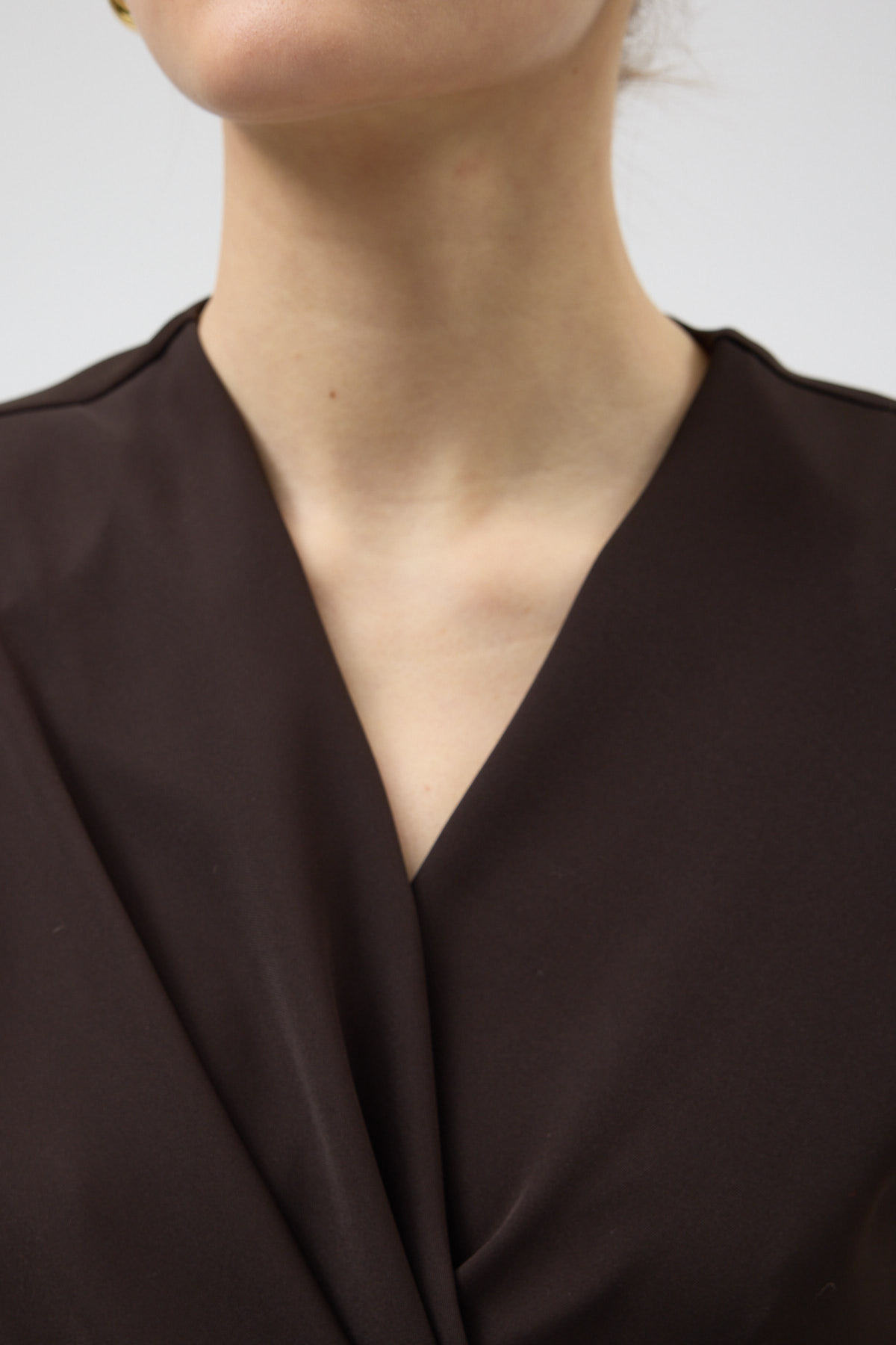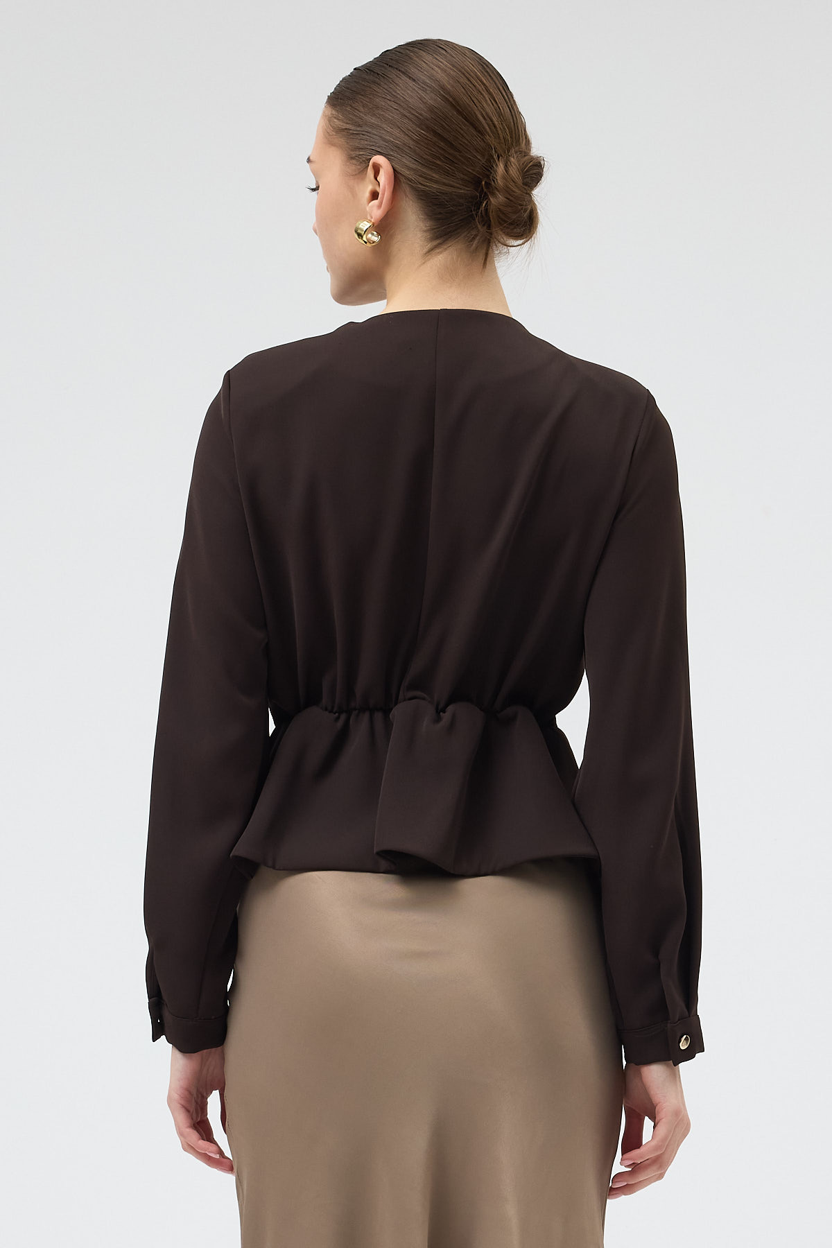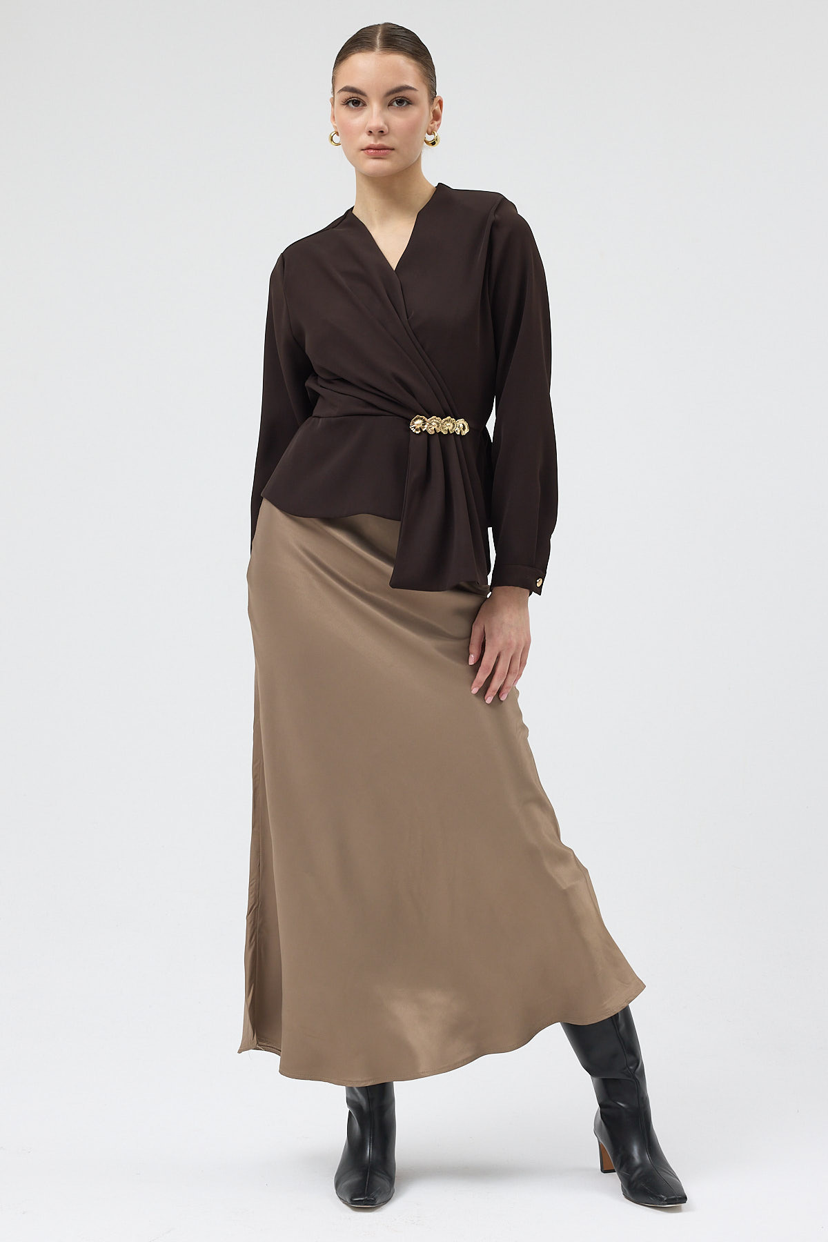 Acı Kahve Kruvaze Yaka Taş Toka Detaylı Uzun Kollu Kadın Bluz 251279